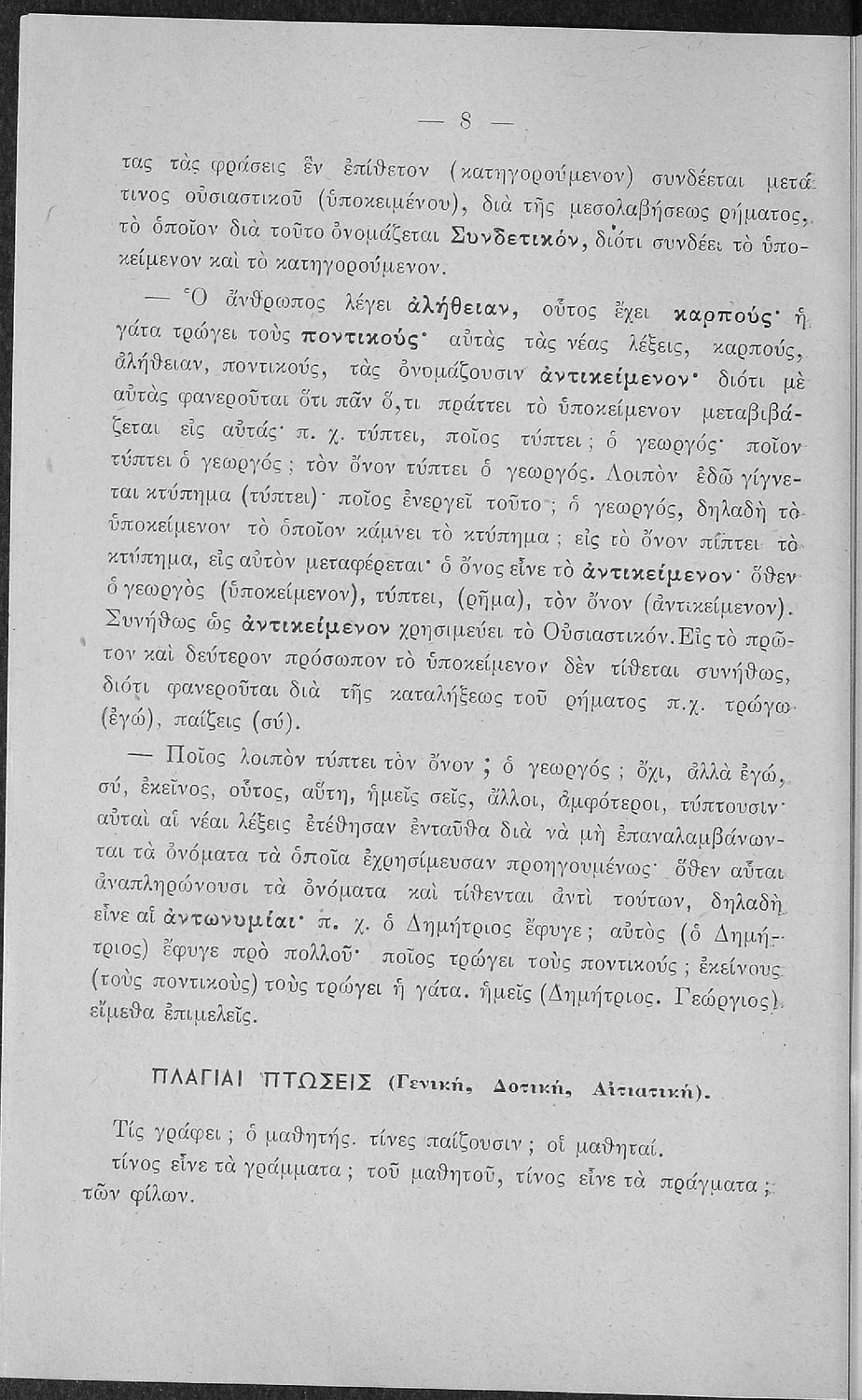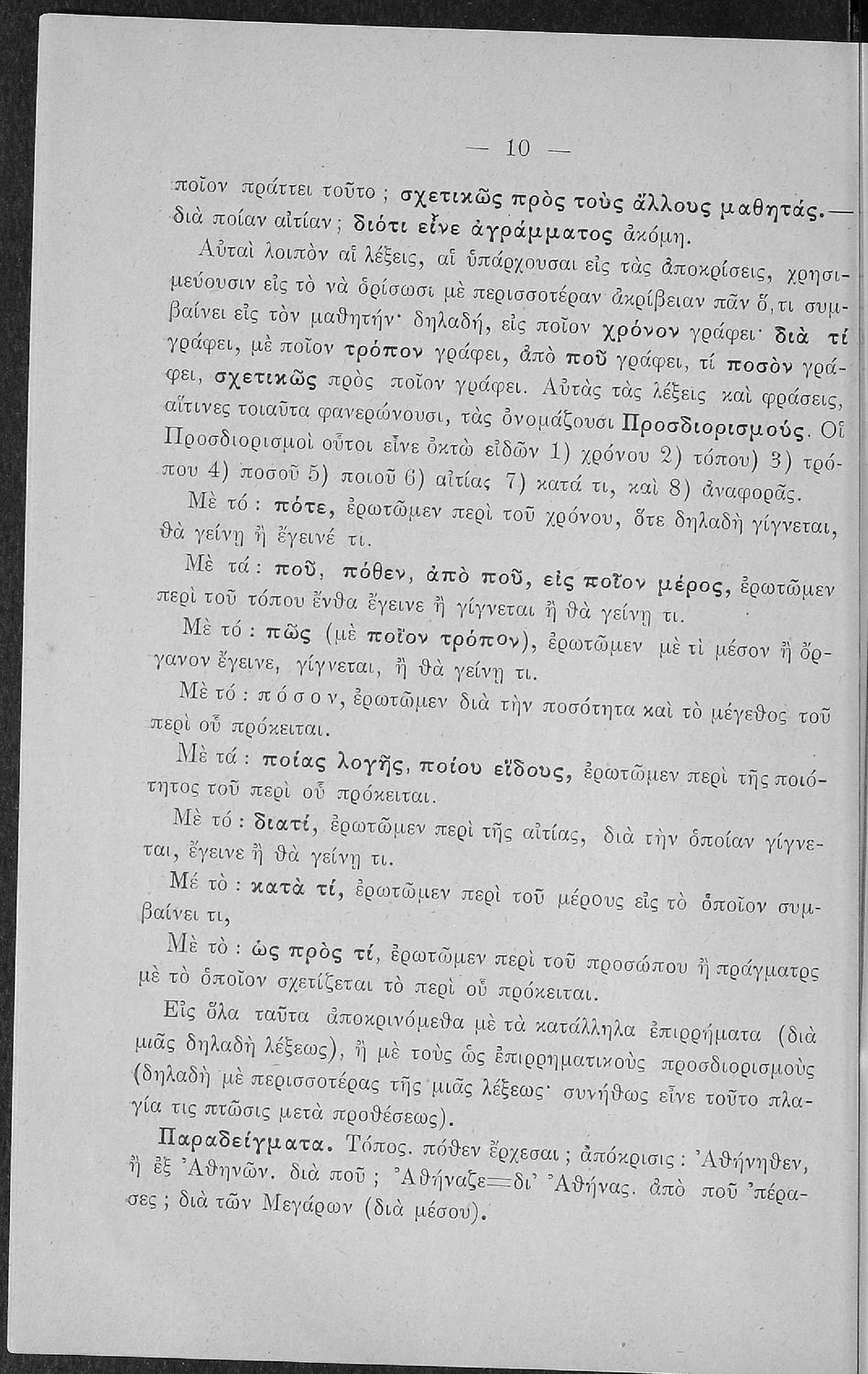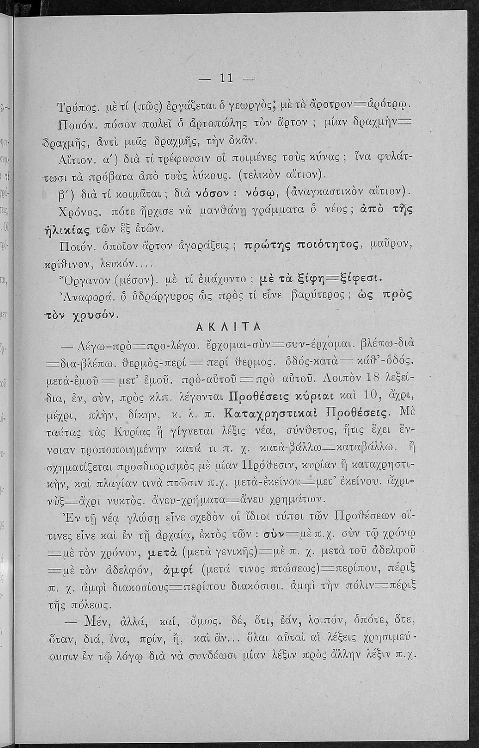 Βαθμίδα εκπαίδευσης: Πρωτοβάθμια, Δευτεροβάθμια Τάξη: Α΄ Ελληνικού Σχολείου / Παρθεναγωγείο / Ε' Δημοτικού Μάθημα: Νέα Ελληνικά Γλώσσα: Καθαρεύουσα Παρουσίαση περιεχομένου: Σχολικό εγχειρίδιο Αρχαίων Ελληνικών για τις Α' Ελληνικού Σχολείου και Παρθεναγωγείου και την Ε΄ Δημοτικού που περιέχει κείμενα στην αρχαία ελληνική εμπνευσμένα από την ελληνική μυθολογία, και γραμματικές, πραγματολογικές και ερμηνευτικές σημειώσεις. Περιλαμβάνει προεισαγωγικές ασκήσεις για να κατανοήσει ο μαθητής την σχέση και τη διαφορά μεταξύ της αρχαίας και νέας ελληνικής. Κάθε κείμενο περιλαμβάνει την περίληψη του στην καθαρεύουσα και ένα δίδαγμα. |