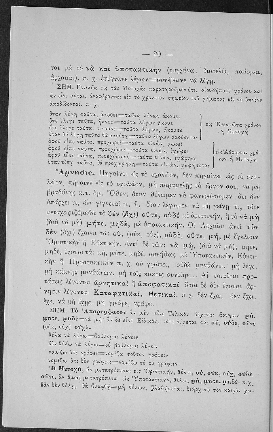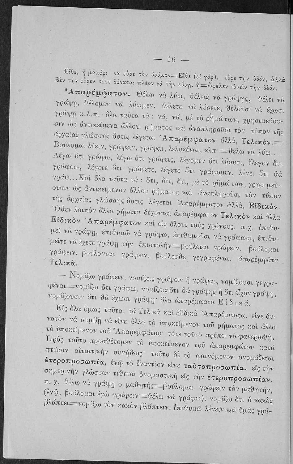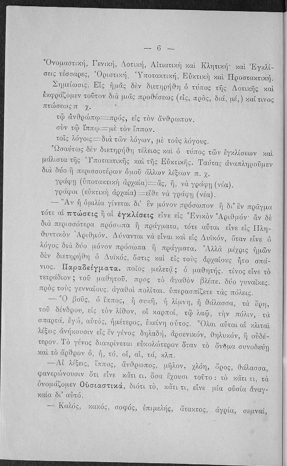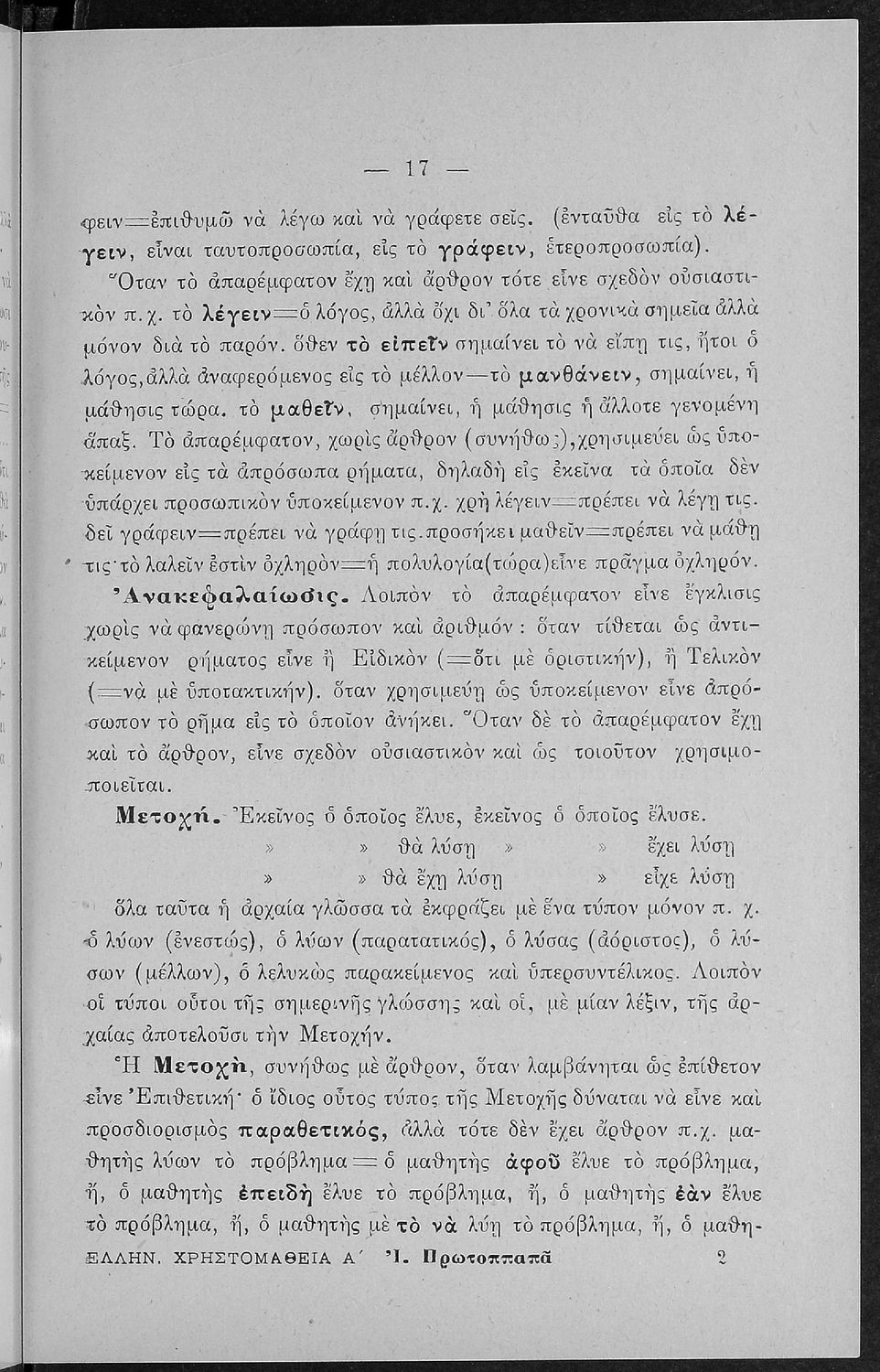 Βαθμίδα εκπαίδευσης: Πρωτοβάθμια, Δευτεροβάθμια Τάξη: Α΄ Ελληνικού Σχολείου / Παρθεναγωγείο / Ε' Δημοτικού Μάθημα: Νέα Ελληνικά Γλώσσα: Καθαρεύουσα Παρουσίαση περιεχομένου: Σχολικό εγχειρίδιο Αρχαίων Ελληνικών για τις Α' Ελληνικού Σχολείου και Παρθεναγωγείου και την Ε΄ Δημοτικού που περιέχει κείμενα στην αρχαία ελληνική εμπνευσμένα από την ελληνική μυθολογία, και γραμματικές, πραγματολογικές και ερμηνευτικές σημειώσεις. Περιλαμβάνει προεισαγωγικές ασκήσεις για να κατανοήσει ο μαθητής την σχέση και τη διαφορά μεταξύ της αρχαίας και νέας ελληνικής. Κάθε κείμενο περιλαμβάνει την περίληψη του στην καθαρεύουσα και ένα δίδαγμα. |