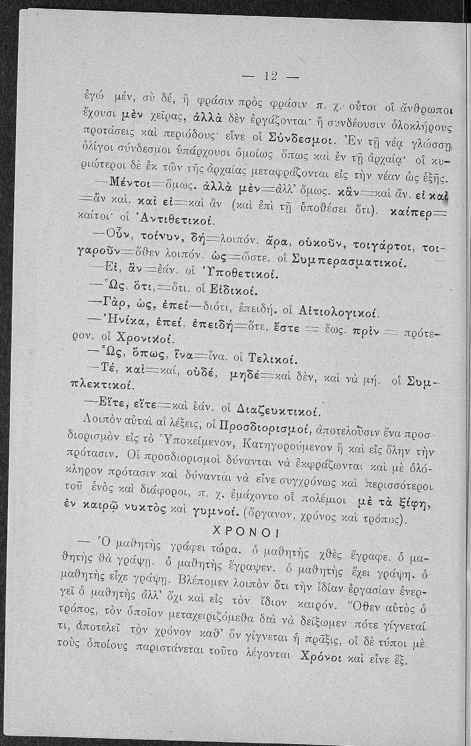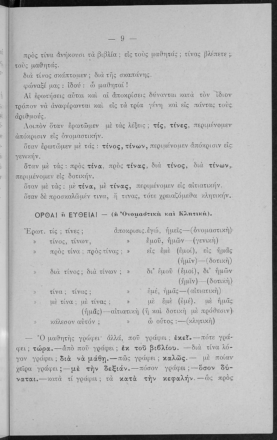 LDR 01873 2200193 4500 035 ## _a01-18471 040 ## _aΙνστιτούτο Εκπαιδευτικής Πολιτικής 041 ## _ael 100 ## _aΙωάννης Ν. Πρωτόπαπας 110 ## _a18471 245 0# _aΕλληνική Χρηστομάθεια δια την πρώτην τάξιν των Ελληνικών Σχολείων, την Ισόβαθμον των Παρθεναγωγείων και την Ε΄ τάξιν των πλήρων Δημοτικών Σχολείων 260 ## _aΑθήνα _bΔ. Δημητράκου _c1909 300 ## _a104 _bΕικόνες (ασπρόμαυρες), Σκίτσα (ασπρόμαυρα) _c21 520 ## _aΣχολικό εγχειρίδιο Αρχαίων Ελληνικών για τις Α' Ελληνικού Σχολείου και Παρθεναγωγείου και την Ε΄ Δημοτικού που περιέχει κείμενα στην αρχαία ελληνική εμπνευσμένα από την ελληνική μυθολογία, και γραμματικές, πραγματολογικές και ερμηνευτικές σημειώσεις. Περιλαμβάνει προεισαγωγικές ασκήσεις για να κατανοήσει ο μαθητής την σχέση και τη διαφορά μεταξύ της αρχαίας και νέας ελληνικής. Κάθε κείμενο περιλαμβάνει την περίληψη του στην καθαρεύουσα και ένα δίδαγμα. 521 ## _aΑ΄ Ελληνικού Σχολείου / Παρθεναγωγείο / Ε' Δημοτικού 522 ## _aΕλλάδα 546 ## _aΚαθαρεύουσα 563 ## _aΣκληρό Εξώφυλλο 650 #4 _aΑποφθέγματα _aΔιηγήματα _aΜύθοι Αισώπου _aΜυθολογία