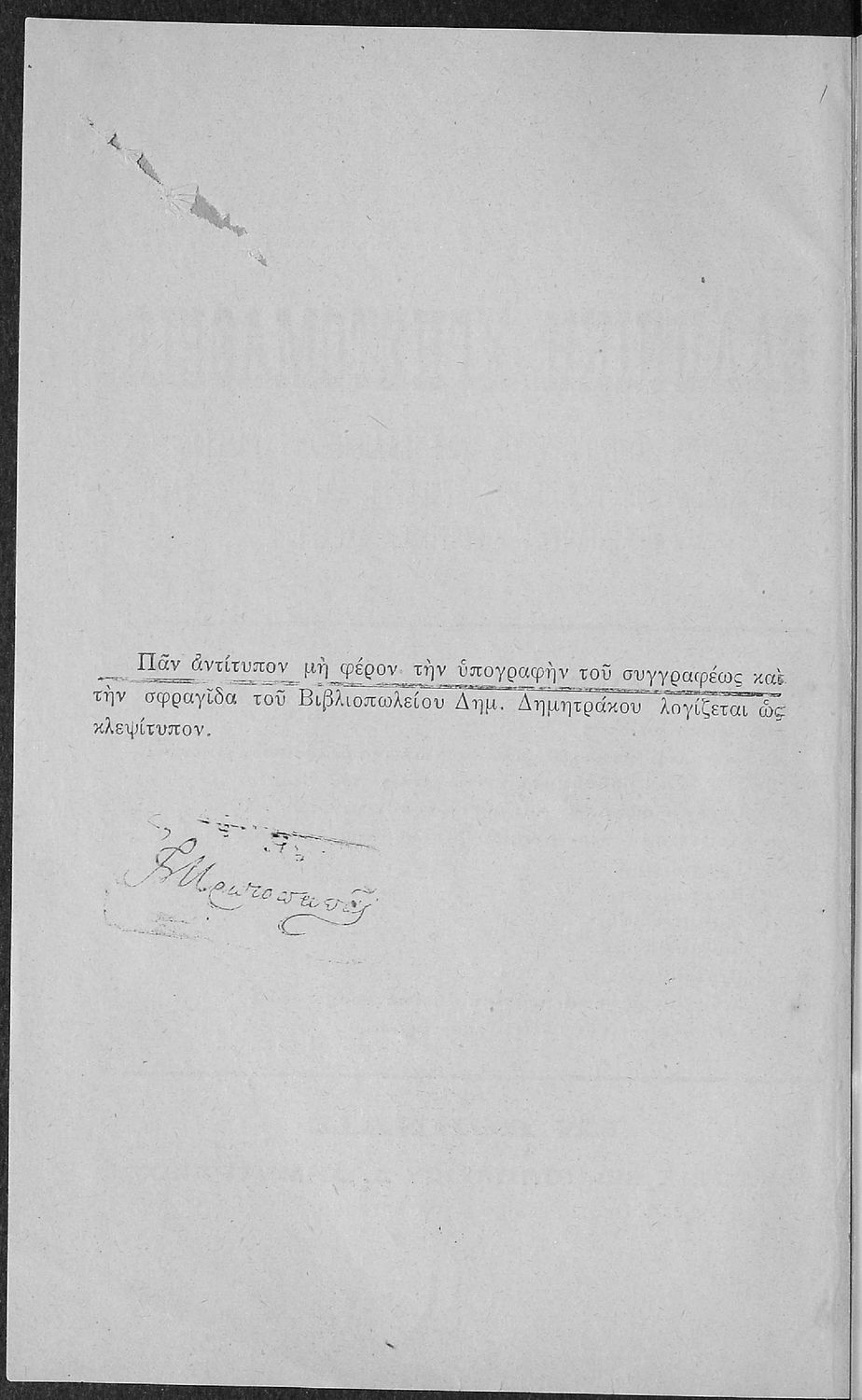 Εκδότης: Δ. Δημητράκου Έτος έκδοσης: 1909 Τόπος έκδοσης: Αθήνα |