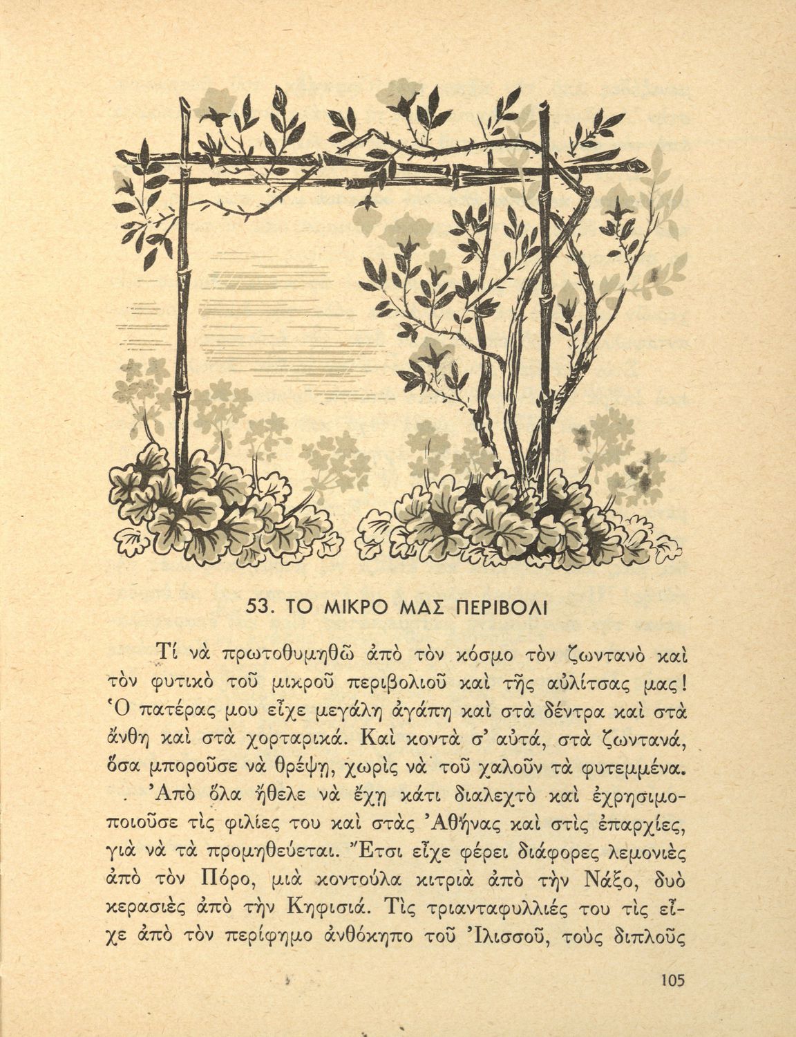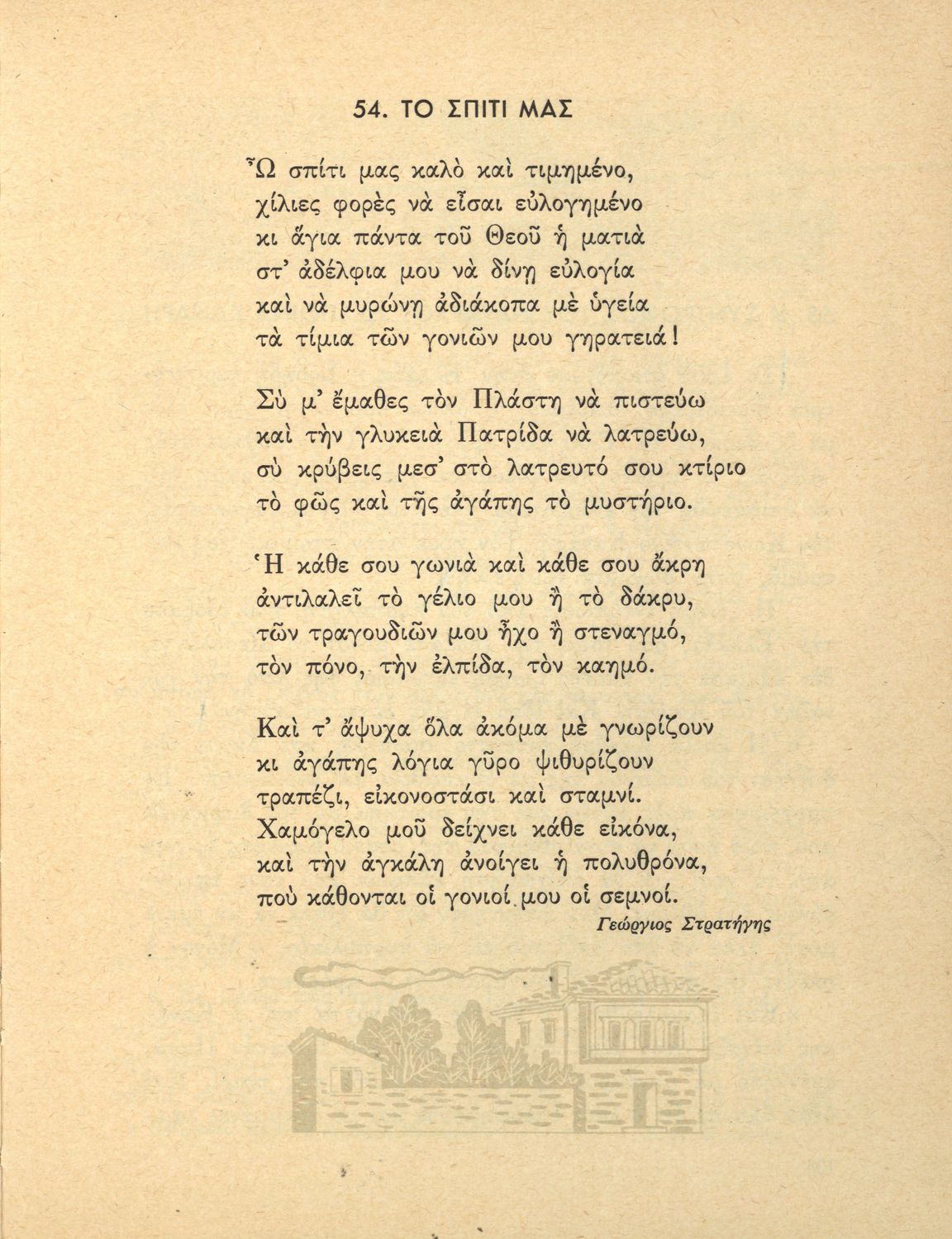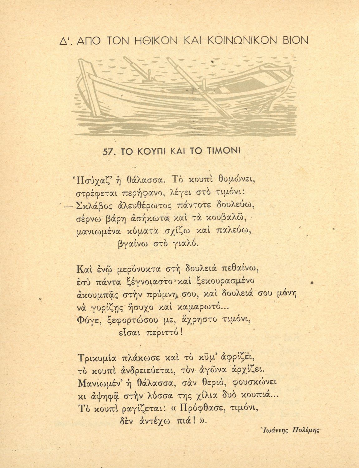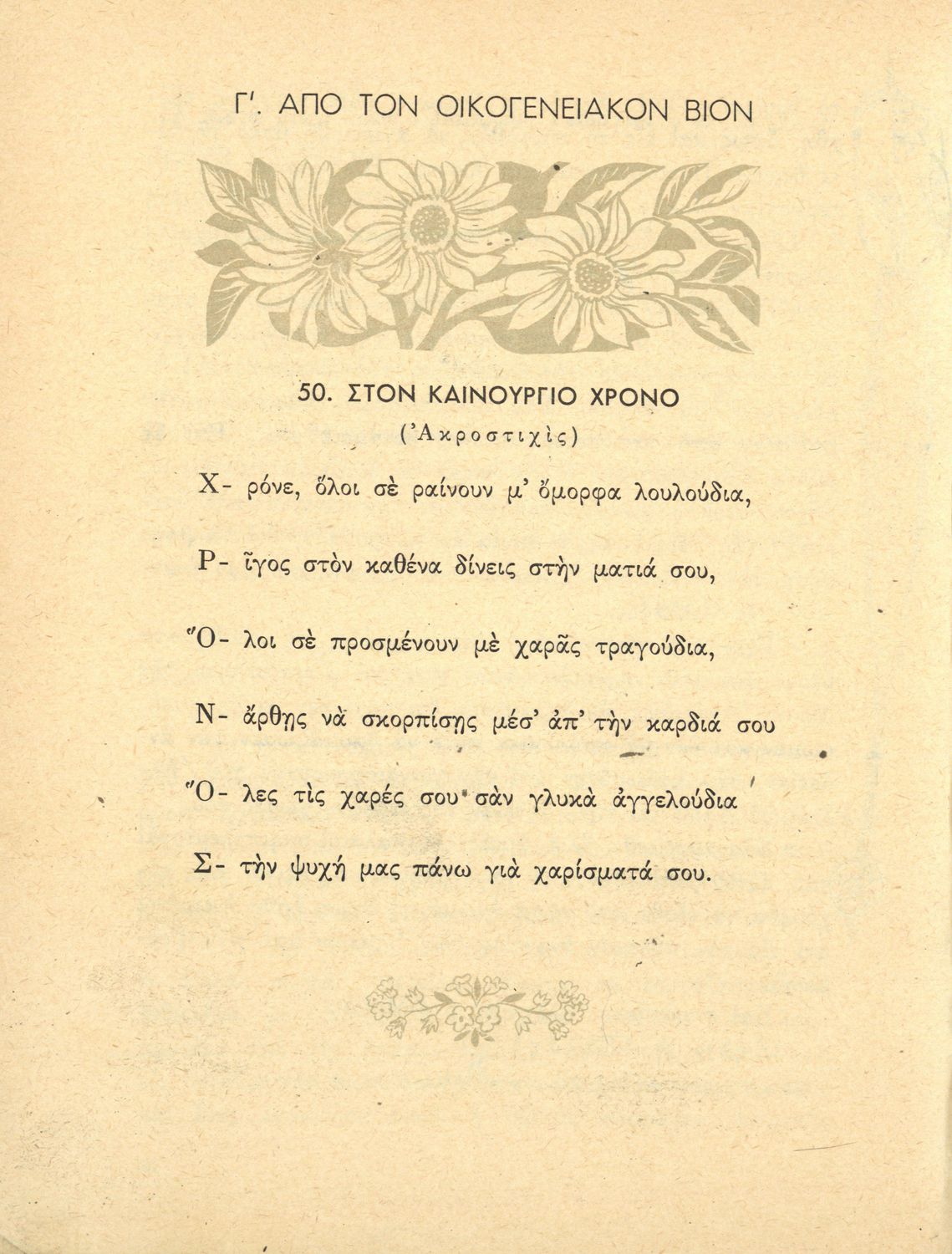 Αναγνωστικό ΣΤ΄ Δημοτικού που περιλαμβάνει θέματα από τις ελληνικές παραδόσεις και μύθους, την ελληνική φύση και θάλασσα και το τρίπτυχο "Πατρίς-θρησκεία-οικογένειαα".