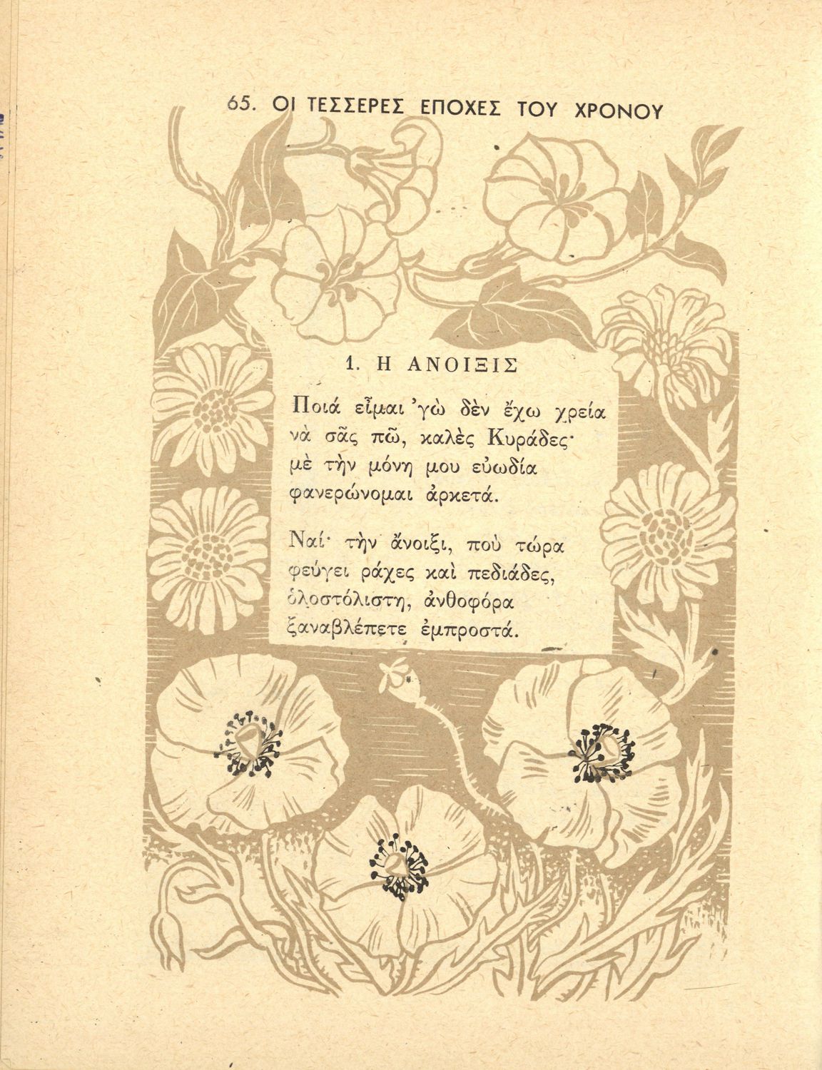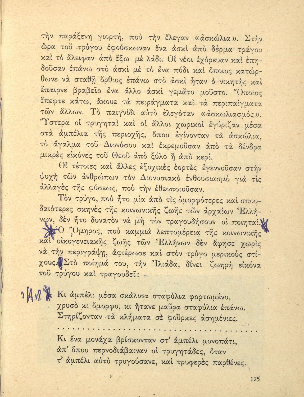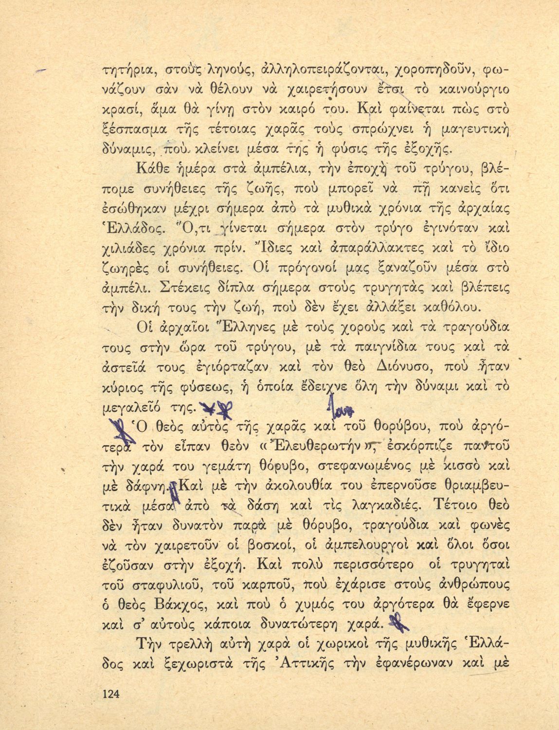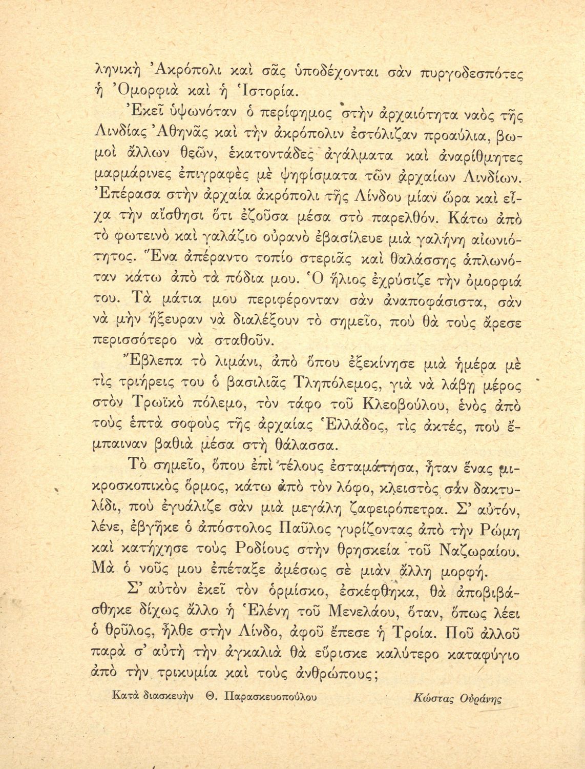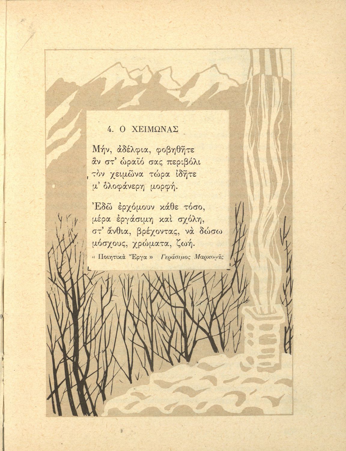 Αναγνωστικό ΣΤ΄ Δημοτικού που περιλαμβάνει θέματα από τις ελληνικές παραδόσεις και μύθους, την ελληνική φύση και θάλασσα και το τρίπτυχο "Πατρίς-θρησκεία-οικογένειαα".