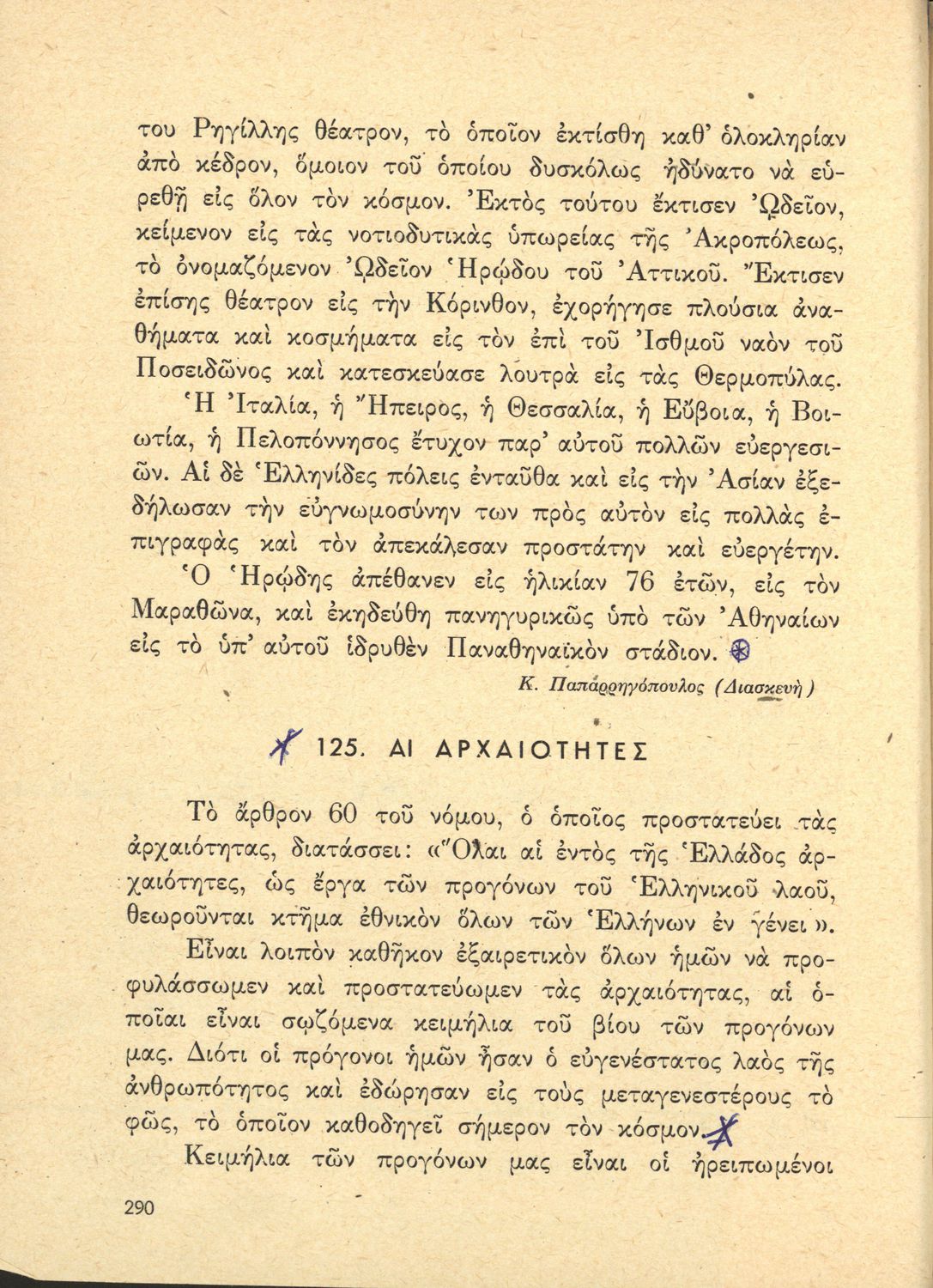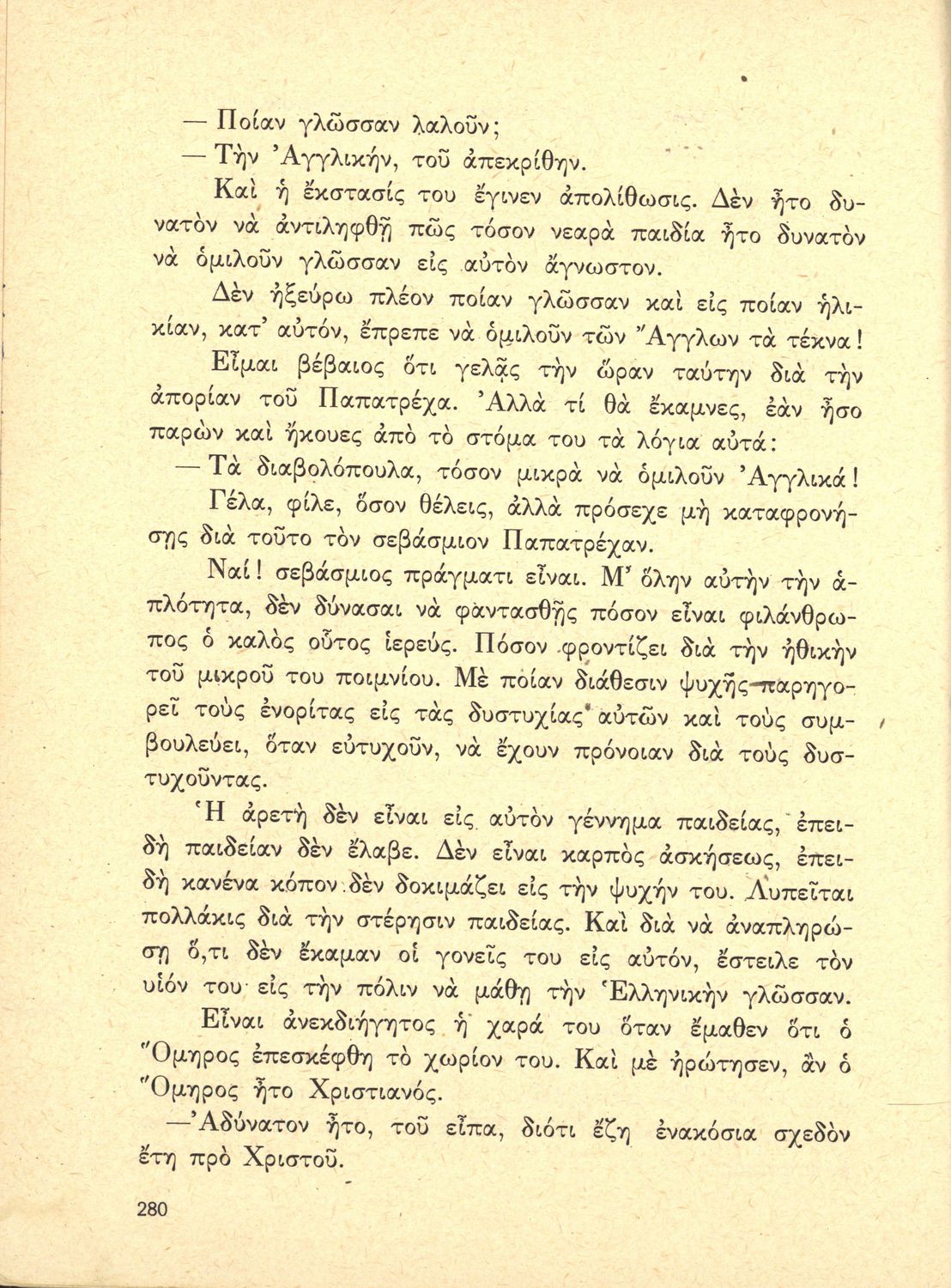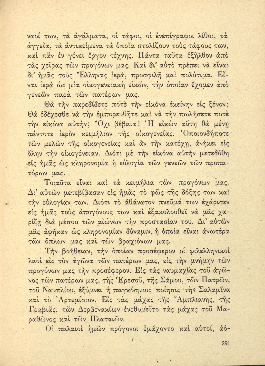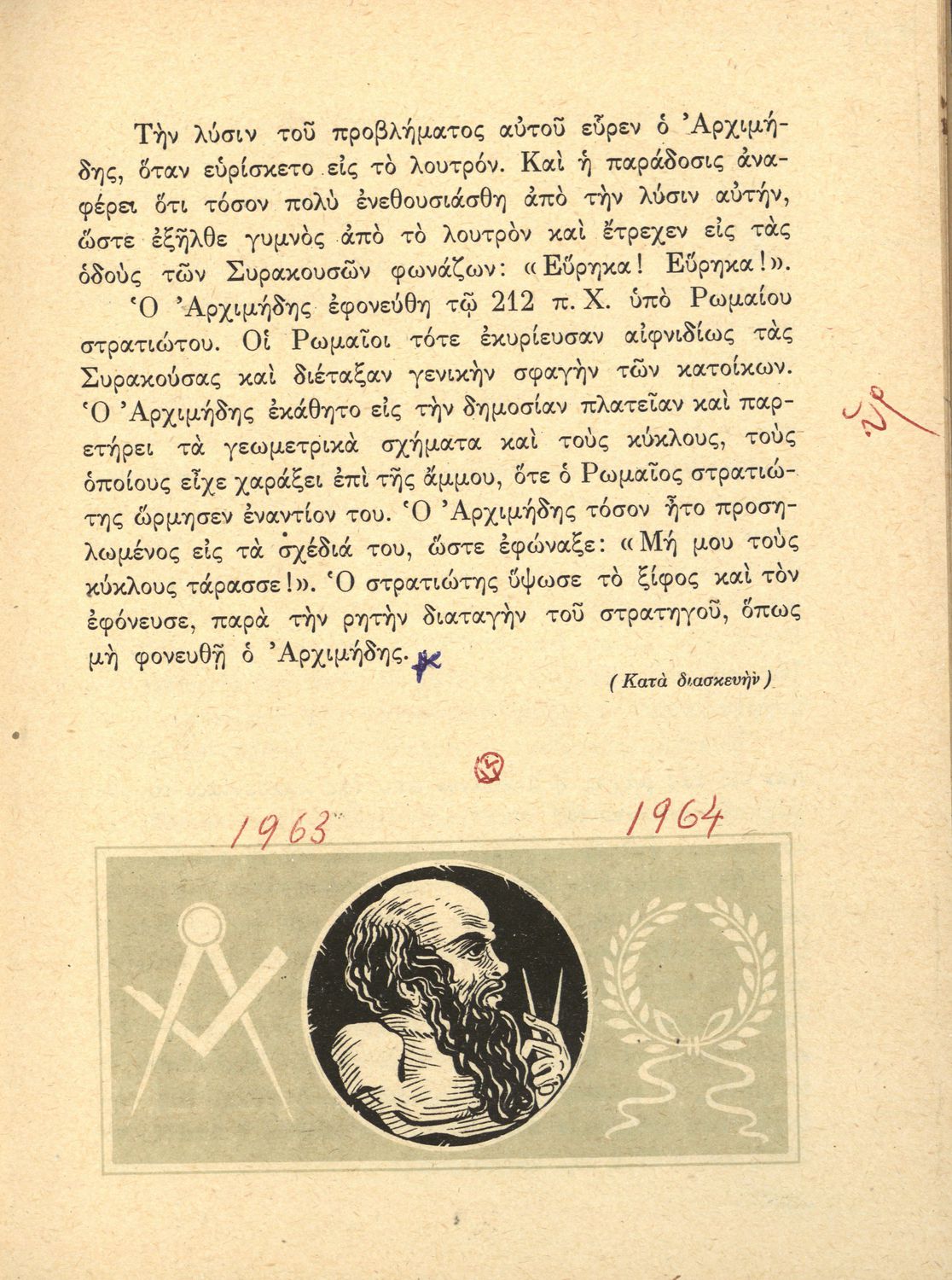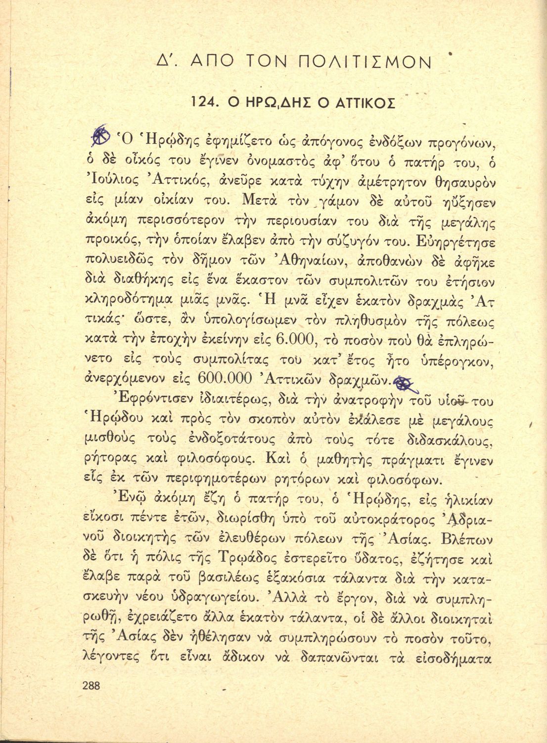 Αναγνωστικό ΣΤ΄ Δημοτικού που περιλαμβάνει θέματα από τις ελληνικές παραδόσεις και μύθους, την ελληνική φύση και θάλασσα και το τρίπτυχο "Πατρίς-θρησκεία-οικογένειαα".