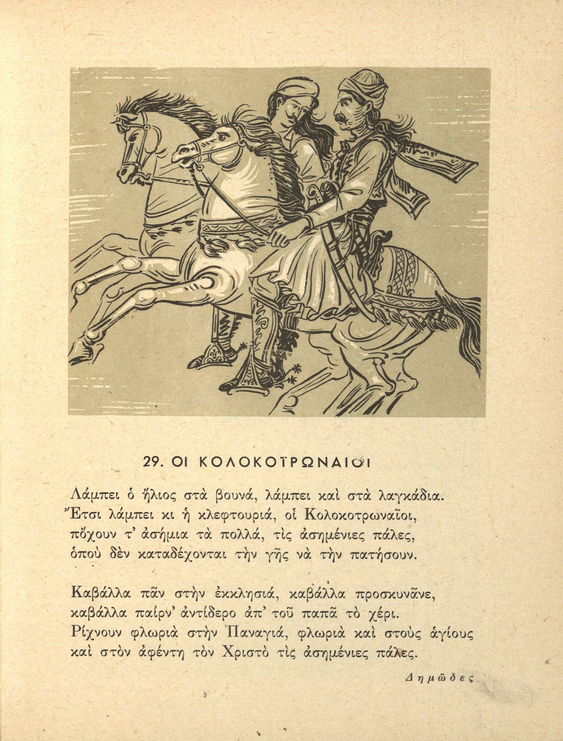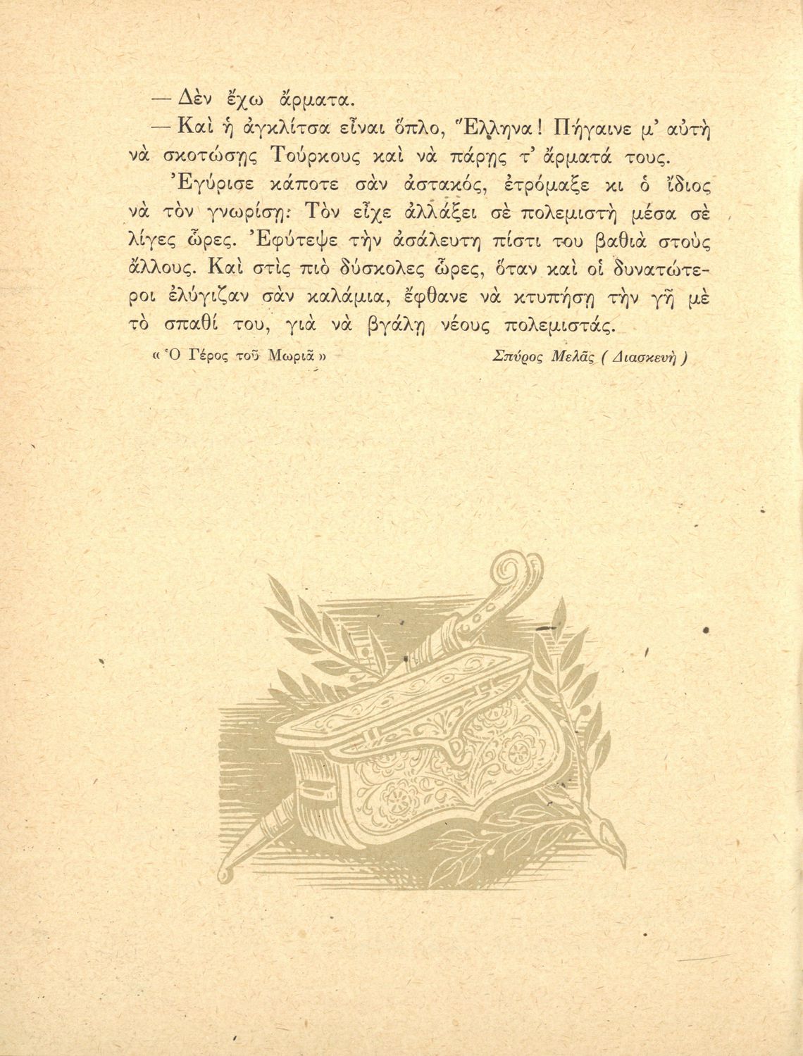Αναγνωστικό ΣΤ΄ Δημοτικού που περιλαμβάνει θέματα από τις ελληνικές παραδόσεις και μύθους, την ελληνική φύση και θάλασσα και το τρίπτυχο "Πατρίς-θρησκεία-οικογένειαα".