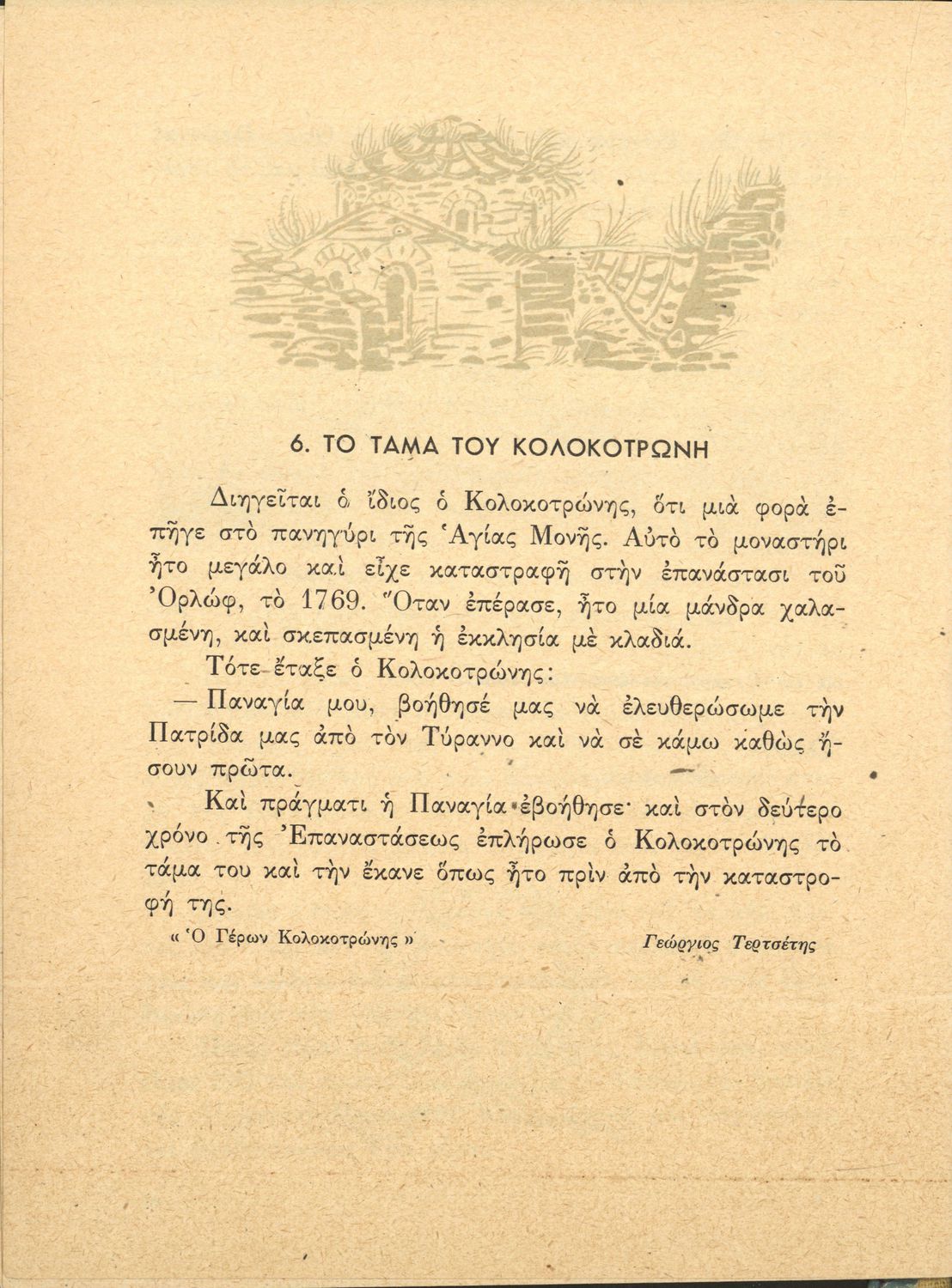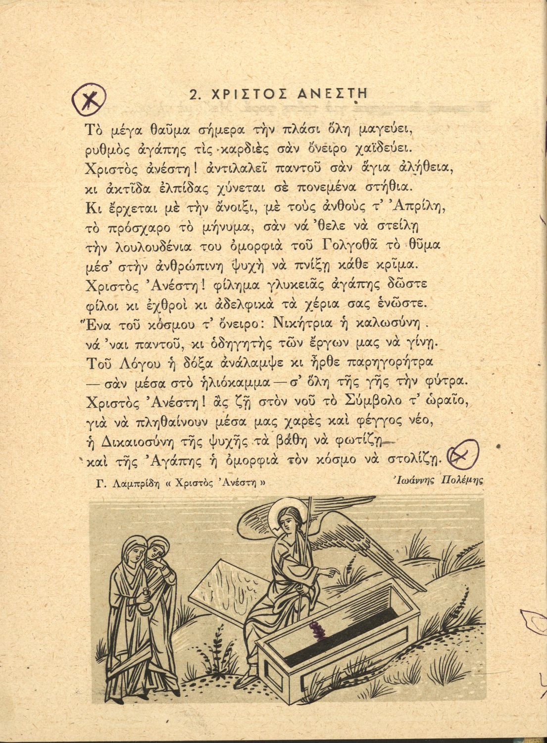 Αναγνωστικό ΣΤ΄ Δημοτικού που αντλεί τα θέματά του από τη θρησκευτική, εθνική, οικογενειακή, κοινωνική και επαγγελματική ζωή και την σύγχρονη ελληνική ιστορία.
