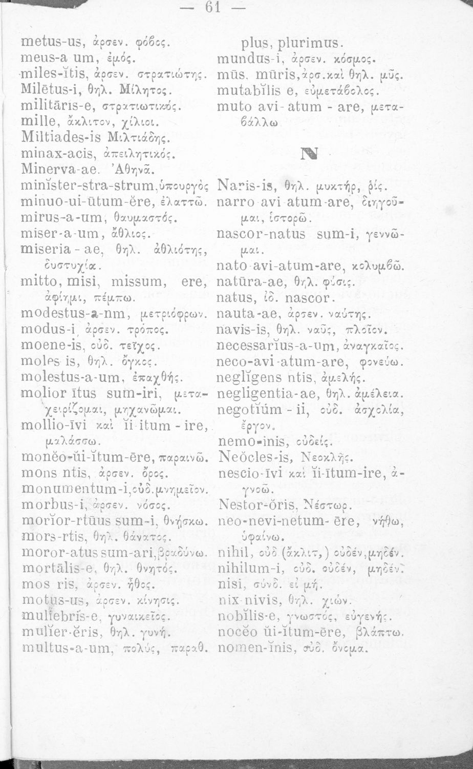 Σχολικό εγχειρίδιο Λατινικών Γ' Ελληνικού Σχολείου που περιλαμβάνει κείμενα για τη διδασκαλία των γραμματικών και συντακτικών φαινομένων, ερμηνευτικά και πραγματολογικά σχόλια και λεξιλόγιο.