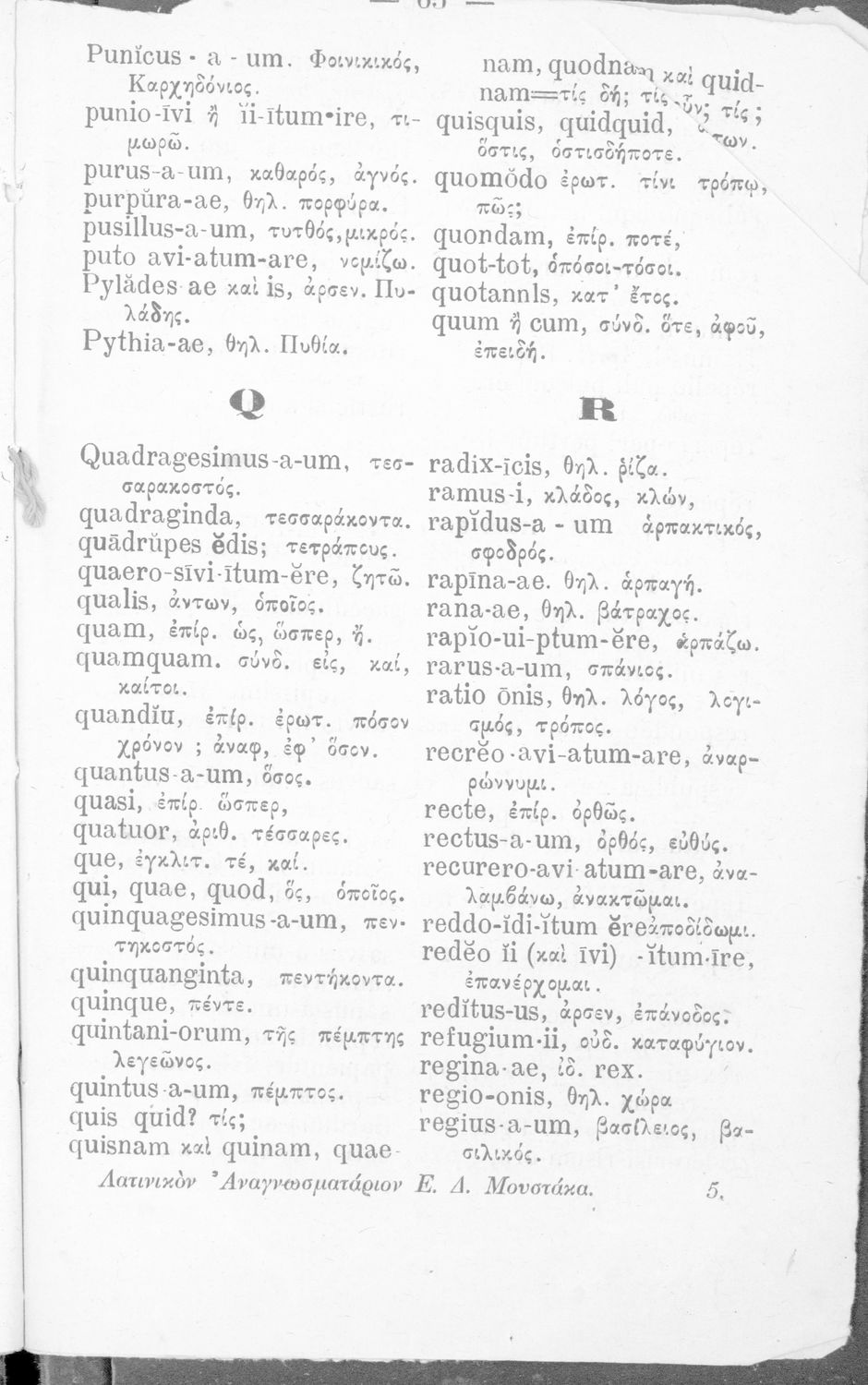 Κωδικός αναγνώρισης: 01-18476 Τίτλος: Λατινικόν αναγνωσματάριον δια την τρίτην τάξιν των Ελληνικών Σχολείων Συγγραφέας: Ευάγγελος Δ. Μουστάκας Μέγεθος και υπόστρωμα: Σχολικό εγχειρίδιο, 20εκ., μαλακό εξώφυλλο, 70 σελίδες. |