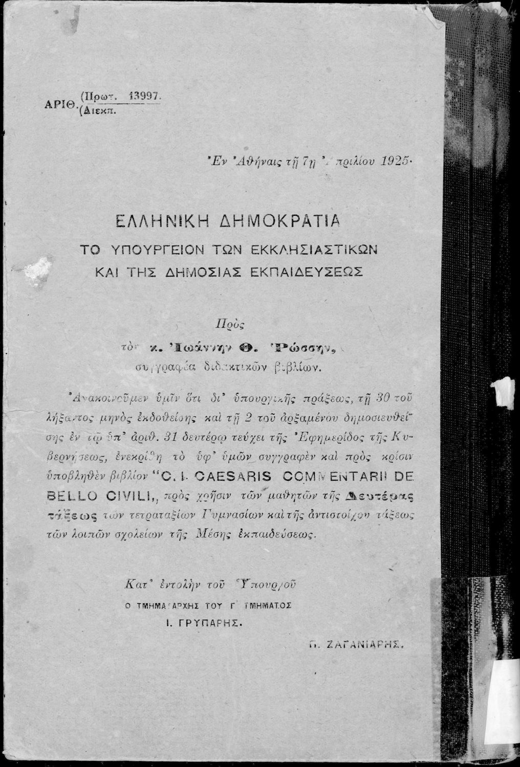 Υπουργική απόφαση / Σύμβαση: 13997/7-4-1925
