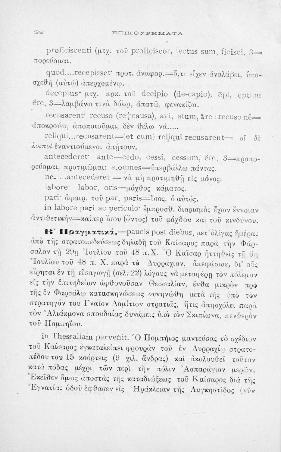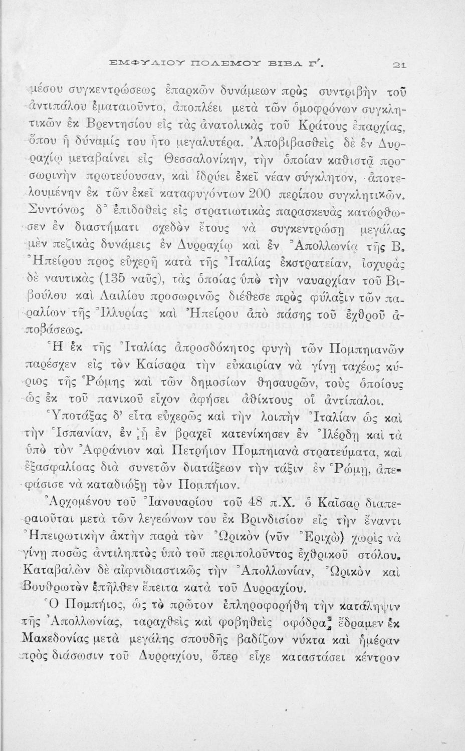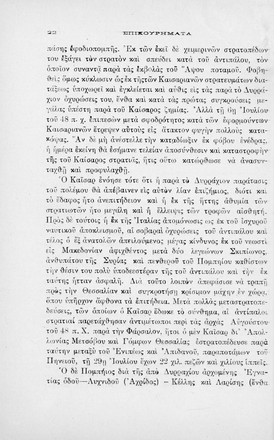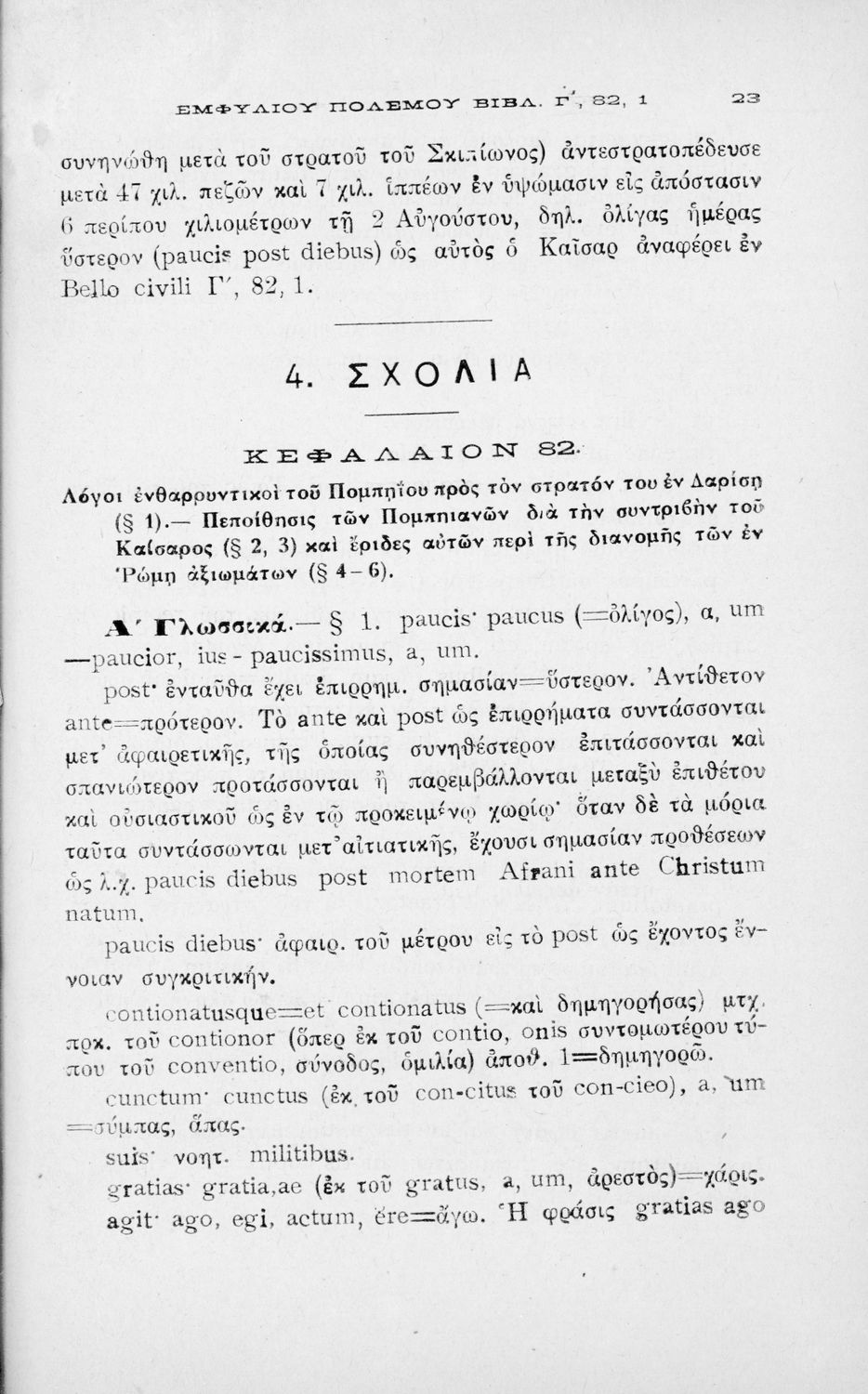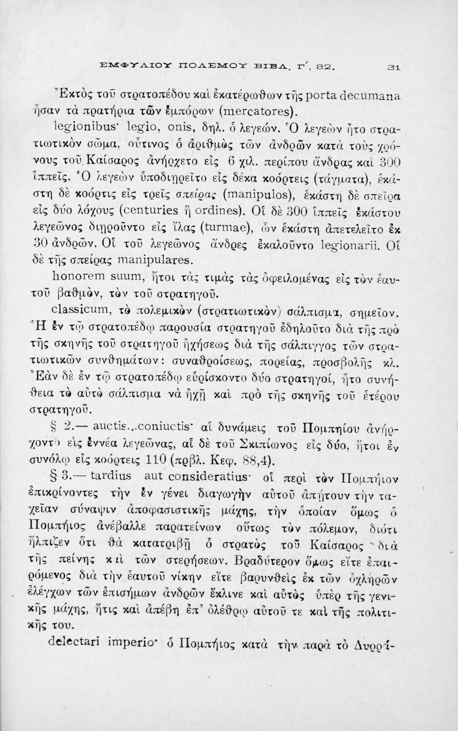 C. Iuli Caesaris comentarii de bello civili, liber iii, cap. 82-104, δια την Β΄ τάξιν των Τετραταξίων Γυμνασίων και της αντιστοίχου τοιαύτοις των λοιπών σχολείων της Μέσης Εκπαιδεύσεως