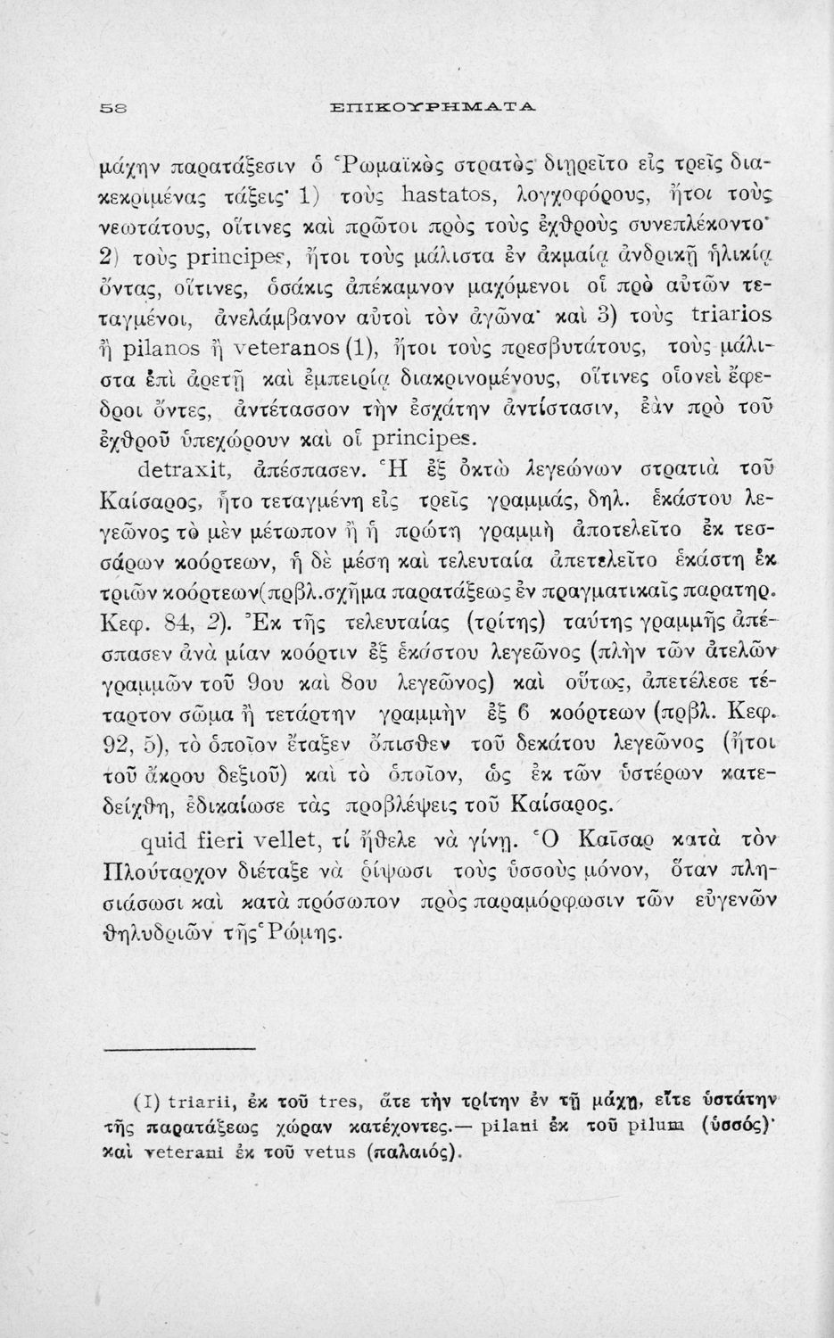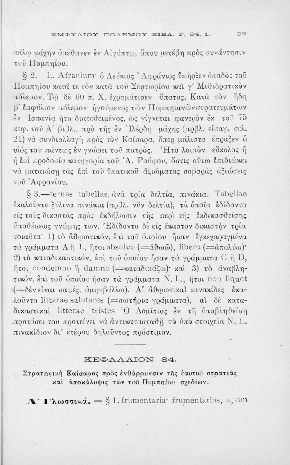 Κωδικός αναγνώρισης: 01-18477 Τίτλος: C. Iuli Caesaris comentarii de bello civili, liber iii, cap. 82-104, δια την Β΄ τάξιν των Τετραταξίων Γυμνασίων και της αντιστοίχου τοιαύτοις των λοιπών σχολείων της Μέσης Εκπαιδεύσεως Συγγραφέας: Γ. Ιούλιος Καίσαρας (C. Julius Caesar), Ιωάννης Θ. Ρώσσης (εισαγωγή, σχόλια) Μέγεθος και υπόστρωμα: Σχολικό εγχειρίδιο, 19εκ., 94 σελίδες. |