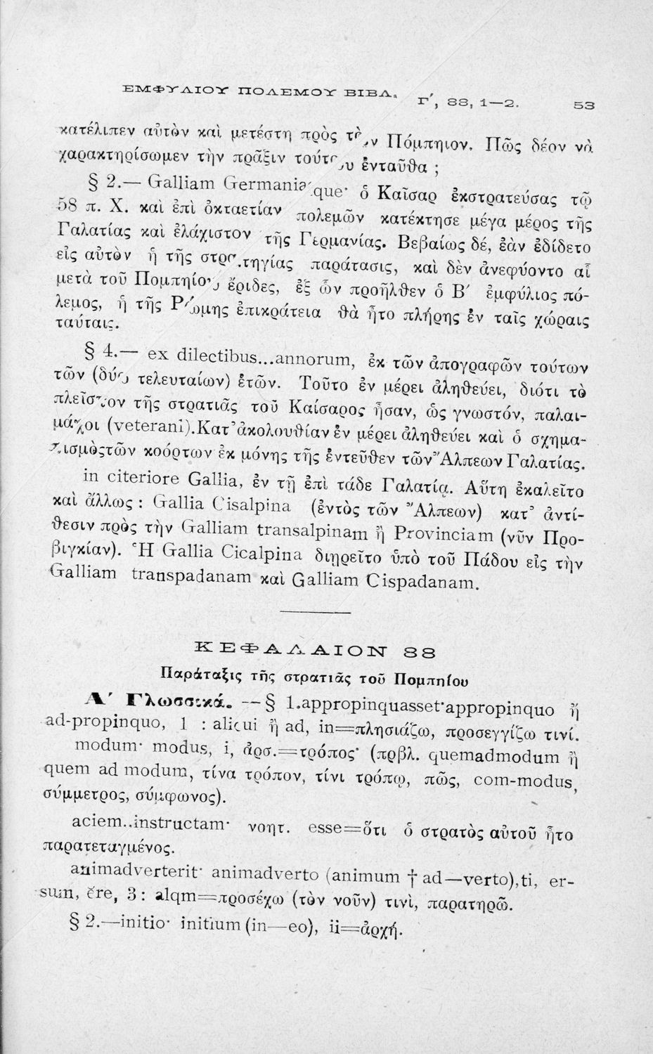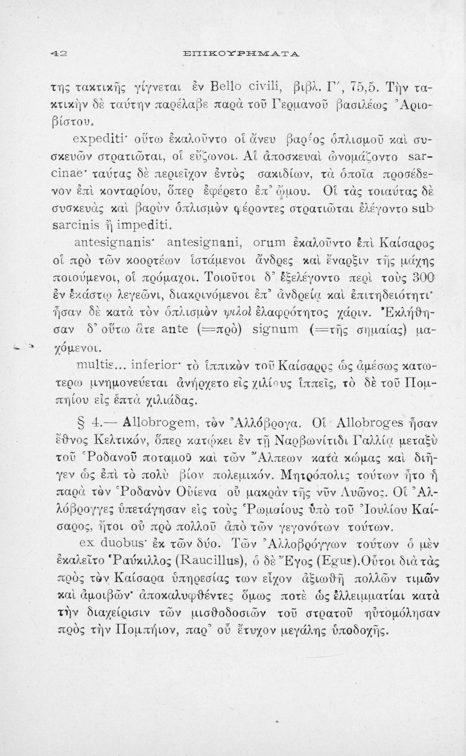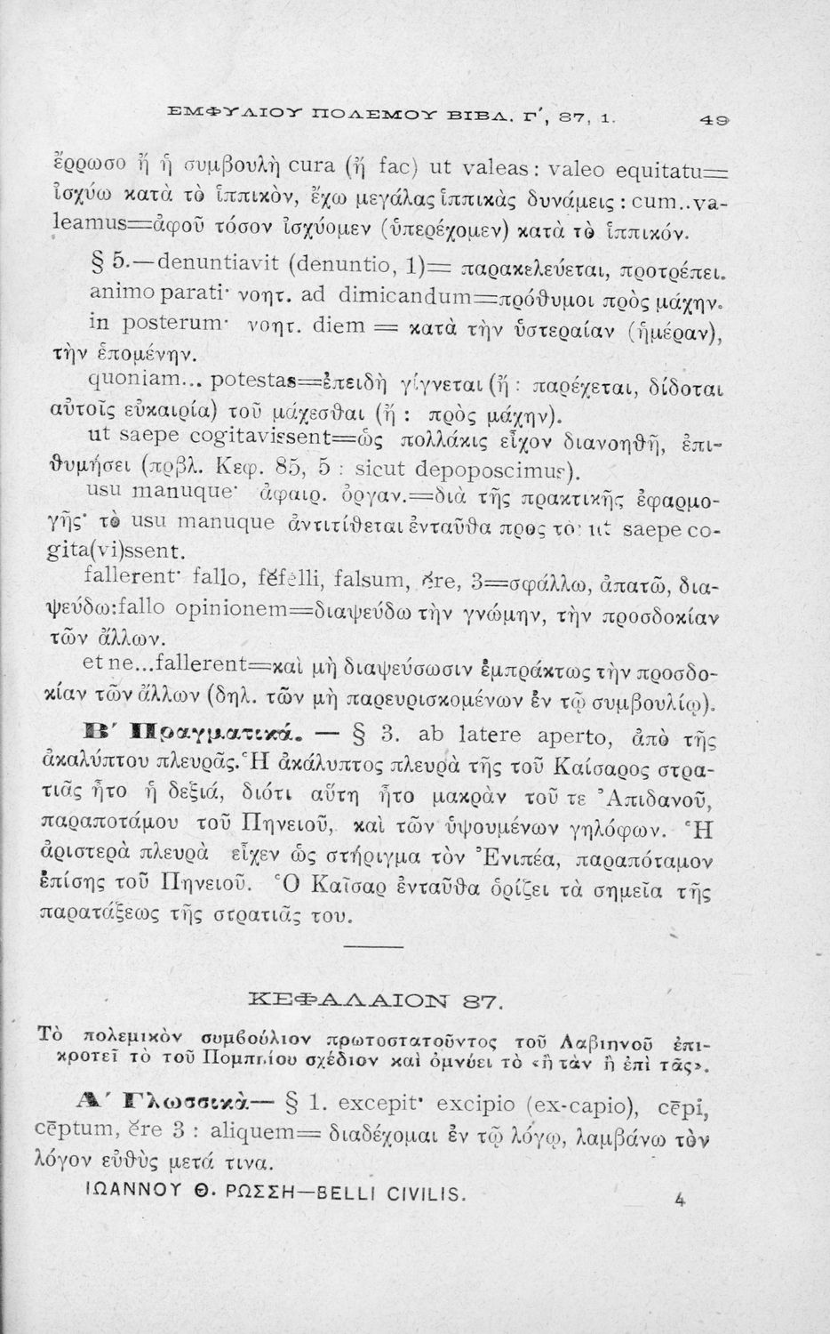 Σχολικό εγχειρίδιο Λατινικών για τη Β΄ Γυμνασίου που περιέχει αποσπάσματα από τα απομνημονεύματα του Ιούλιου Καίσαρα, σύντομο βιογραφικό σημείωμα, εισαγωγή στο έργο και πραγματολογικά και γλωσσικά σχόλια.