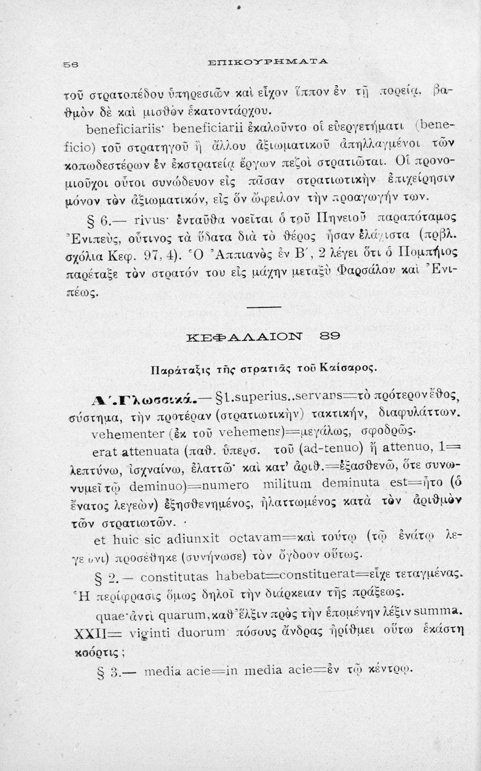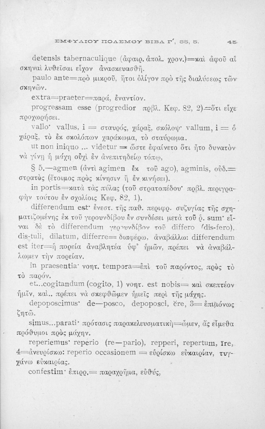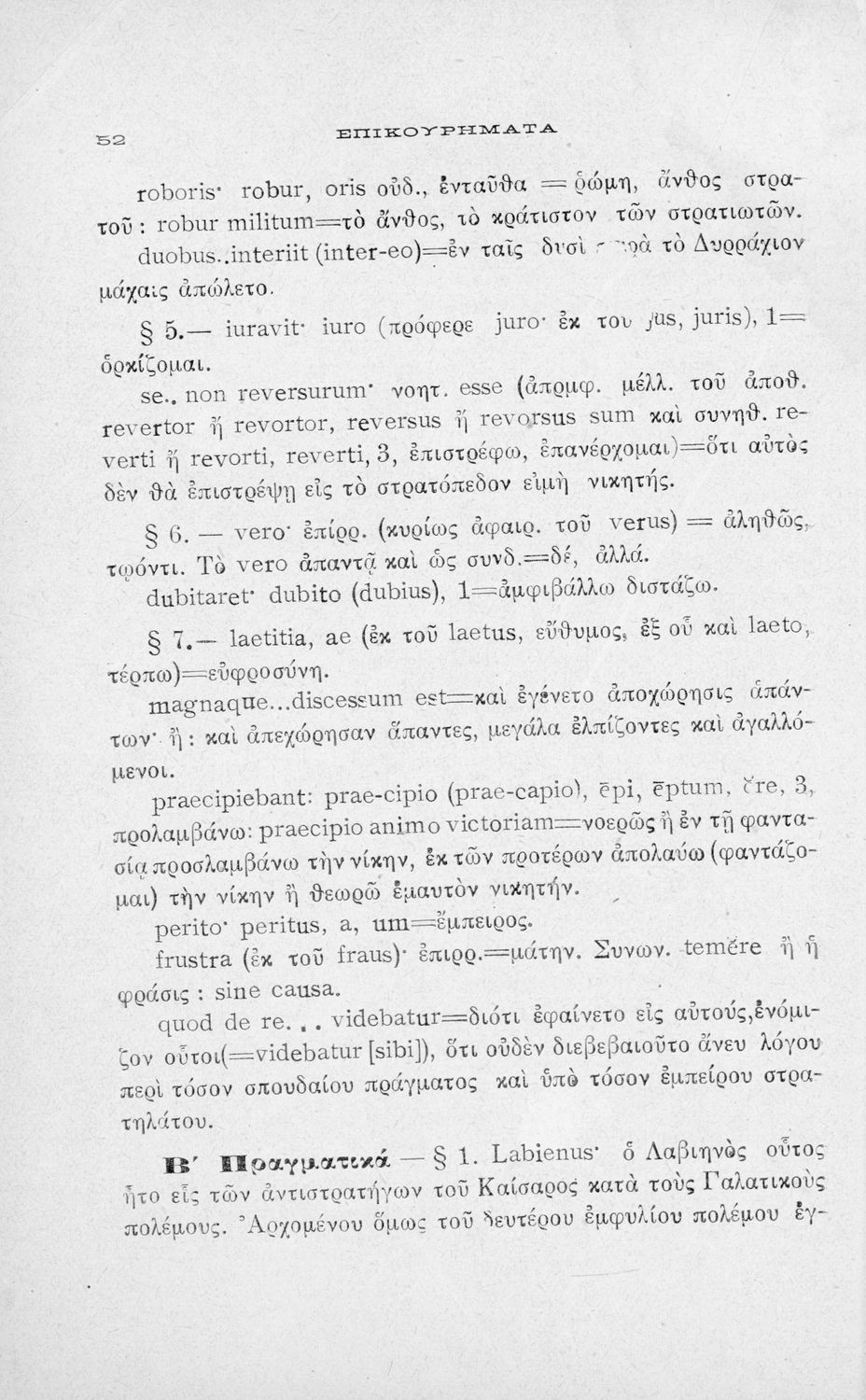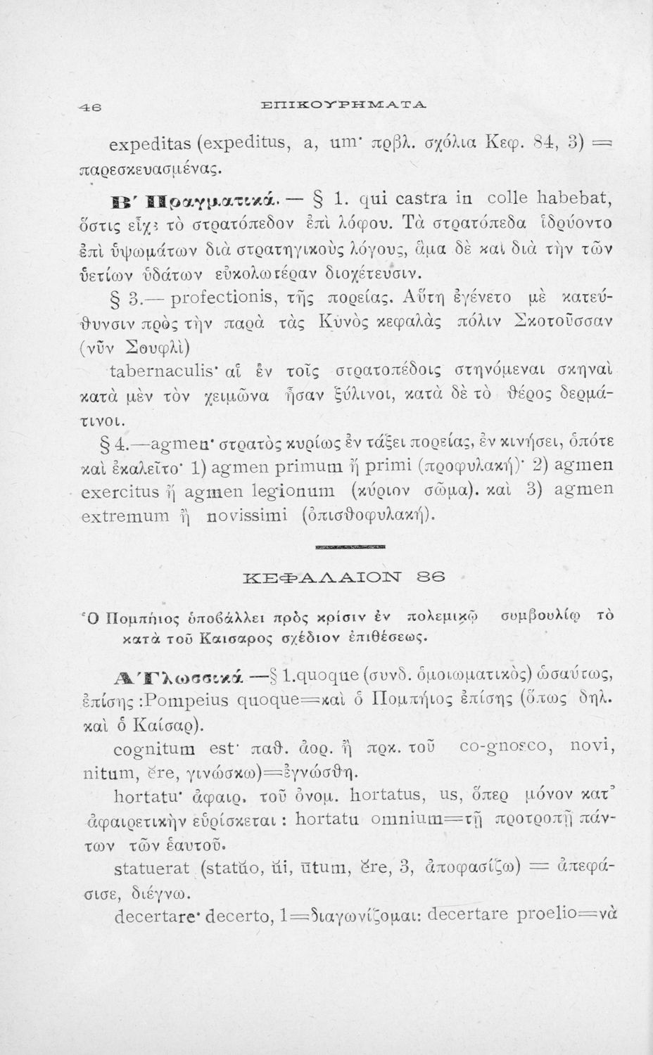 Σχολικό εγχειρίδιο Λατινικών για τη Β΄ Γυμνασίου που περιέχει αποσπάσματα από τα απομνημονεύματα του Ιούλιου Καίσαρα, σύντομο βιογραφικό σημείωμα, εισαγωγή στο έργο και πραγματολογικά και γλωσσικά σχόλια.