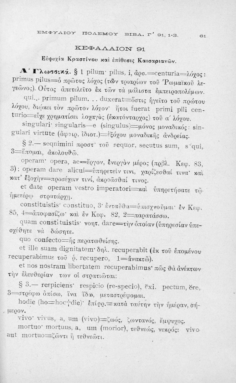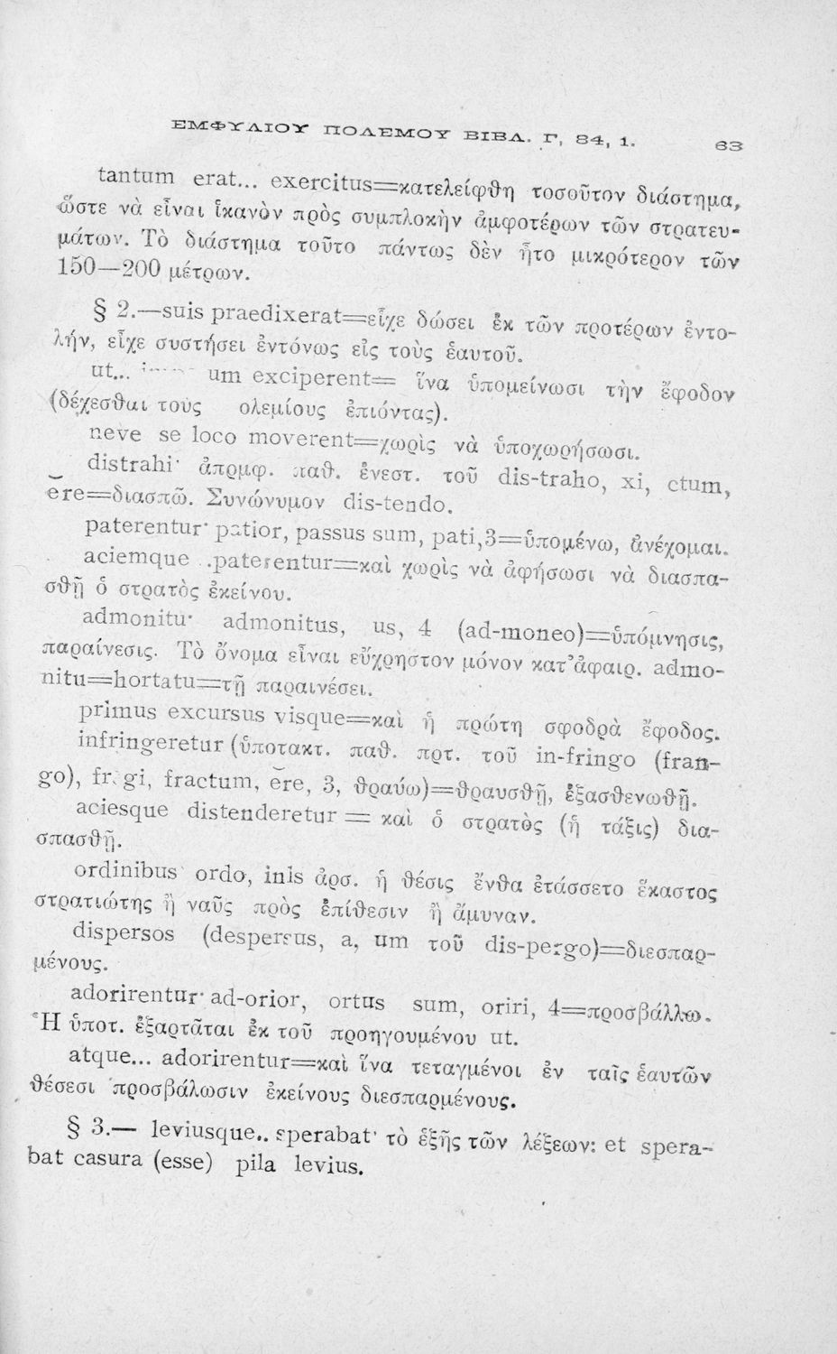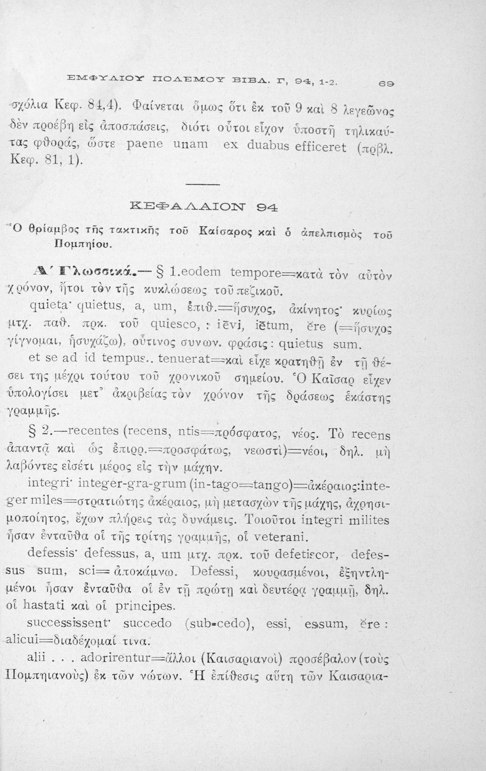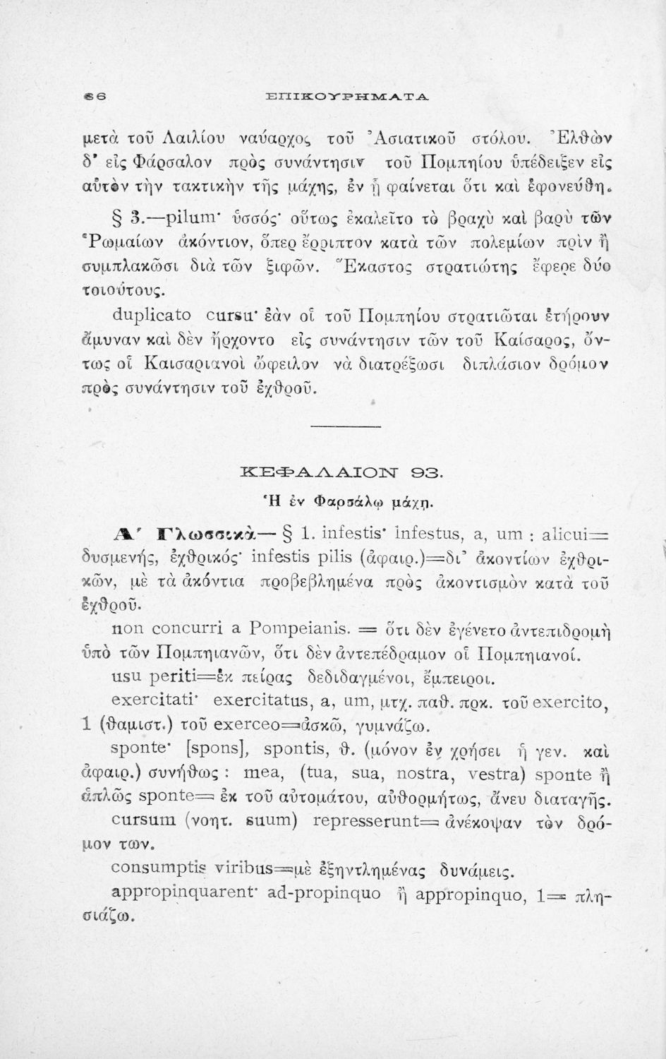 C. Iuli Caesaris comentarii de bello civili, liber iii, cap. 82-104, δια την Β΄ τάξιν των Τετραταξίων Γυμνασίων και της αντιστοίχου τοιαύτοις των λοιπών σχολείων της Μέσης Εκπαιδεύσεως