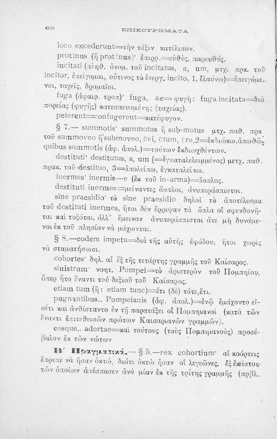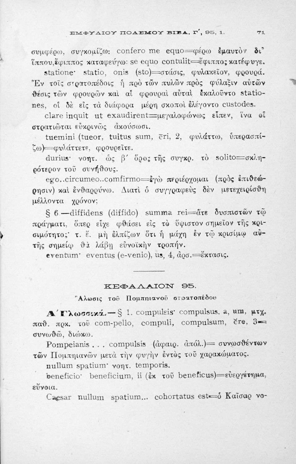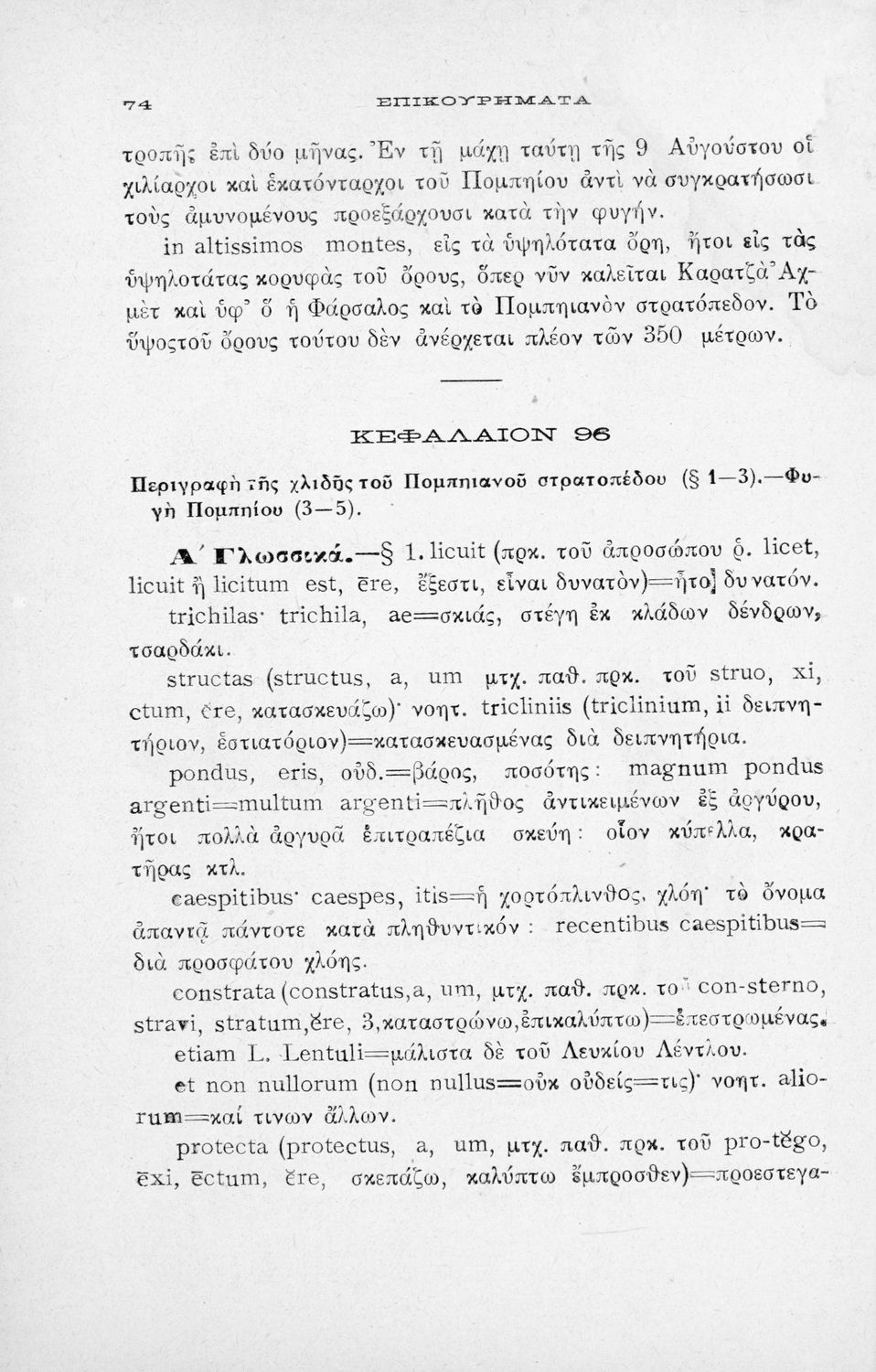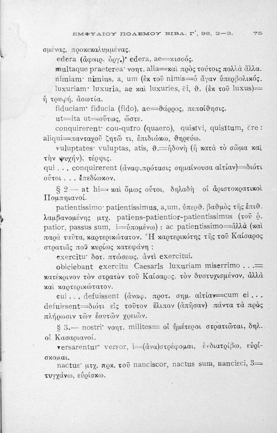C. Iuli Caesaris comentarii de bello civili, liber iii, cap. 82-104, δια την Β΄ τάξιν των Τετραταξίων Γυμνασίων και της αντιστοίχου τοιαύτοις των λοιπών σχολείων της Μέσης Εκπαιδεύσεως