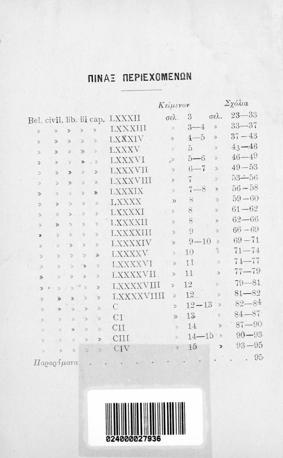 Τίτλος: C. Iuli Caesaris comentarii de bello civili, liber iii, cap. 82-104, δια την Β΄ τάξιν των Τετραταξίων Γυμνασίων και της αντιστοίχου τοιαύτοις των λοιπών σχολείων της Μέσης Εκπαιδεύσεως