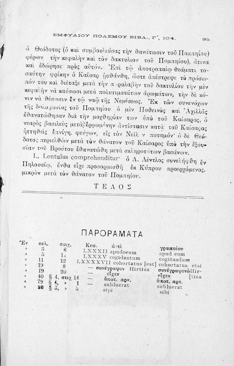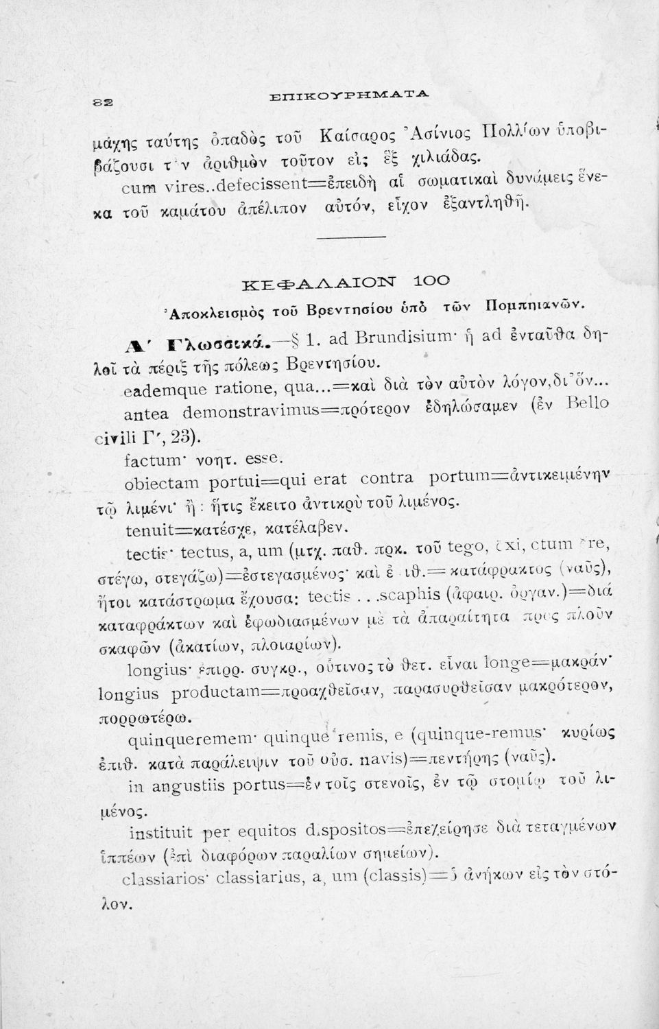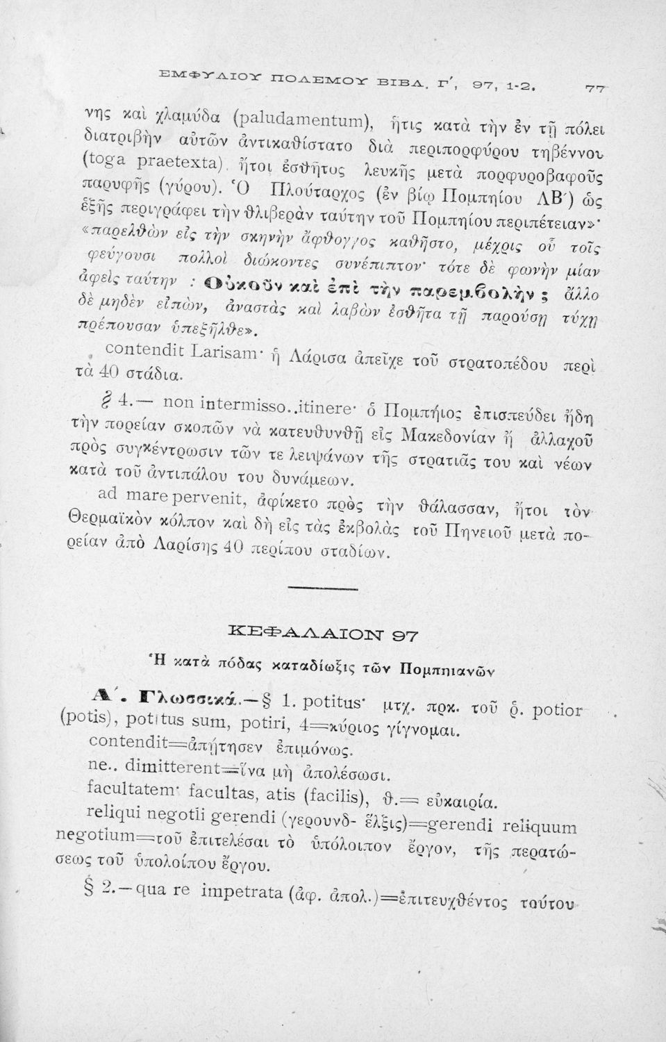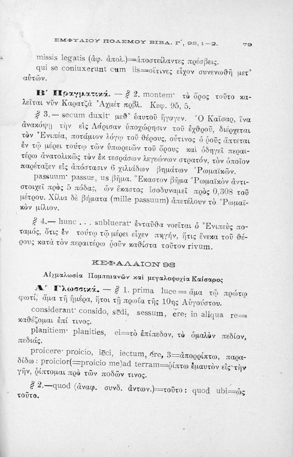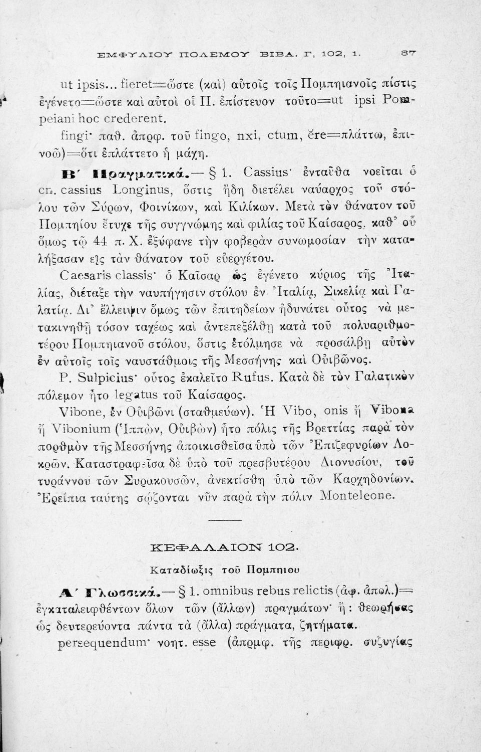 C. Iuli Caesaris comentarii de bello civili, liber iii, cap. 82-104, δια την Β΄ τάξιν των Τετραταξίων Γυμνασίων και της αντιστοίχου τοιαύτοις των λοιπών σχολείων της Μέσης Εκπαιδεύσεως