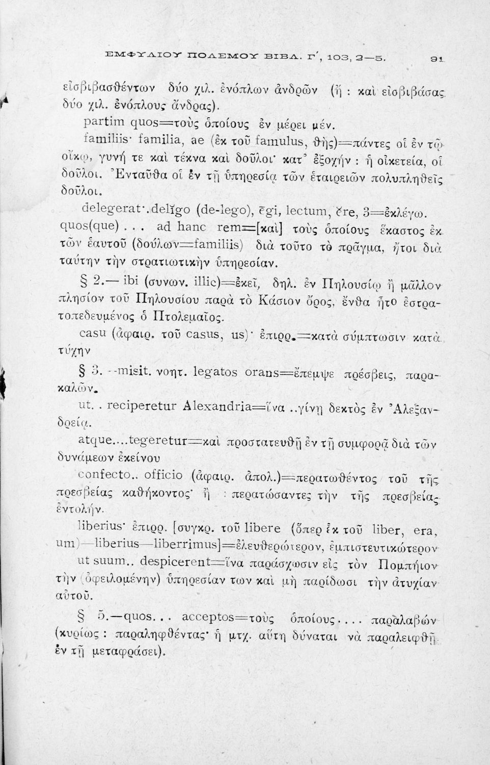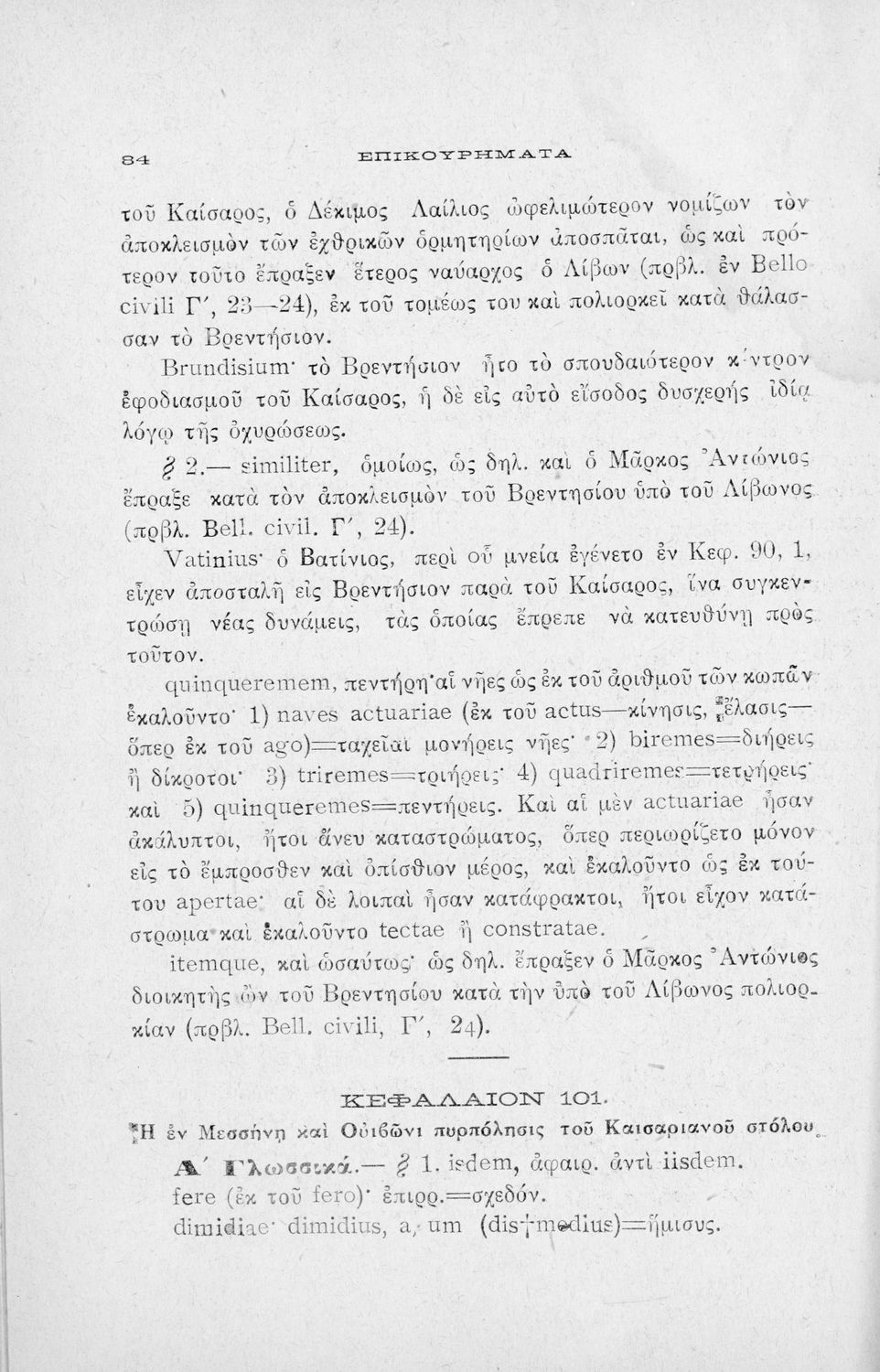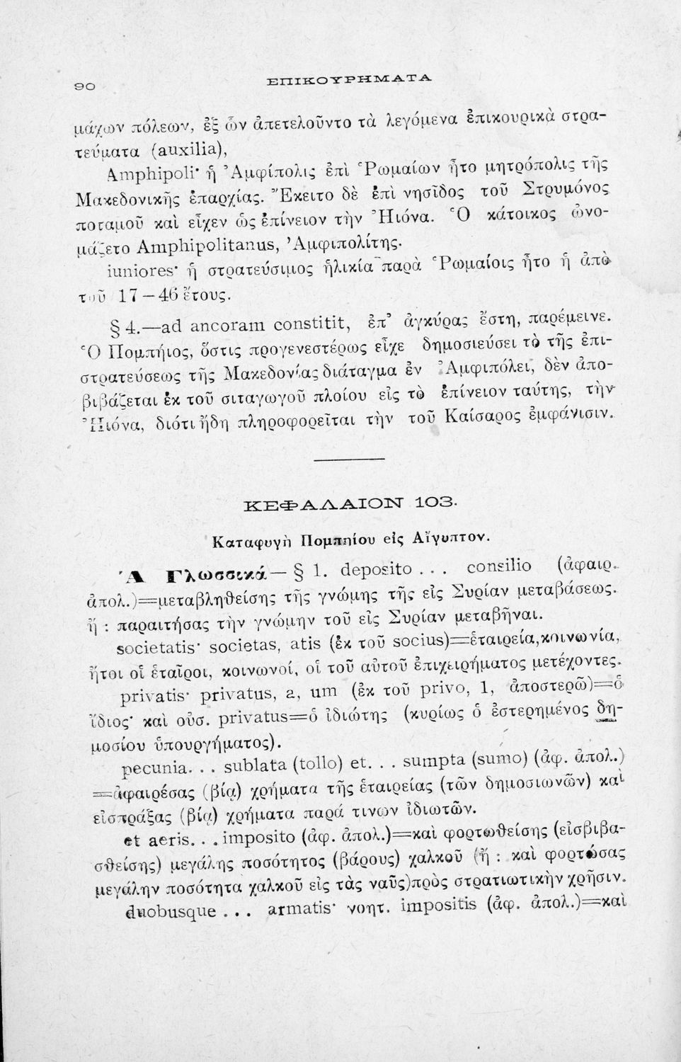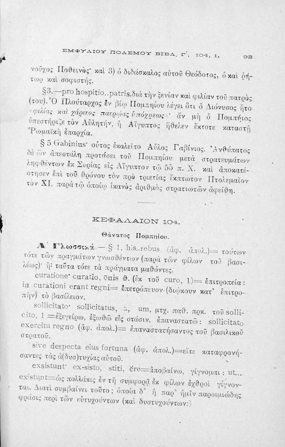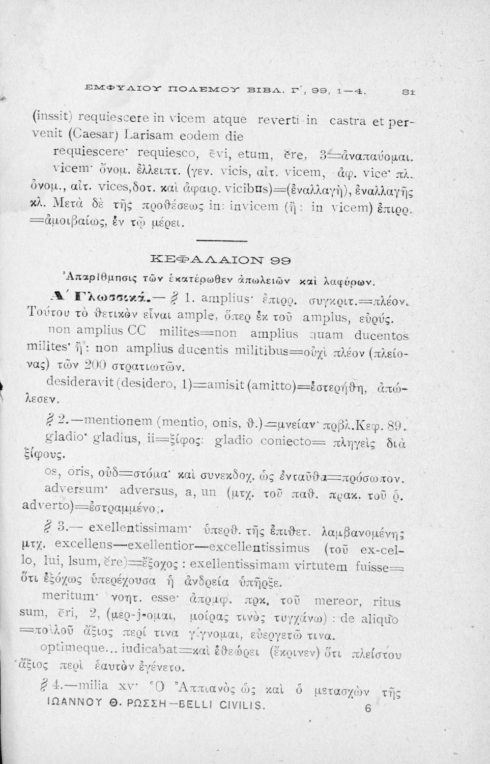 C. Iuli Caesaris comentarii de bello civili, liber iii, cap. 82-104, δια την Β΄ τάξιν των Τετραταξίων Γυμνασίων και της αντιστοίχου τοιαύτοις των λοιπών σχολείων της Μέσης Εκπαιδεύσεως