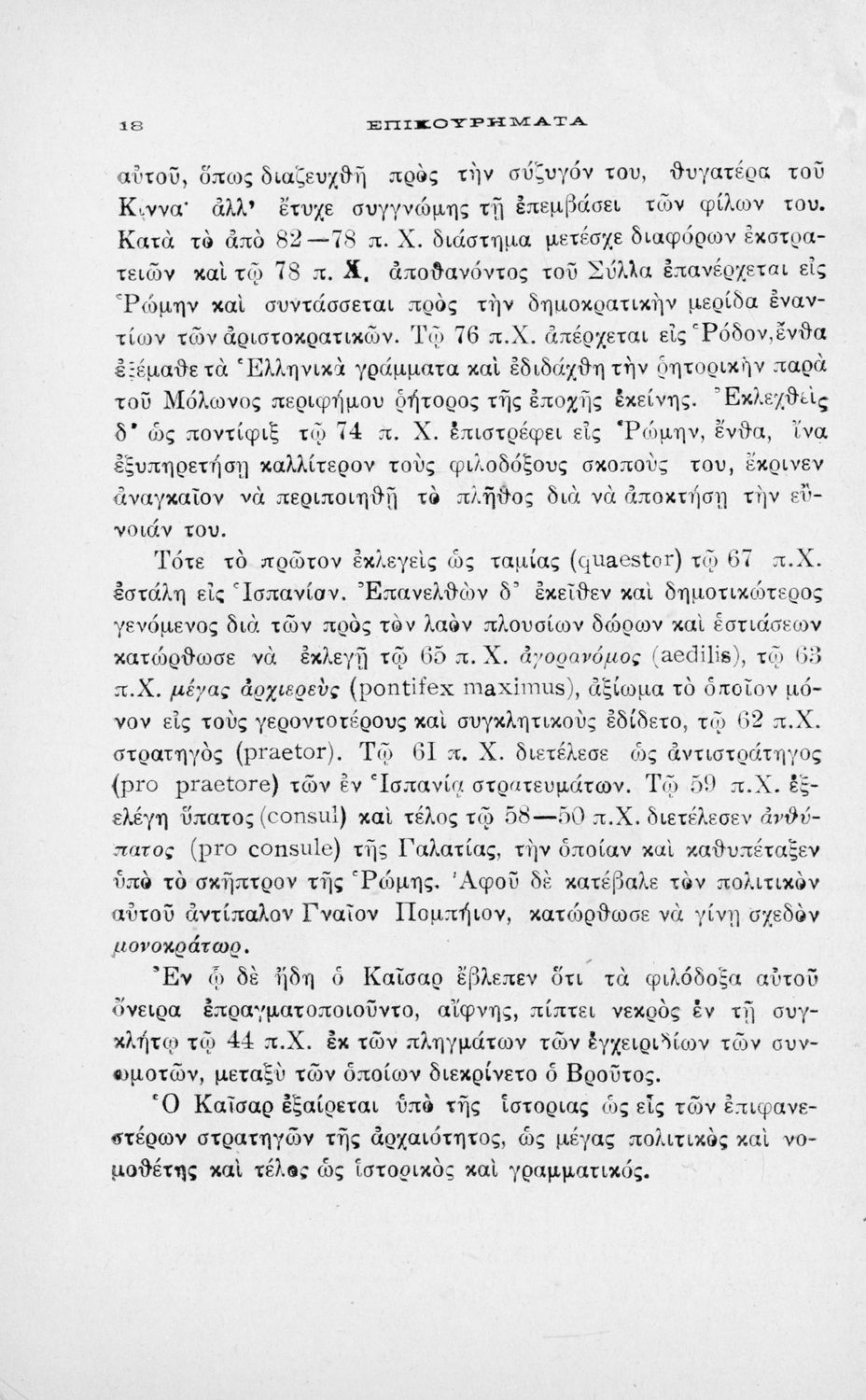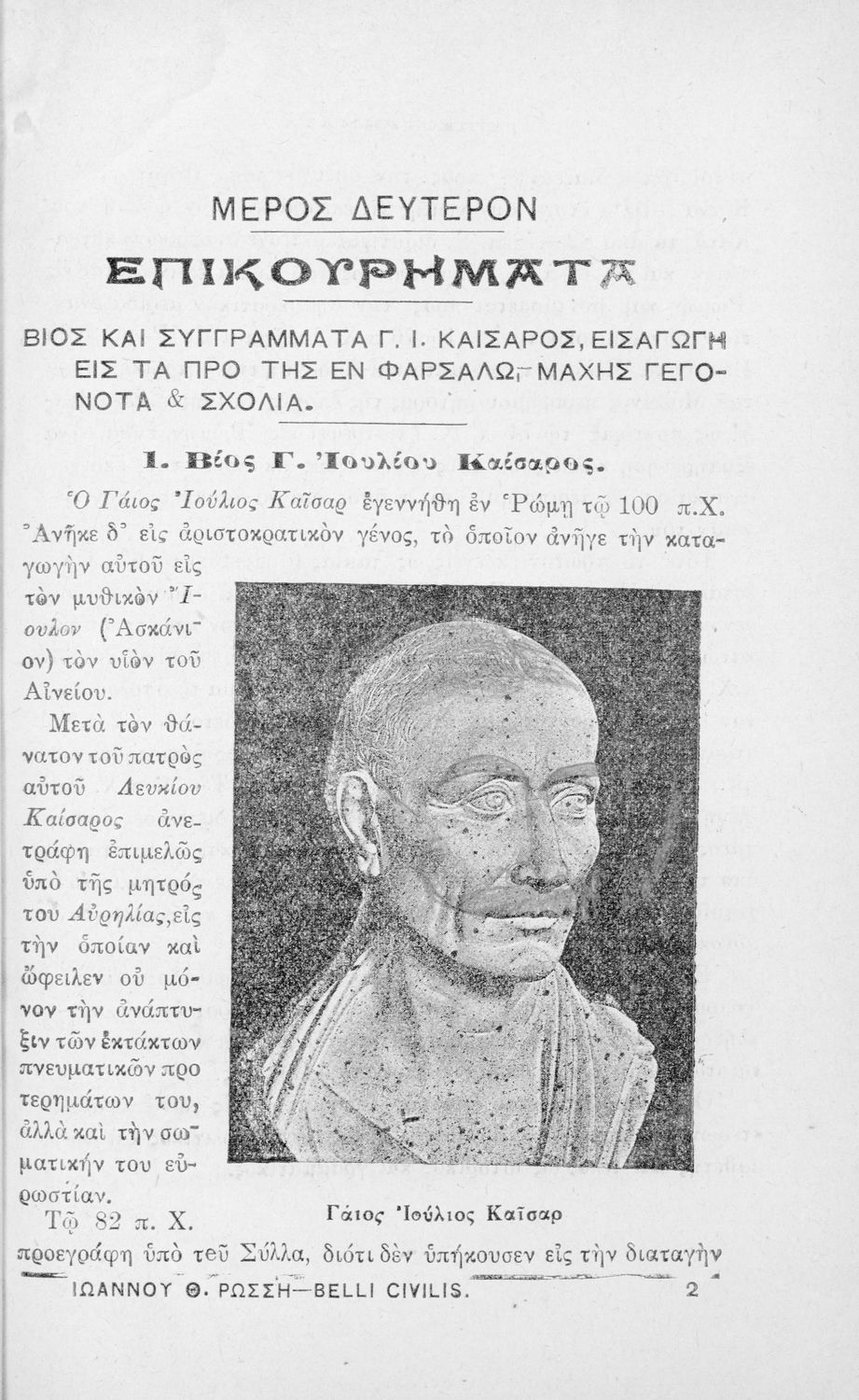 Σχολικό εγχειρίδιο Λατινικών για τη Β΄ Γυμνασίου που περιέχει αποσπάσματα από τα απομνημονεύματα του Ιούλιου Καίσαρα, σύντομο βιογραφικό σημείωμα, εισαγωγή στο έργο και πραγματολογικά και γλωσσικά σχόλια.