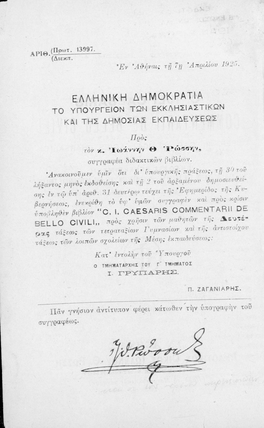 Εκδότης: Ιωάννης Θ. Ρώσσης Έτος έκδοσης: 1925 Τόπος έκδοσης: Αθήνα Υπουργική απόφαση / Σύμβαση: 13997/7-4-1925 Έτος έγκρισης: 1925 |