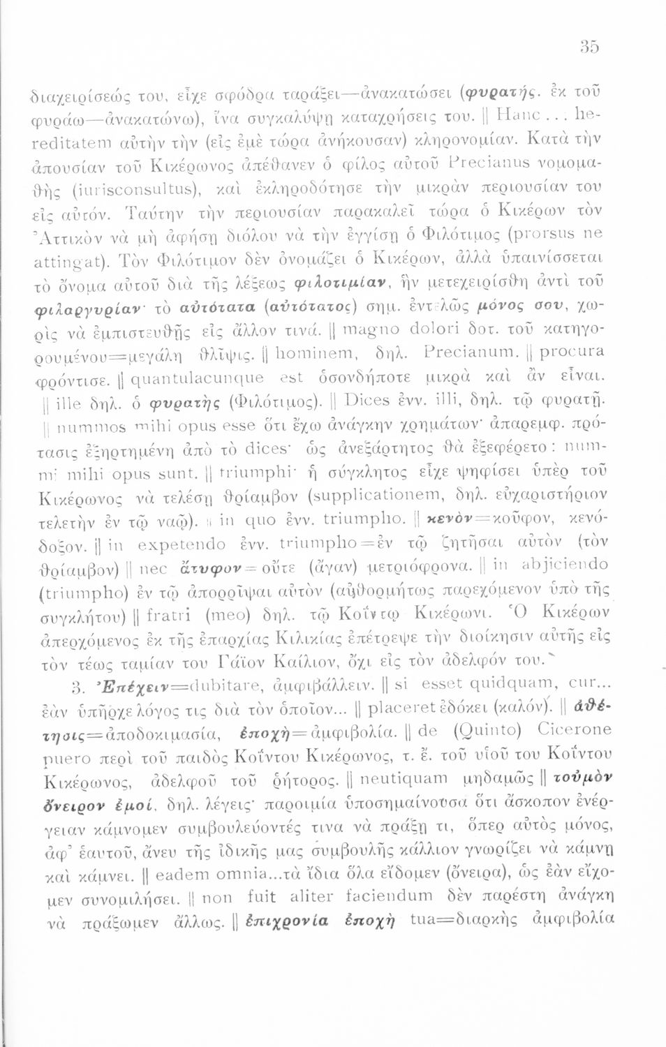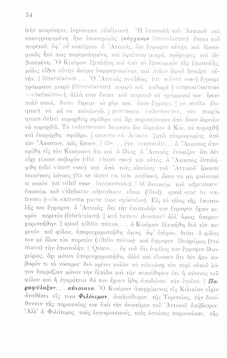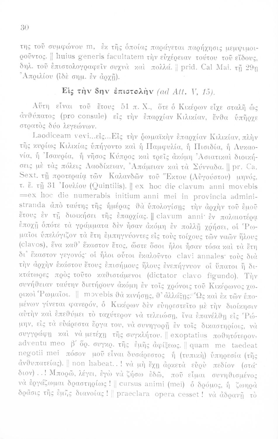 Σχολικό εγχειρίδιο Λατινικών για την Ε΄ Γυμνασίου που περιλαμβάνει ερμηνευτικά σχόλια πάνω στις επιστολές του Κικέρωνα προς τους οικείους του και προς τον Αττικό.