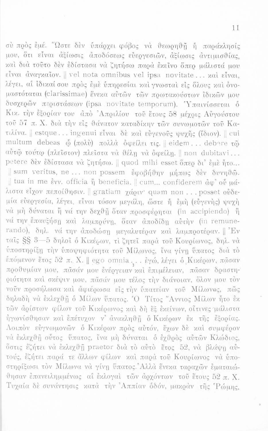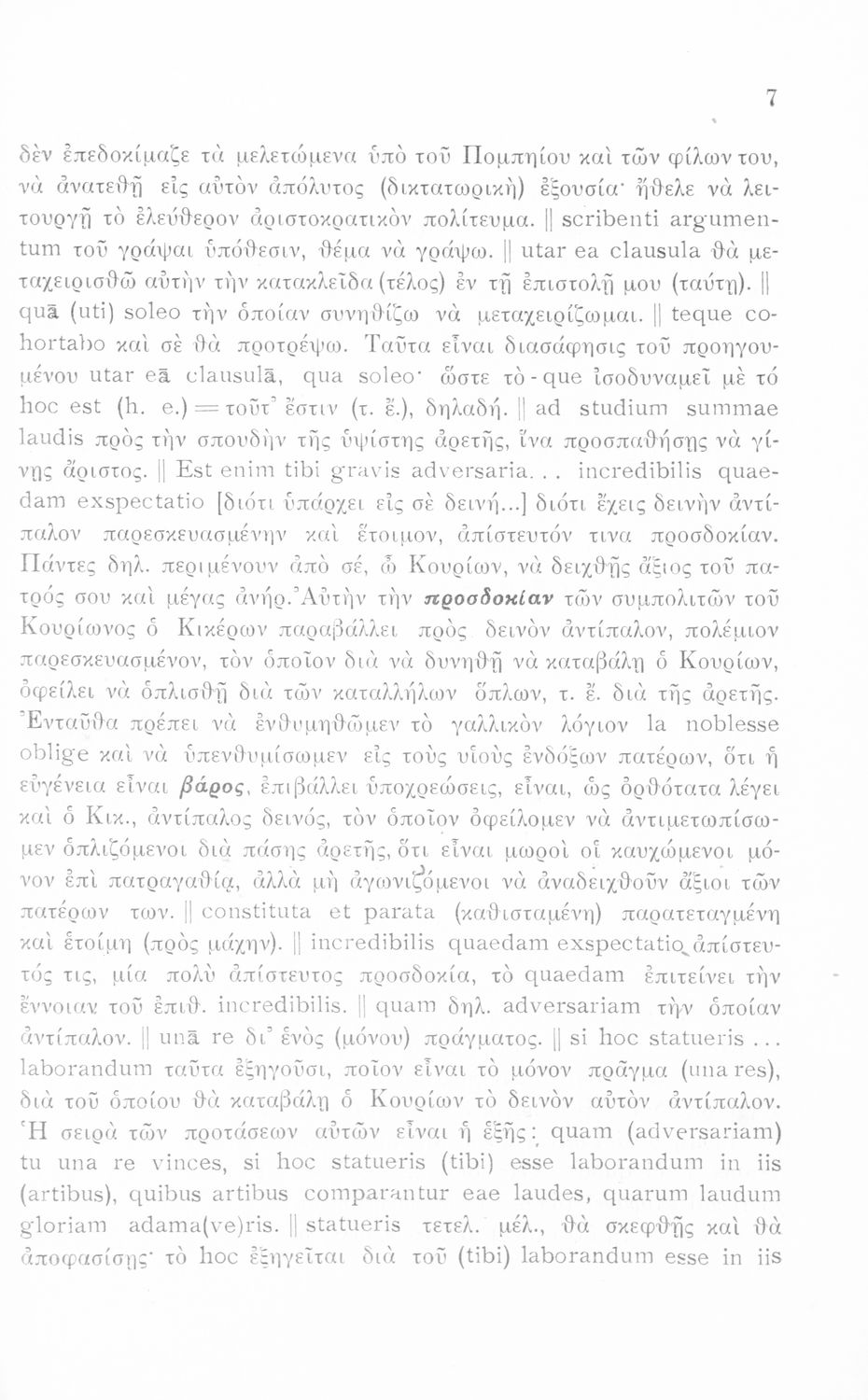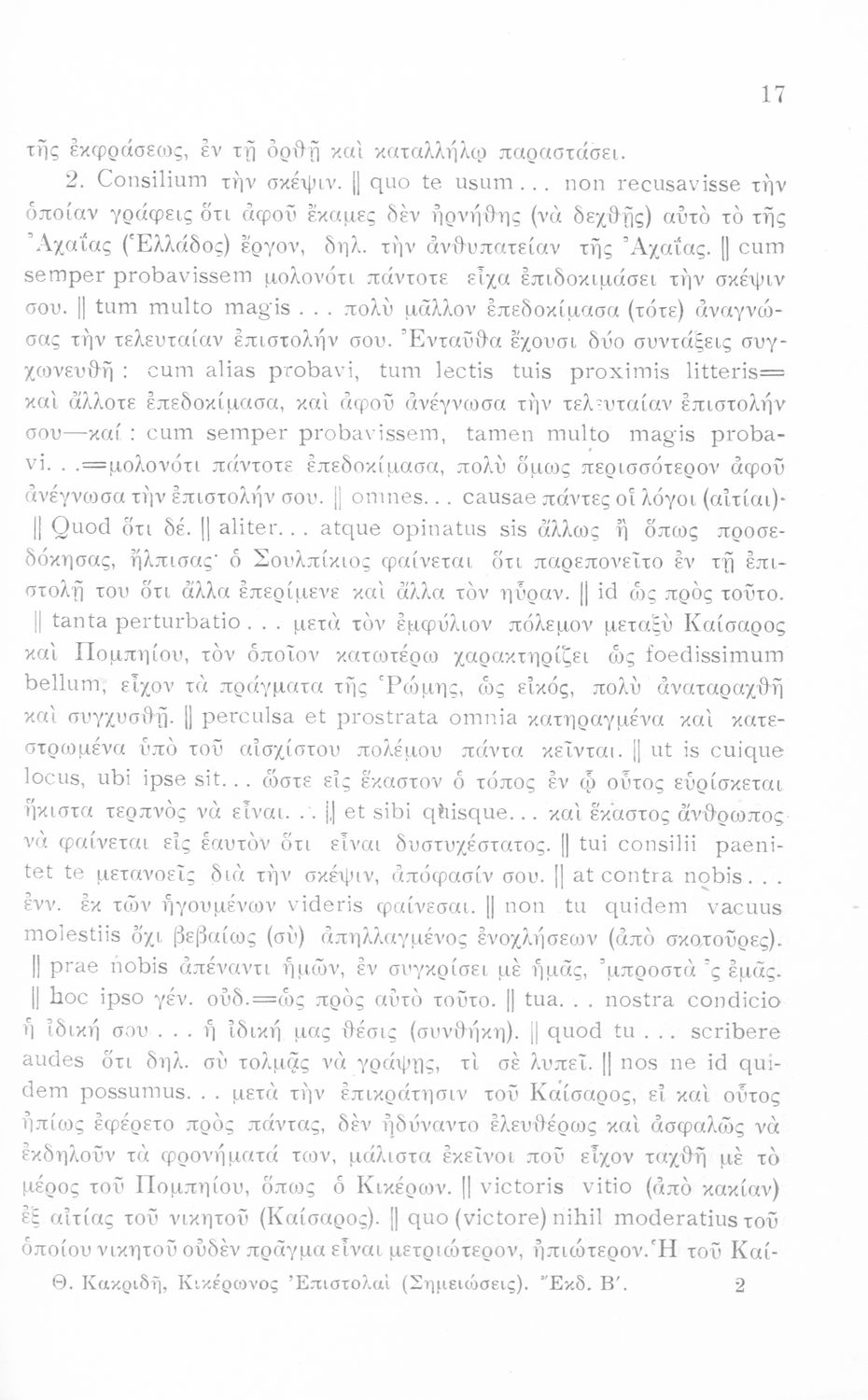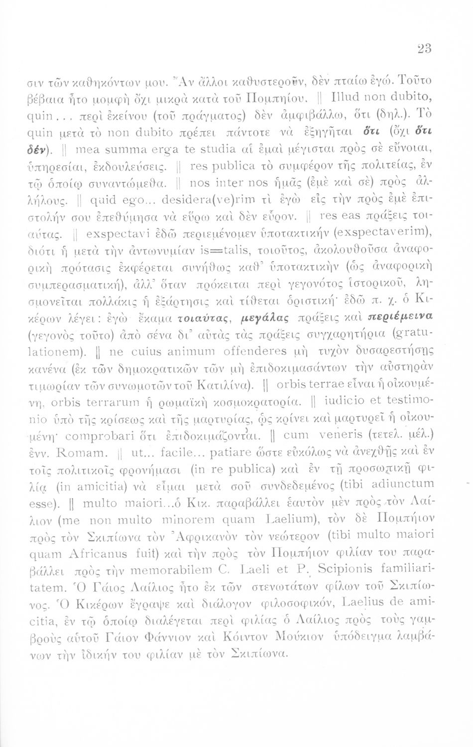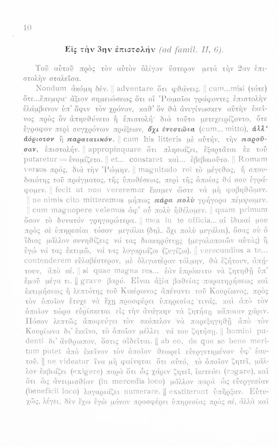 Σχολικό εγχειρίδιο Λατινικών για την Ε΄ Γυμνασίου που περιλαμβάνει ερμηνευτικά σχόλια πάνω στις επιστολές του Κικέρωνα προς τους οικείους του και προς τον Αττικό.