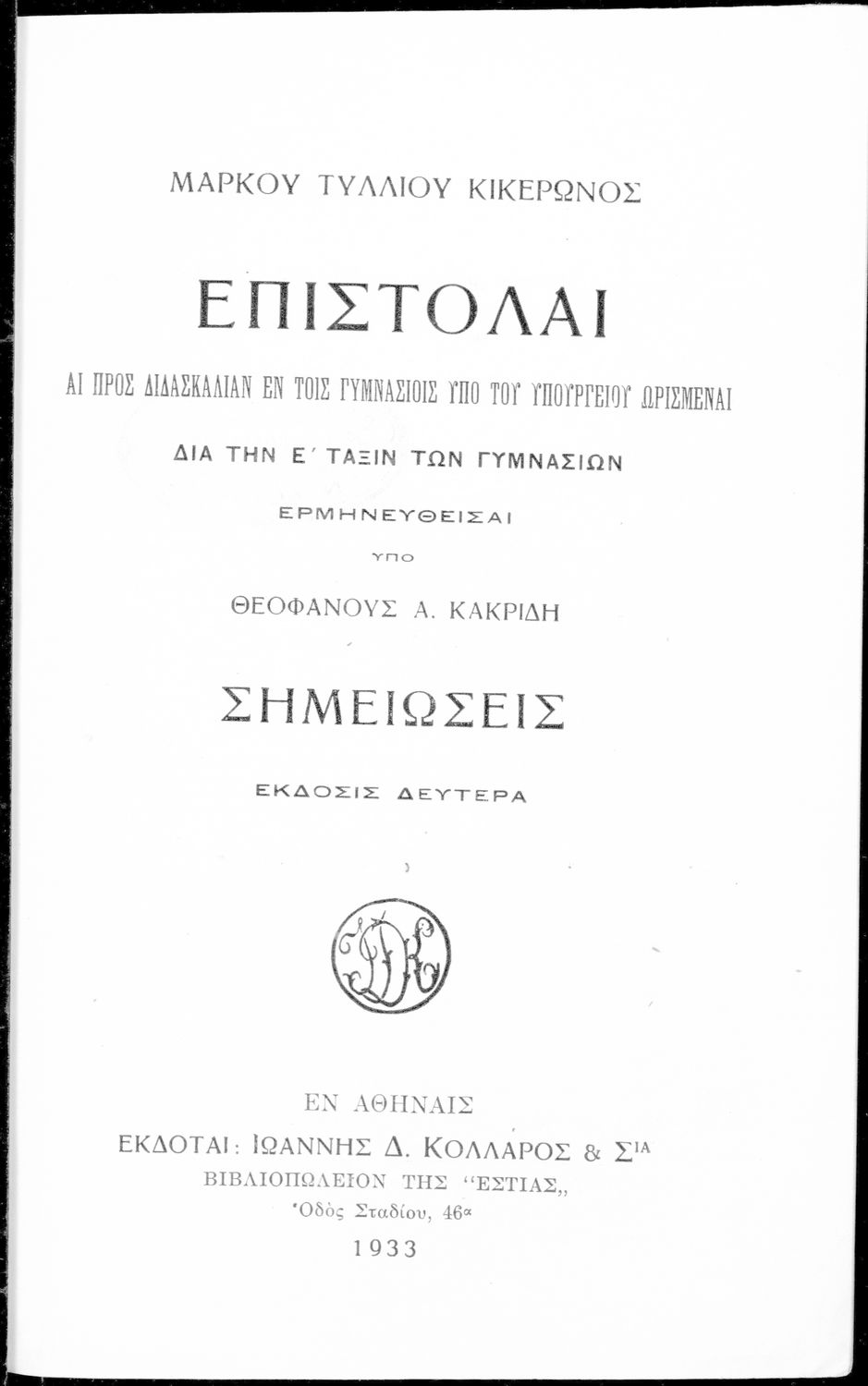 Εκδότης: Ιωάννης Δ. Κολλάρος Έτος έκδοσης: 1933 Τόπος έκδοσης: Αθήνα Έκδοση: 2η |
