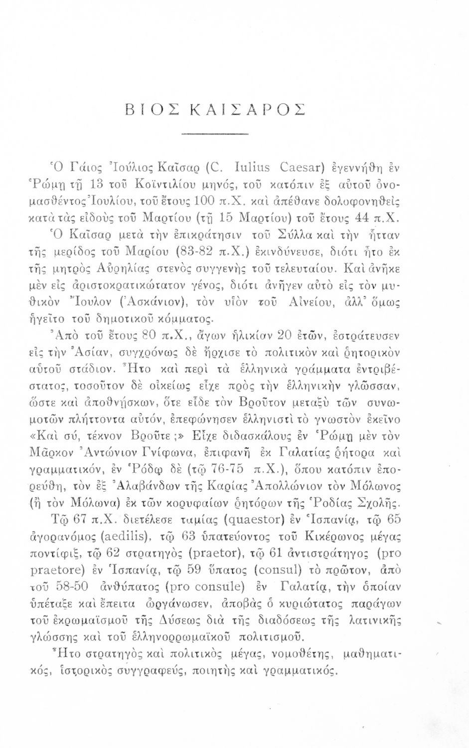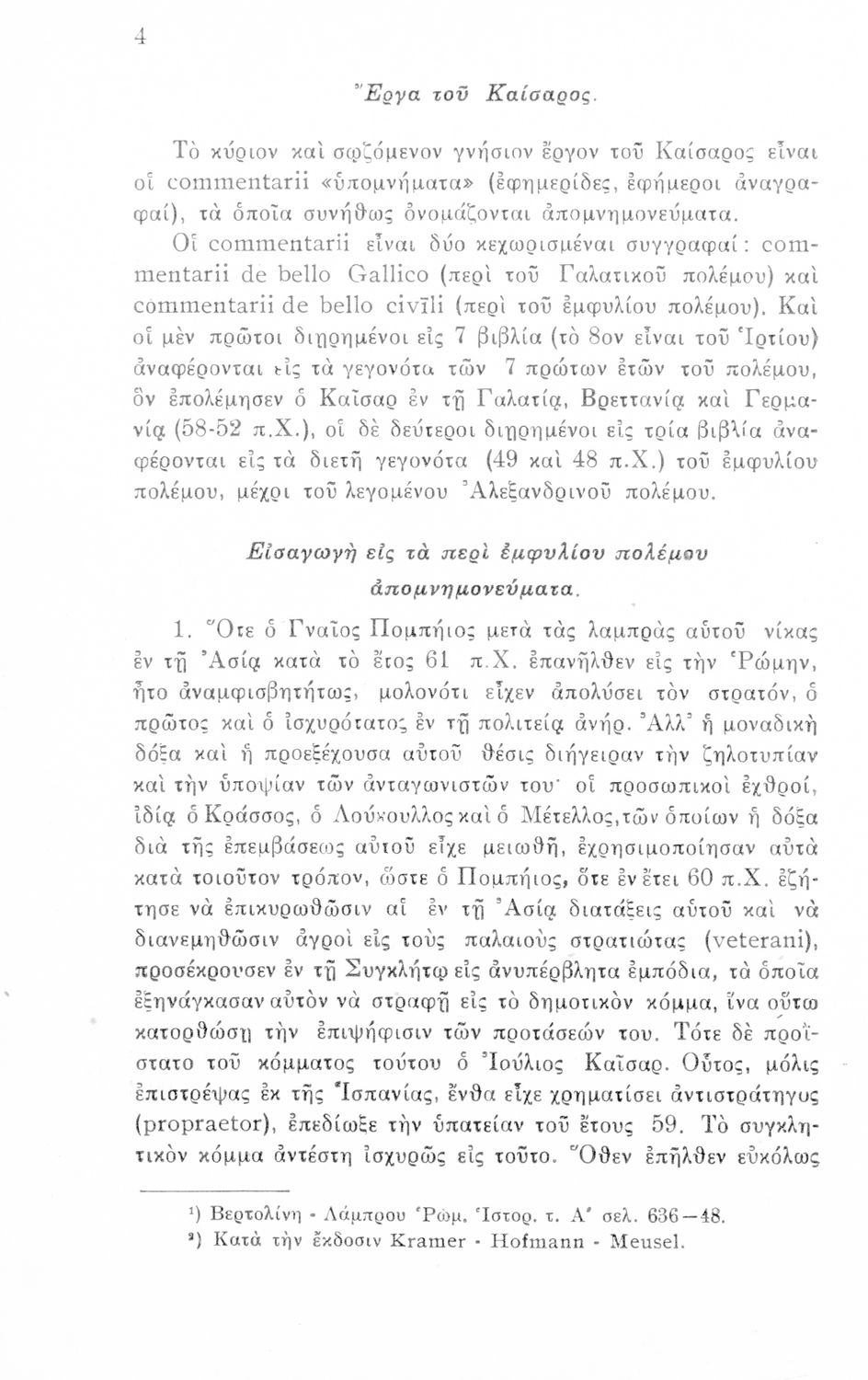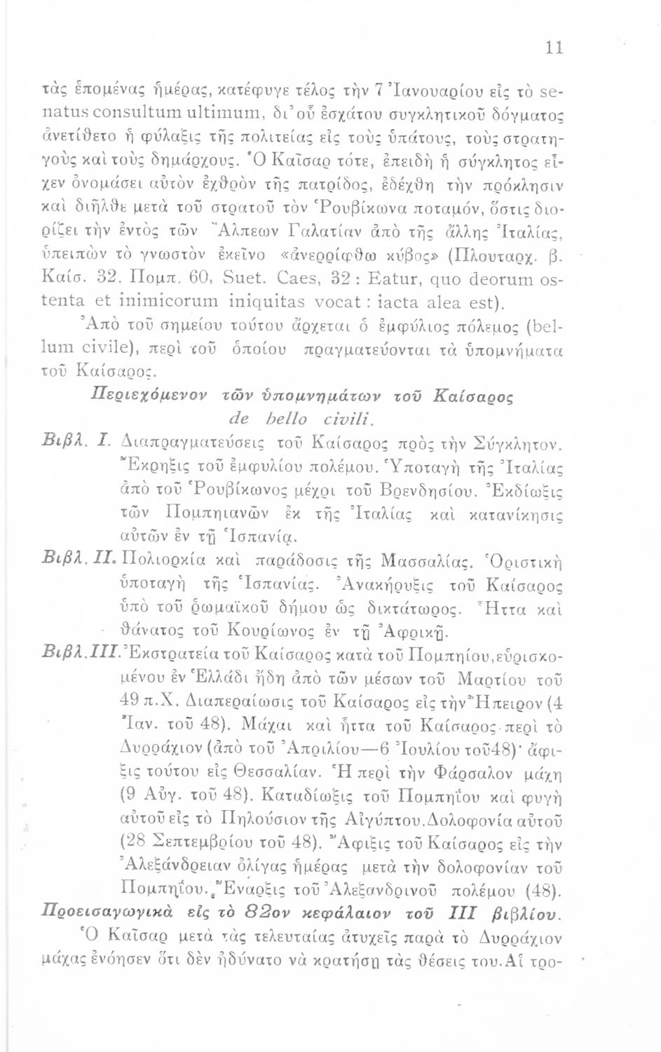 Σχολικό εγχειρίδιο Λατινικών για τη Δ΄ Γυμνασίου που περιέχει σύντομο βιογραφικό σημείωμα του Ιούλιου Καίσαρα, εισαγωγή στο έργο, κείμενο, ιστορικό και γεωγραφικό πίνακα και λεξιλόγιο. Ο συγγραφέας ήταν καθηγητής της Λατινικής Φιλολογίας στο Πανεπιστήμιο Αθηνών.