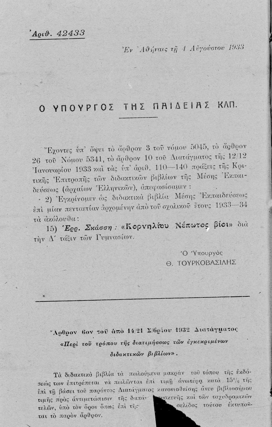 Υπουργική απόφαση / Σύμβαση: 42433/4-8-1933