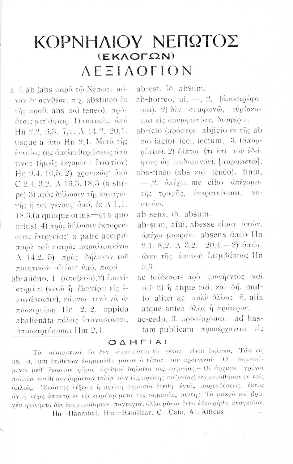 LDR 01367 2200217 4500 035 ## _a01-18481 040 ## _aΙνστιτούτο Εκπαιδευτικής Πολιτικής 041 ## _ael 100 ## _aΚορνήλιος Νέπως (Cornelius Nepos) _aΕρρίκος Α. Σκάσσης (σχόλια) 110 ## _a18481 245 0# _aΚορνηλίου Νέπωτος Βίοι (Εκλογαί) προς χρήσιν των μαθητών της Δ΄ τάξεως των Γυμνασίων 250 ## _a6η Έκδοση 260 ## _aΑθήνα _bΙωάννης Δ. Κολλάρος _c1938 300 ## _a104 _c20 520 ## _aΣχολικό εγχειρίδιο Λατινικών Δ΄ Γυμνασίου που περιέχει σύντομο βιογραφικό σημείωμα του Νέπωτα, αποσπάσματα από τα έργα Αμίλκας, Αννίβας, Κάτων και Αττικός, ιστορικό και γεωγραφικό πίνακα και λεξιλόγιο. Ο συγγραφέας ήταν καθηγητής της Λατινικής Φιλολογίας στο Πανεπιστήμιο Αθηνών. 521 ## _aΔ' Γυμνασίου 522 ## _aΕλλάδα 546 ## _aΚαθαρεύουσα 563 ## _aΣκληρό Εξώφυλλο 583 ## _a42433/4-8-1933 _c1933 650 #4 _aAtticus _aCato _aHamilcar _aHannibal