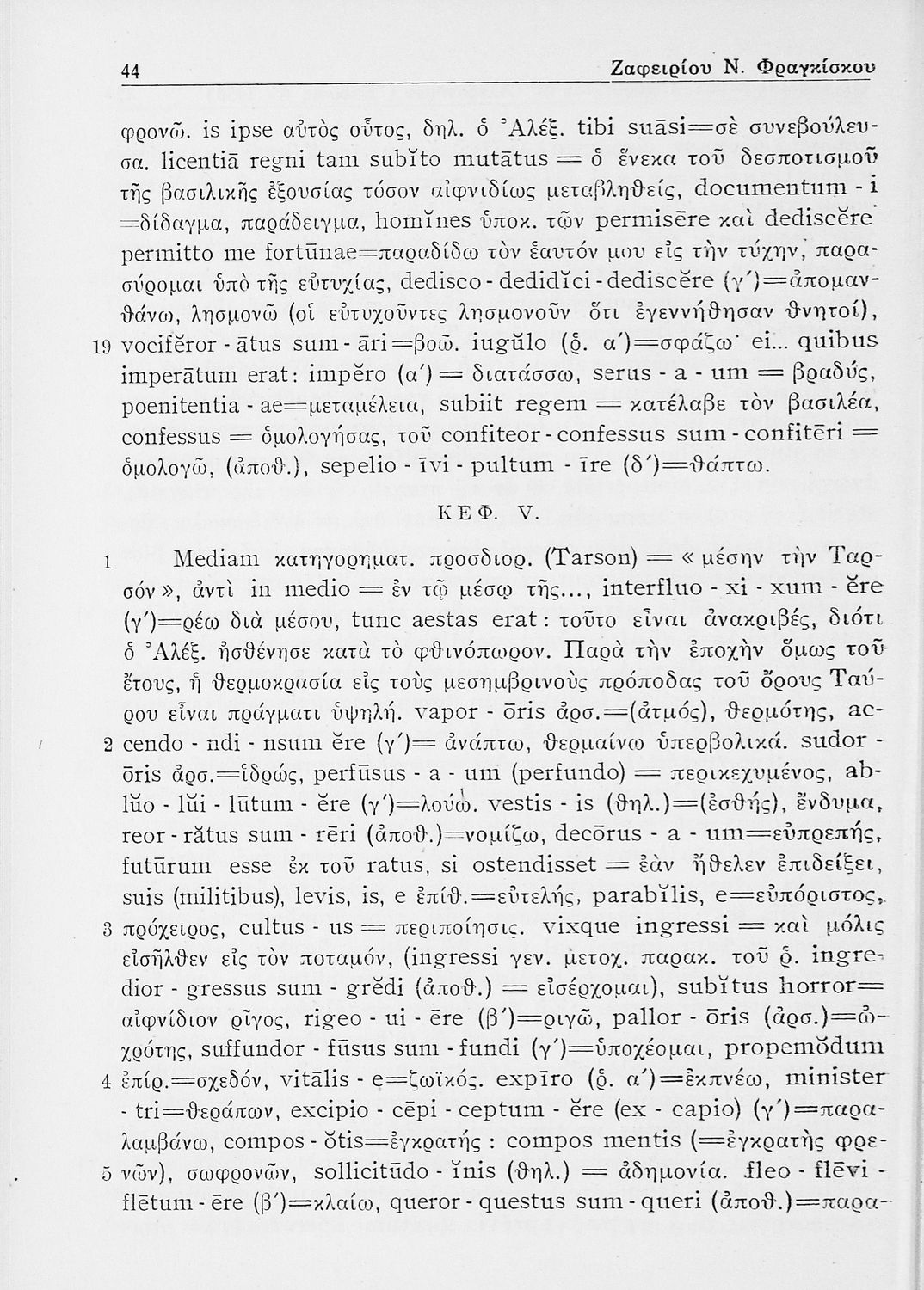 Γάιος Ιούλιος Φαίδρος (G. Julius Phaedrus), Ζαφείριος Ν. Φραγκίσκος (σχόλια)