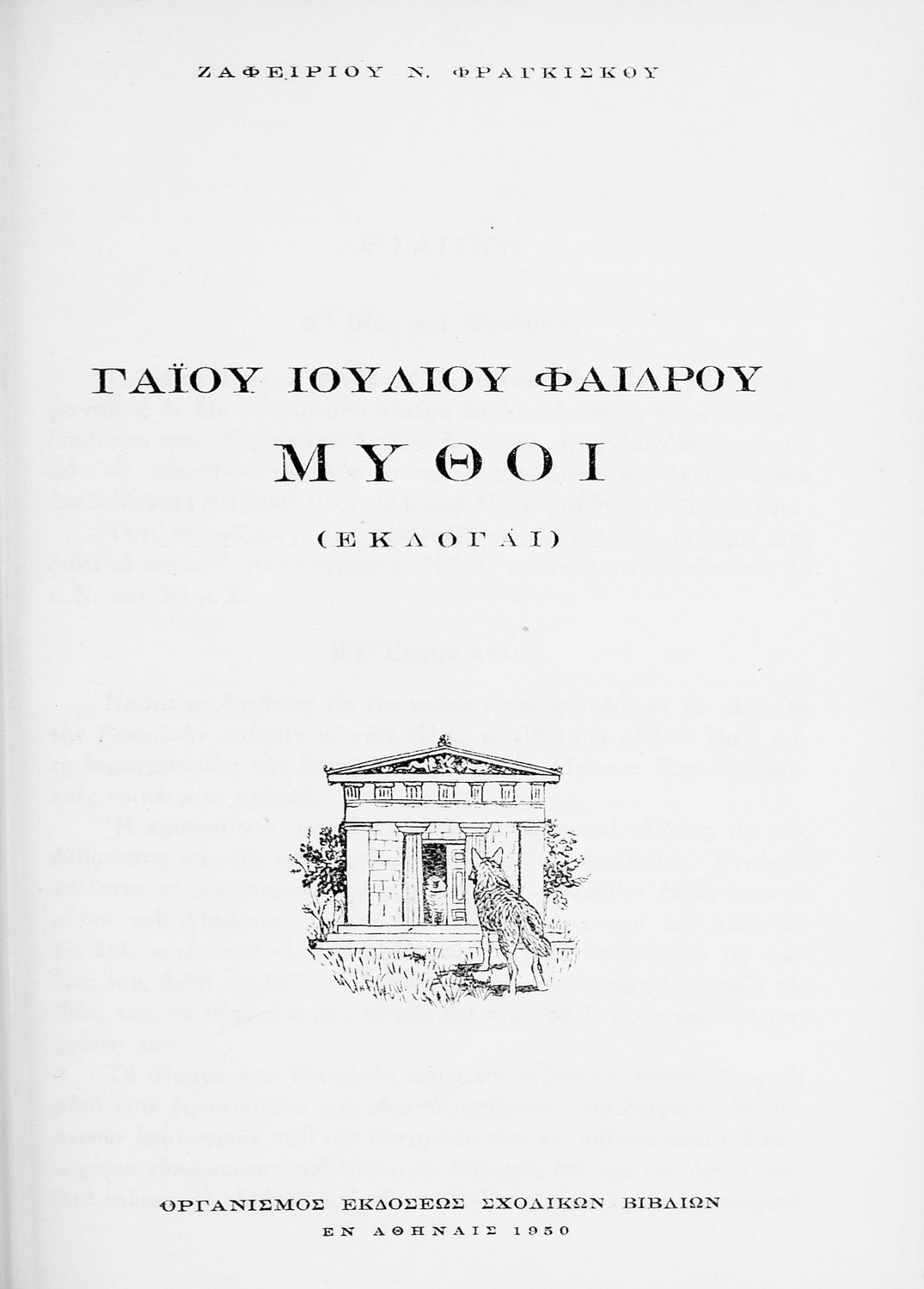 Σχολικό εγχειρίδιο Λατινικών που περιέχει σύντομο βιογραφικό σημείωμα του Φαίδρου, εισαγωγή στο έργο, κείμενο και σημειώσεις