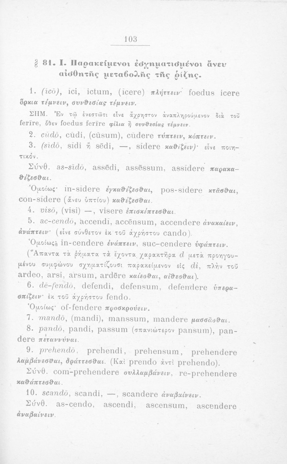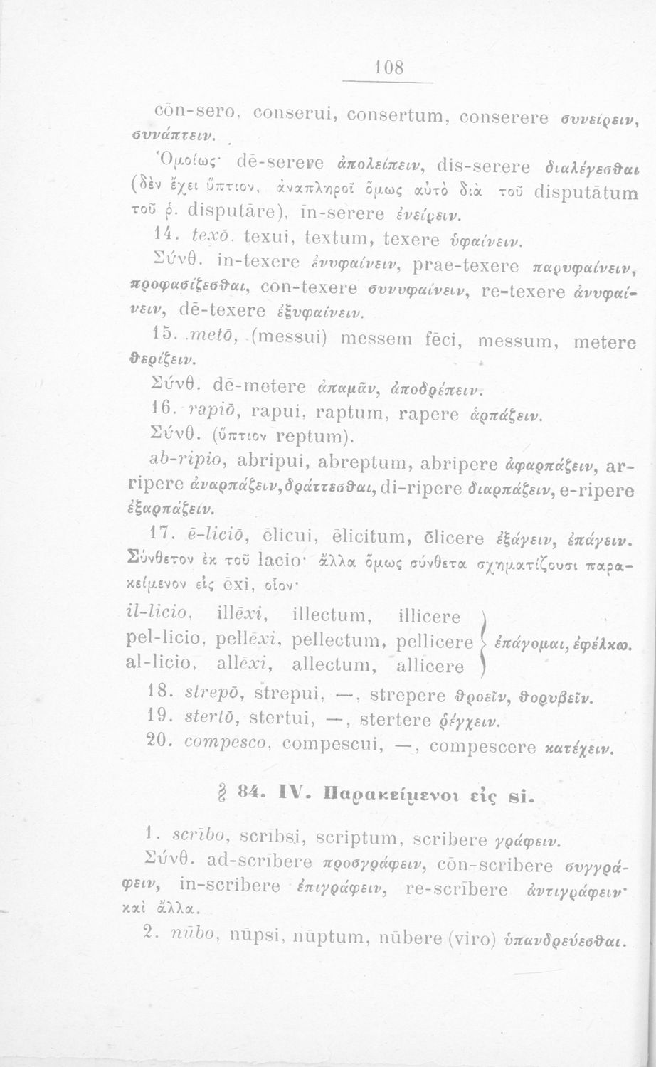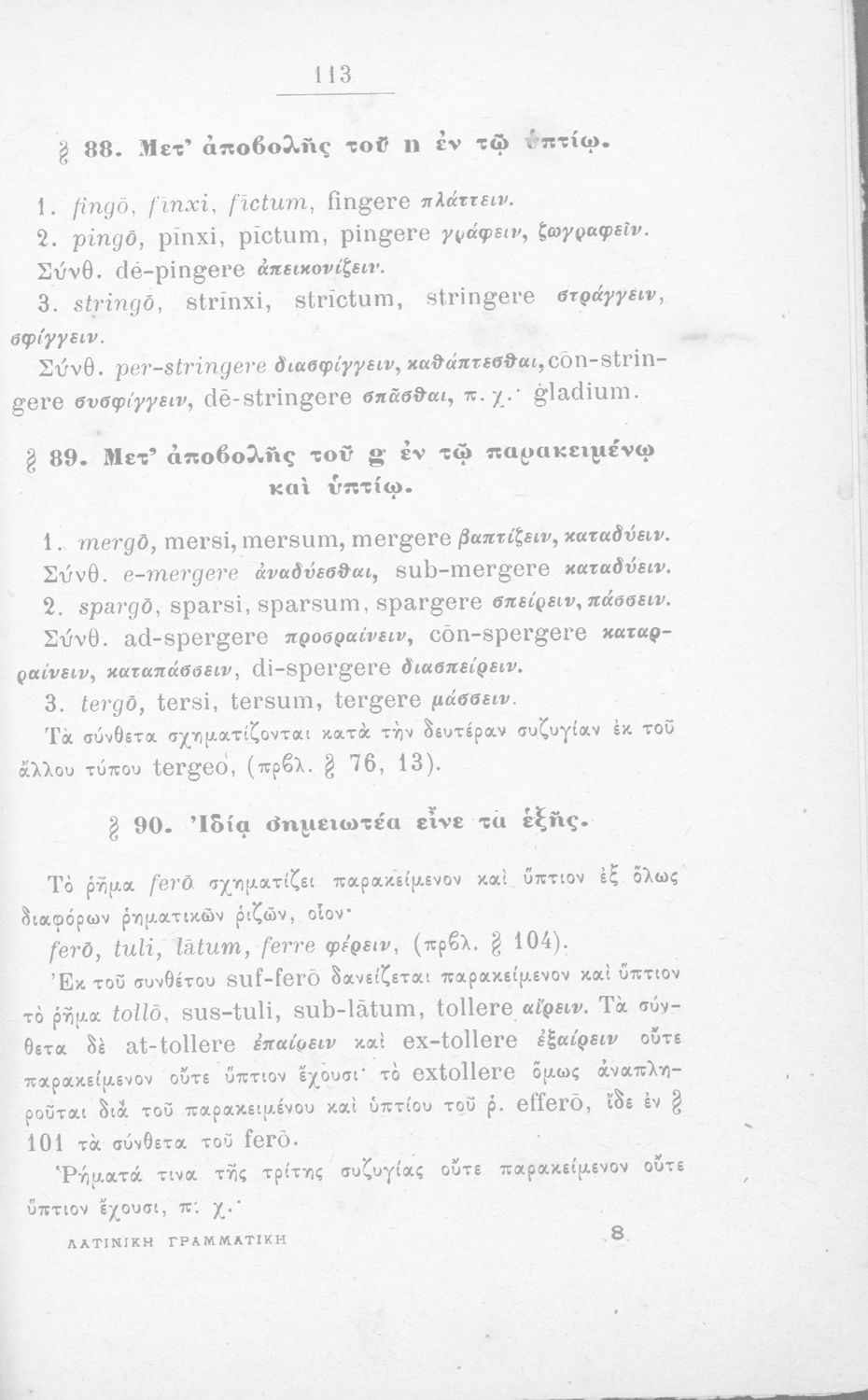 Σχολικό εγχειρίδιο Λατινικών που περιλαμβάνει τη γραμματική της λατινικής και είναι χωρισμένο στο τεχνολογικό, το τυπολογικό και το ετυμολογικό μέρος.