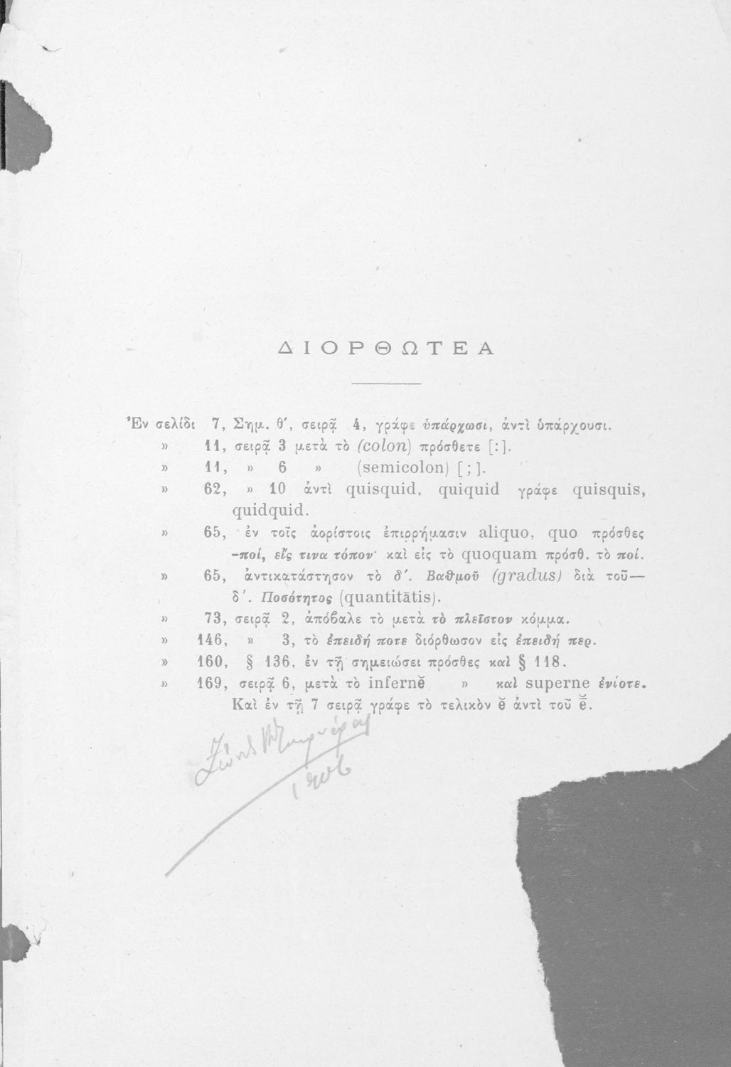 Τίτλος: Λατινική γραμματική προς χρήσιν των μαθητών των Γυμνασίων