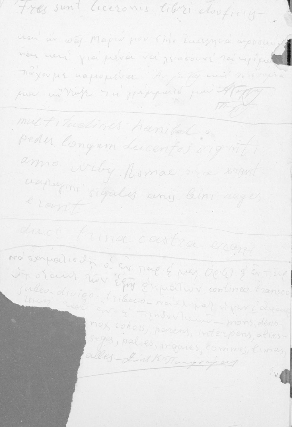 Σχολικό εγχειρίδιο Λατινικών που περιλαμβάνει τη γραμματική της λατινικής και είναι χωρισμένο στο τεχνολογικό, το τυπολογικό και το ετυμολογικό μέρος.