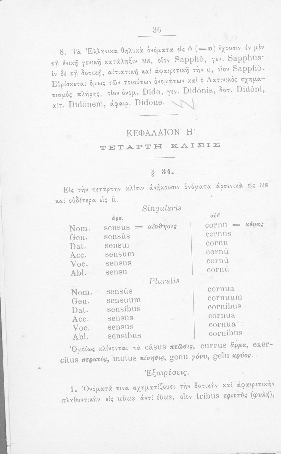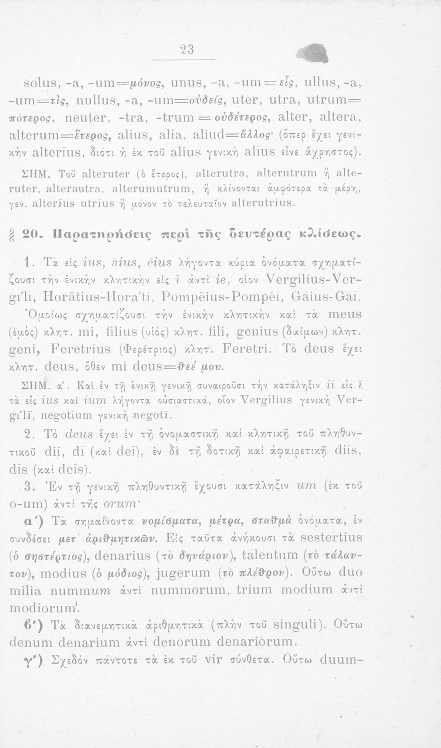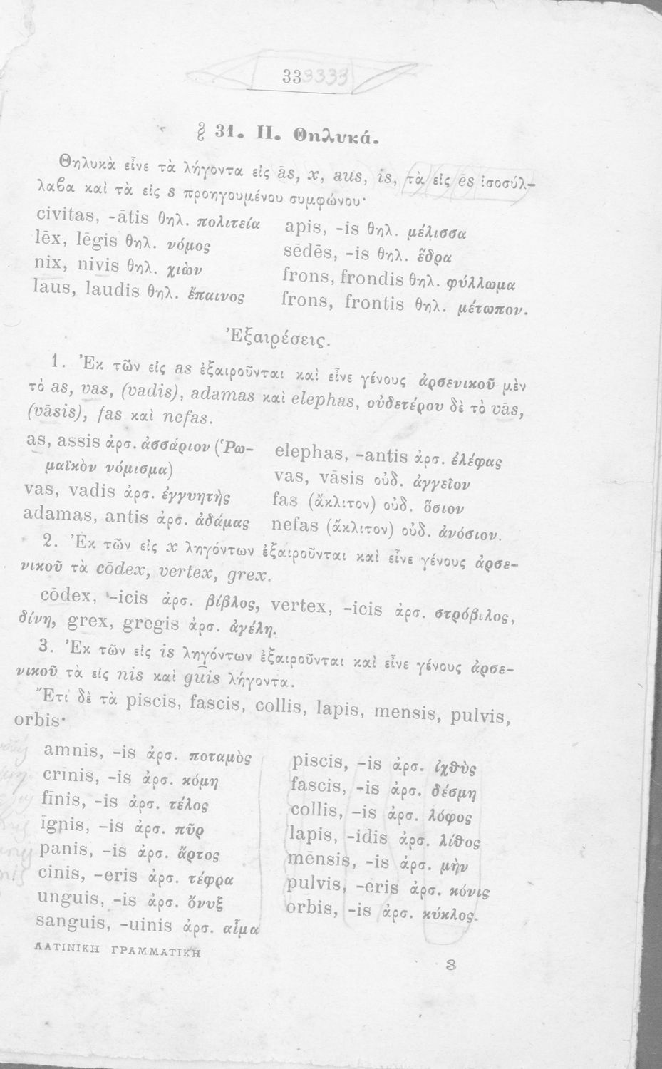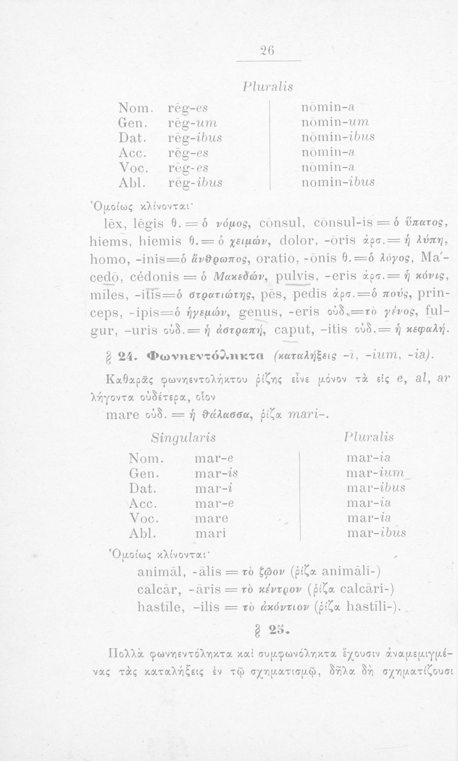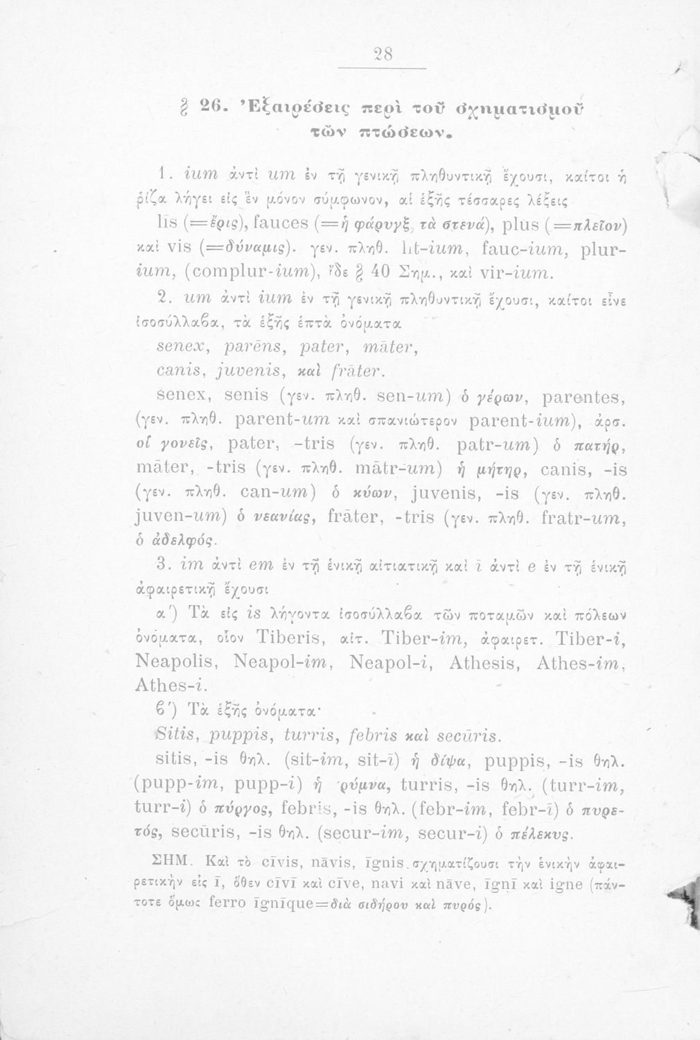 Σχολικό εγχειρίδιο Λατινικών που περιλαμβάνει τη γραμματική της λατινικής και είναι χωρισμένο στο τεχνολογικό, το τυπολογικό και το ετυμολογικό μέρος.