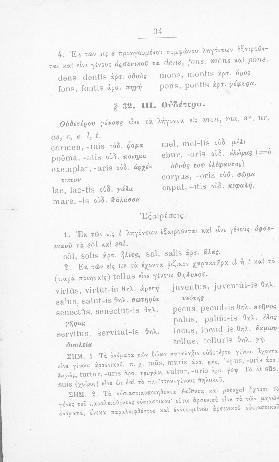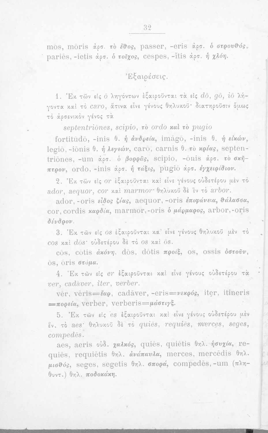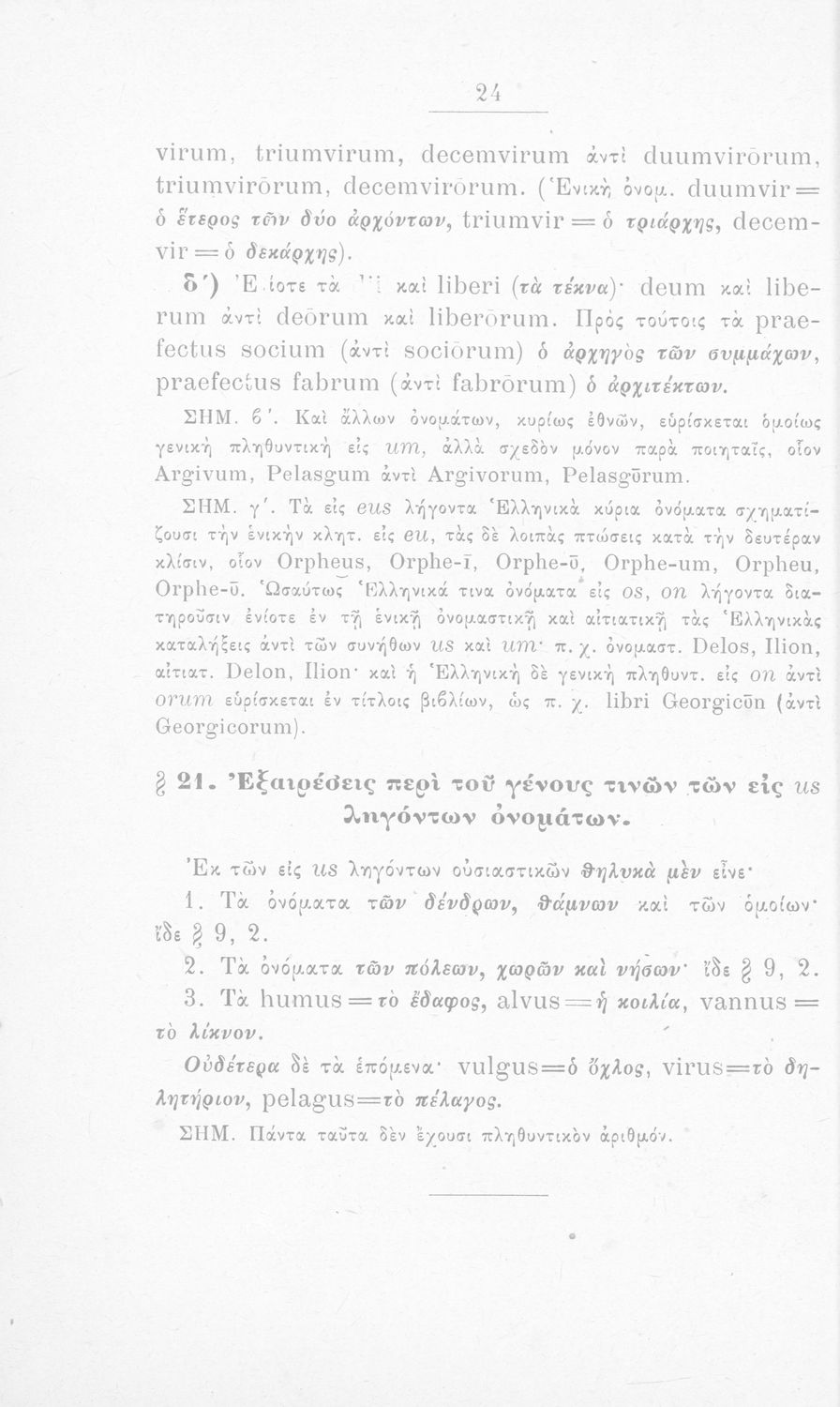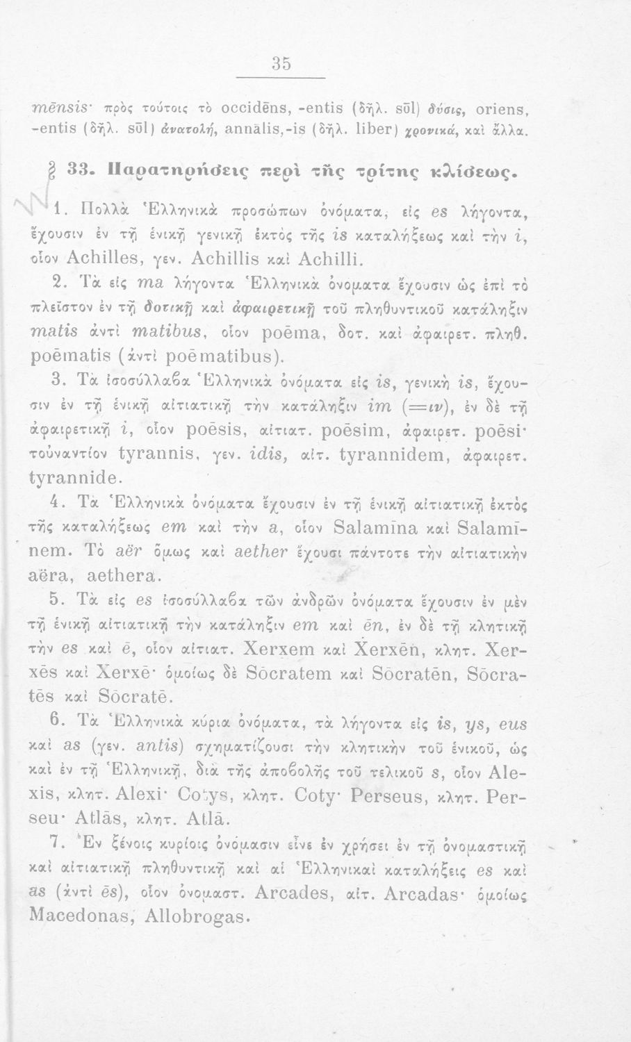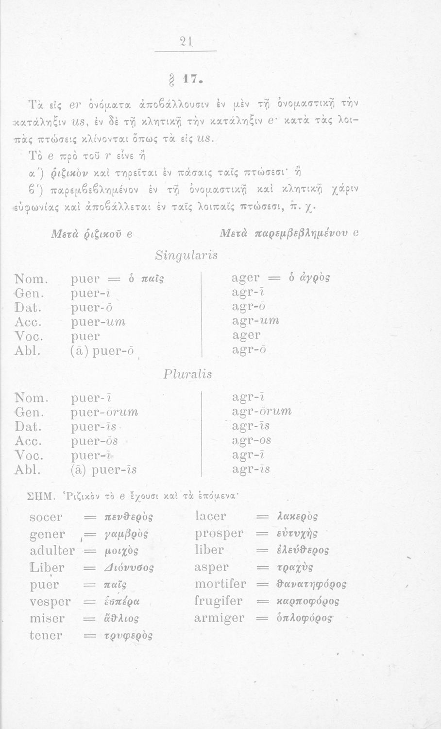 Σχολικό εγχειρίδιο Λατινικών που περιλαμβάνει τη γραμματική της λατινικής και είναι χωρισμένο στο τεχνολογικό, το τυπολογικό και το ετυμολογικό μέρος.
