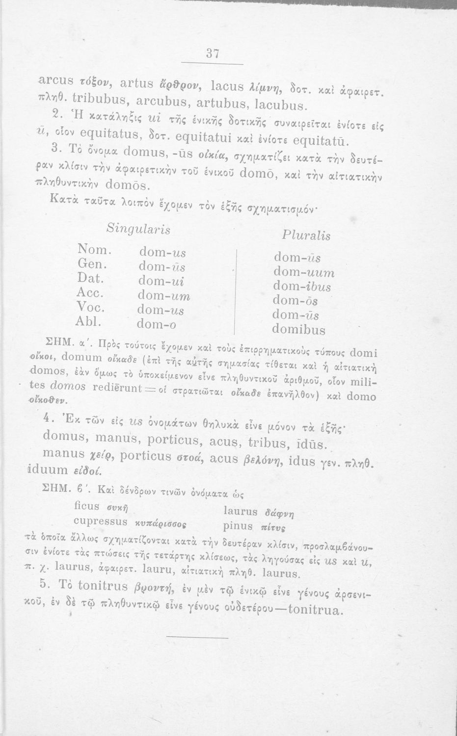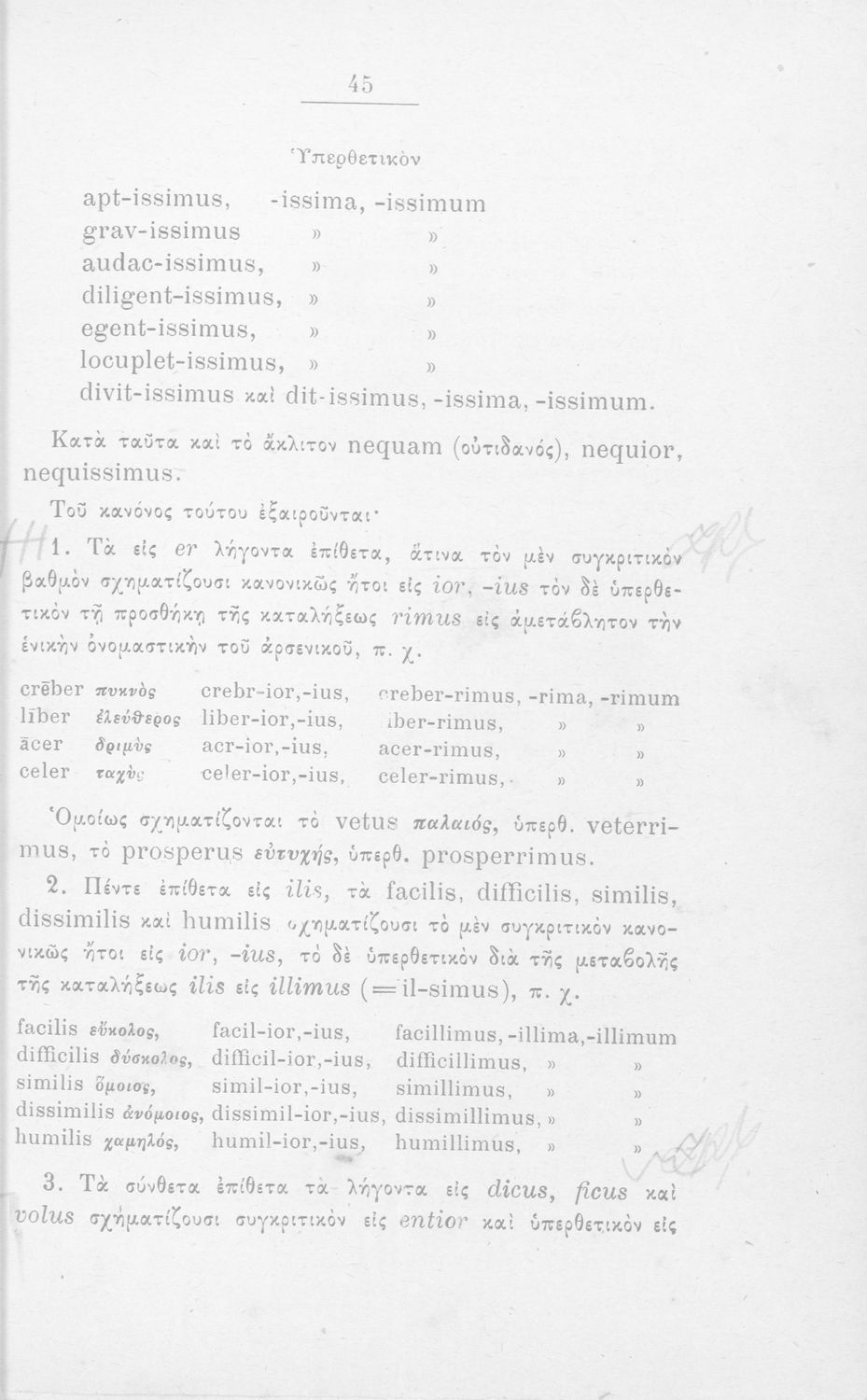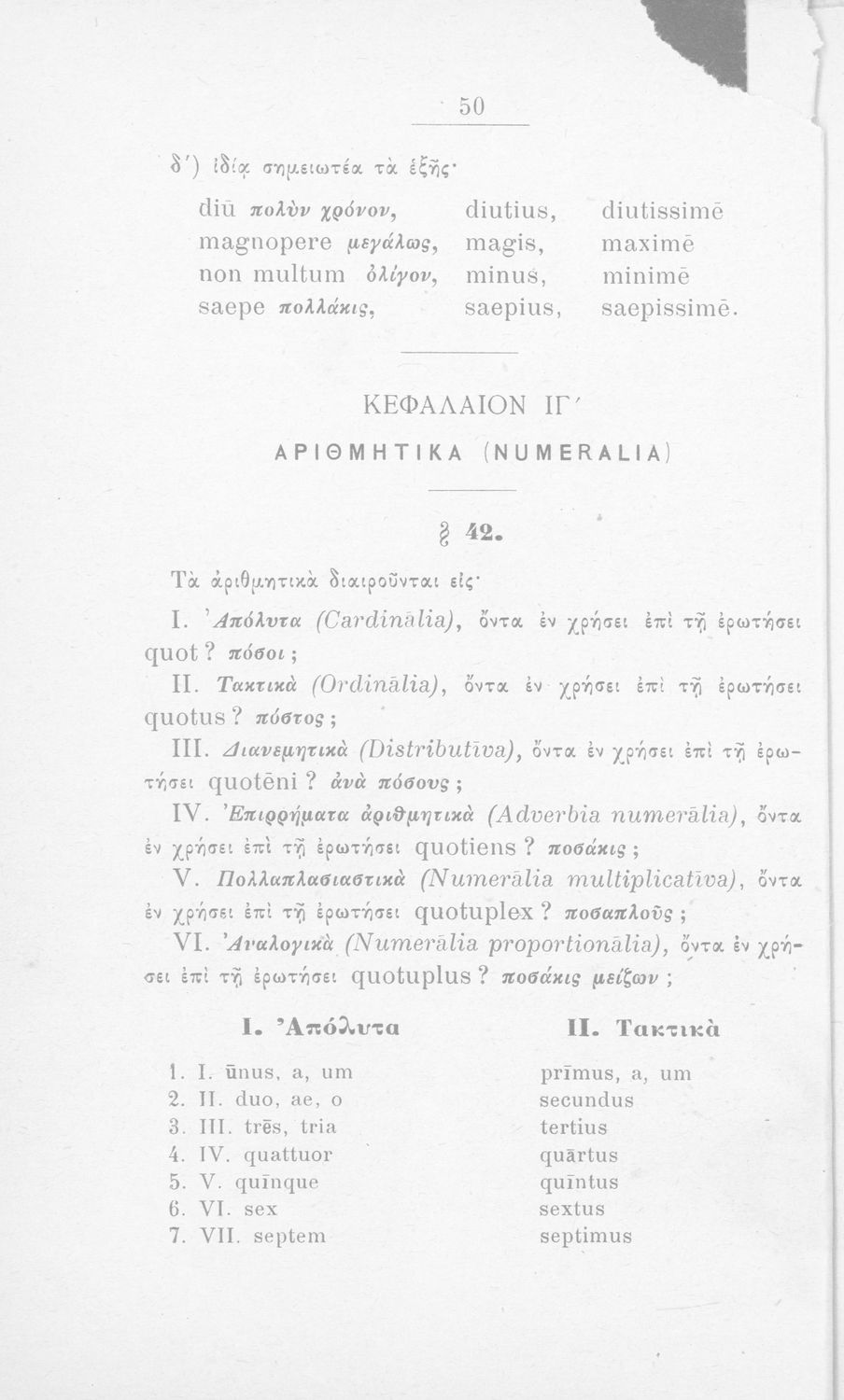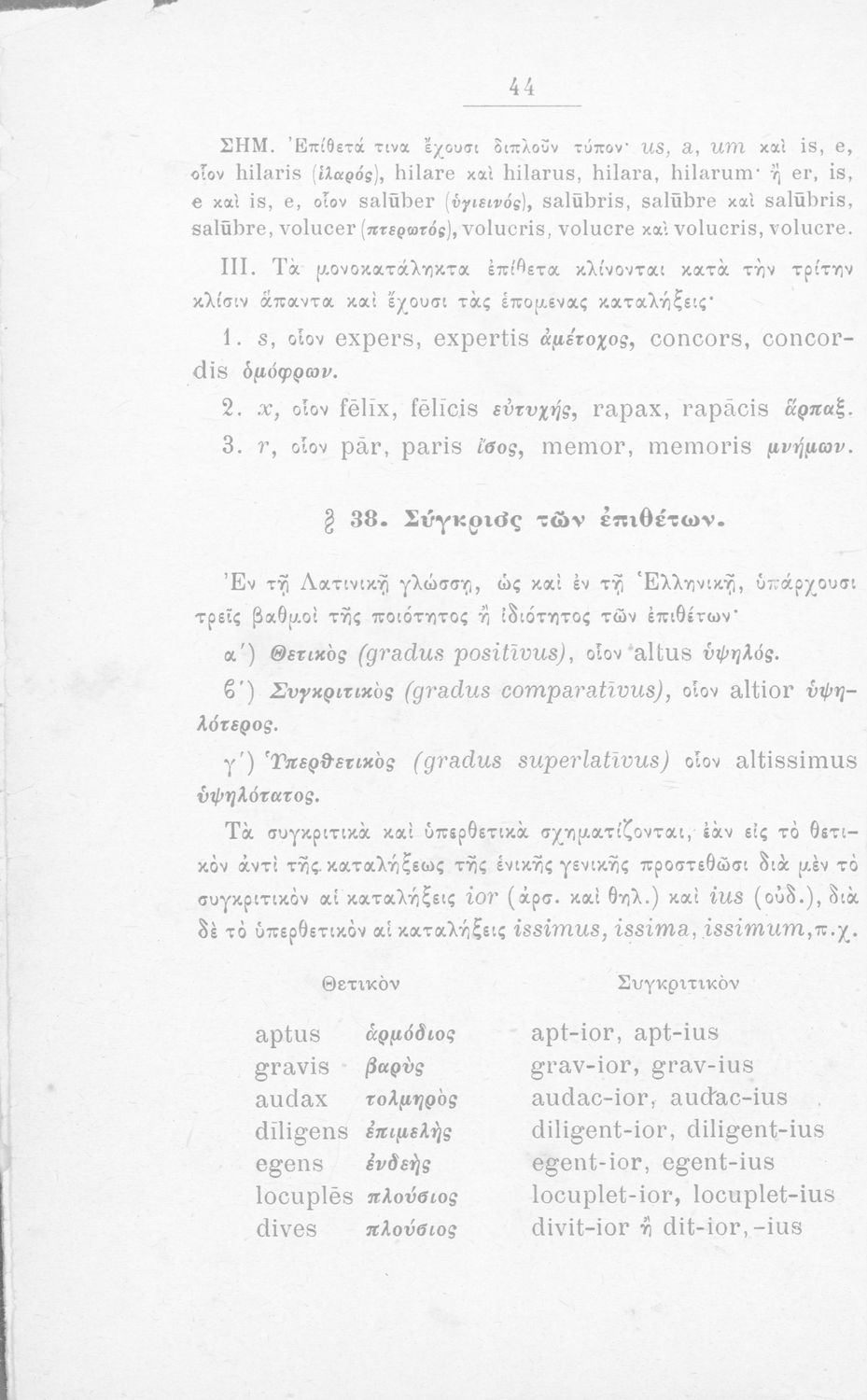 Σχολικό εγχειρίδιο Λατινικών που περιλαμβάνει τη γραμματική της λατινικής και είναι χωρισμένο στο τεχνολογικό, το τυπολογικό και το ετυμολογικό μέρος.