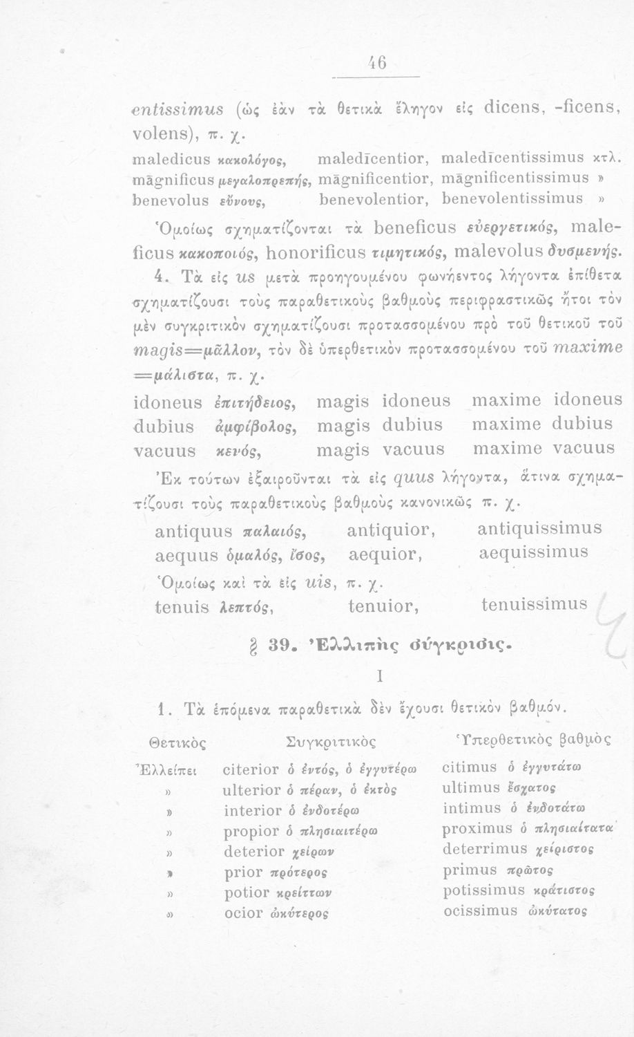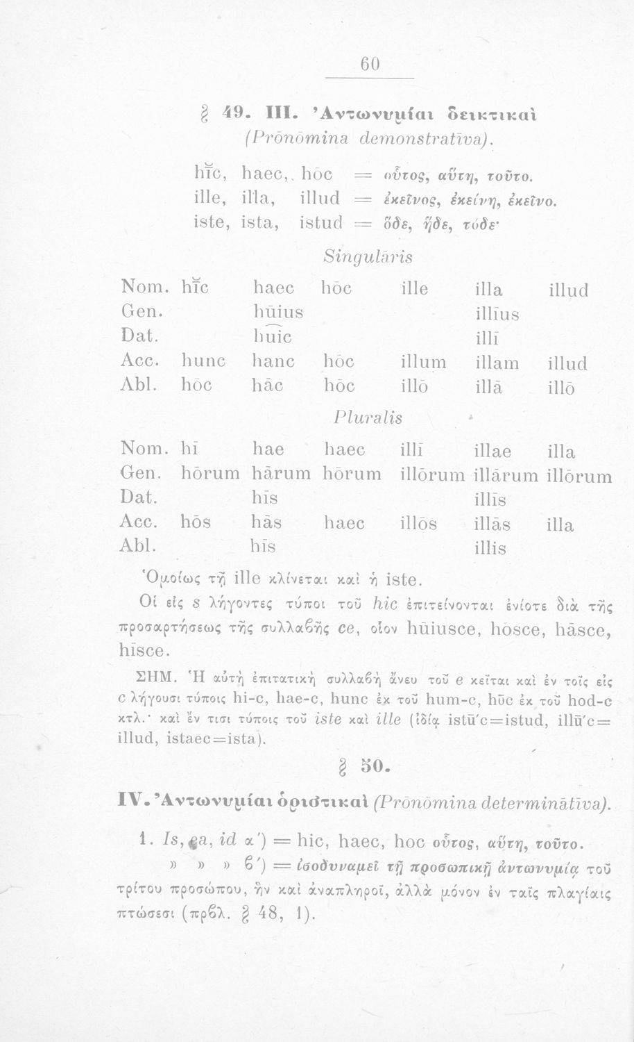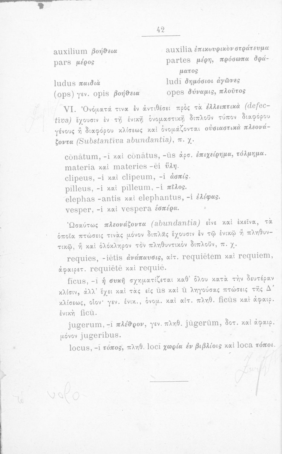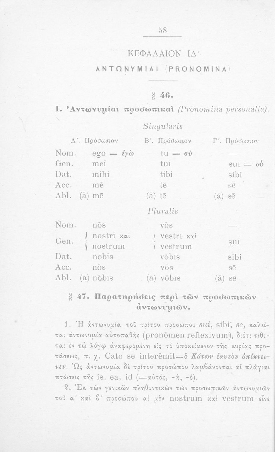 Σχολικό εγχειρίδιο Λατινικών που περιλαμβάνει τη γραμματική της λατινικής και είναι χωρισμένο στο τεχνολογικό, το τυπολογικό και το ετυμολογικό μέρος.