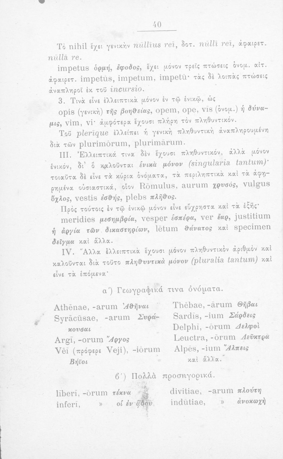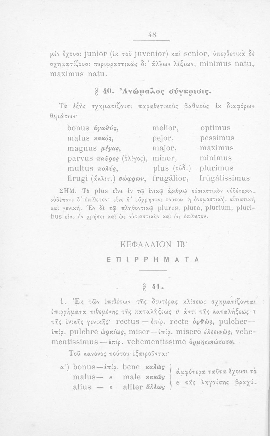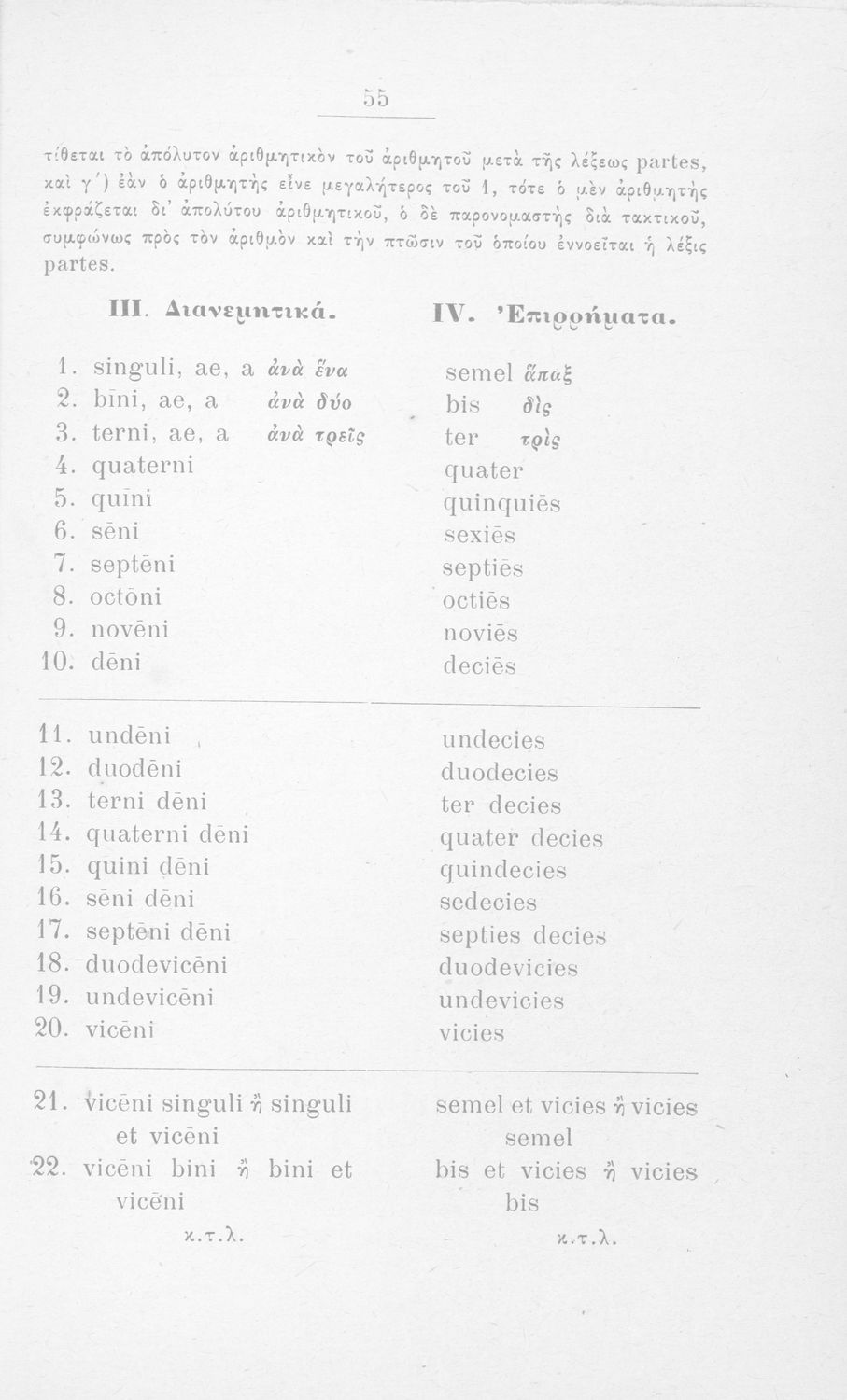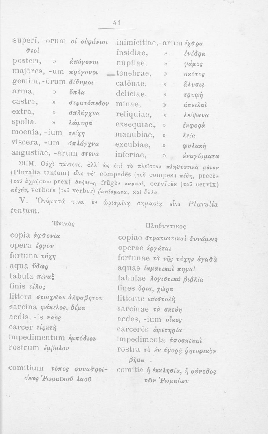 Σχολικό εγχειρίδιο Λατινικών που περιλαμβάνει τη γραμματική της λατινικής και είναι χωρισμένο στο τεχνολογικό, το τυπολογικό και το ετυμολογικό μέρος.