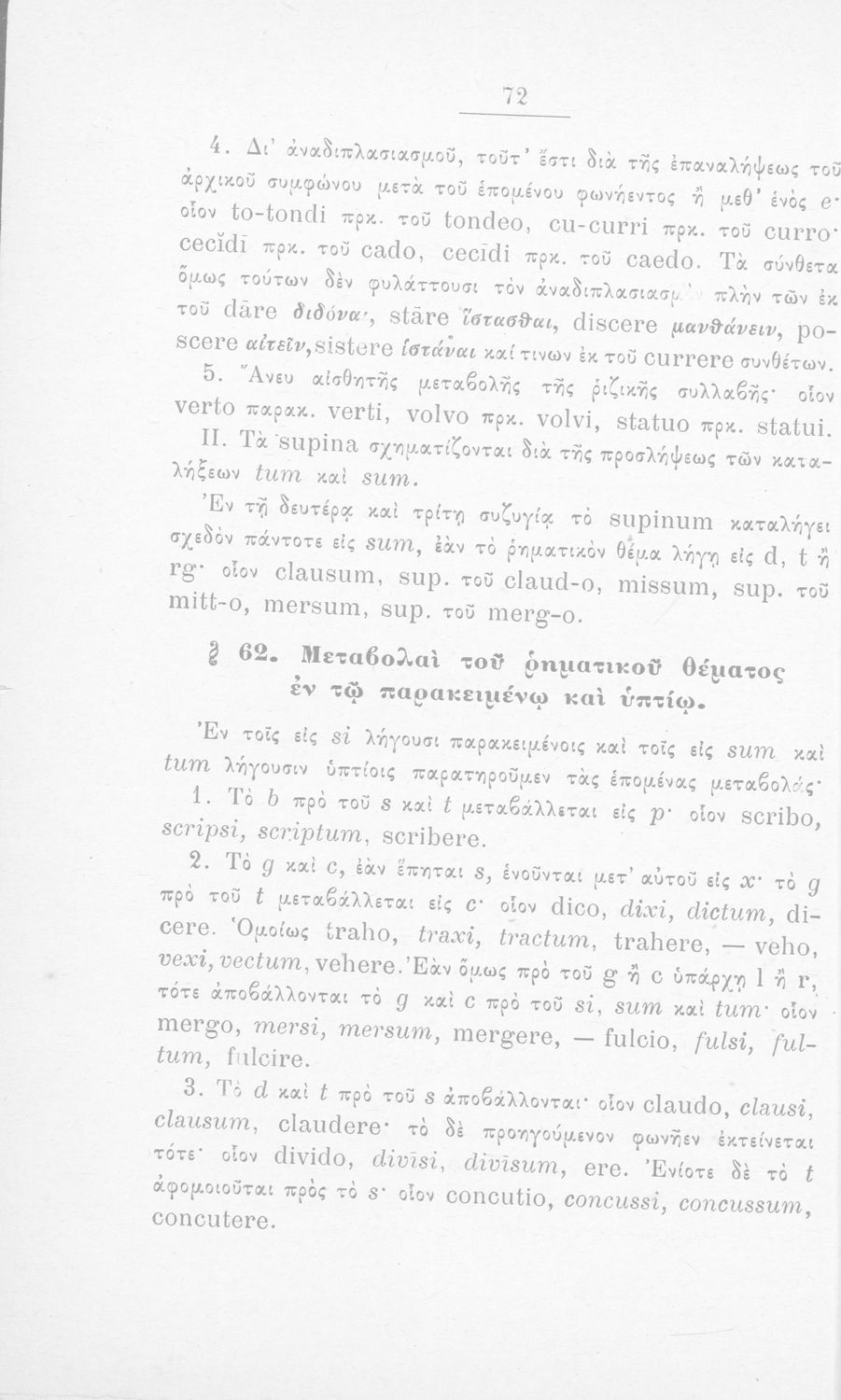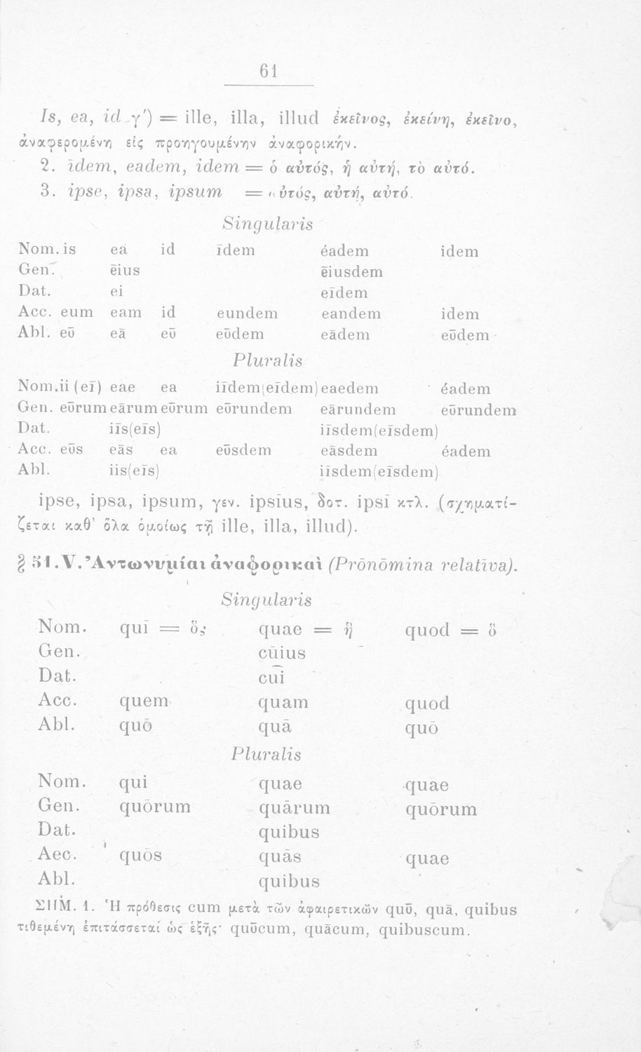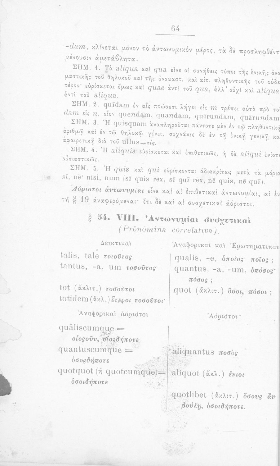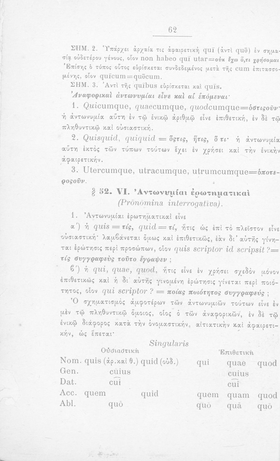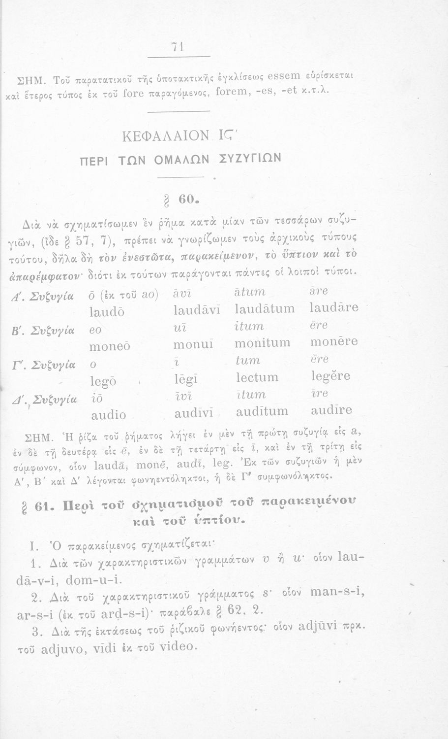 Σχολικό εγχειρίδιο Λατινικών που περιλαμβάνει τη γραμματική της λατινικής και είναι χωρισμένο στο τεχνολογικό, το τυπολογικό και το ετυμολογικό μέρος.