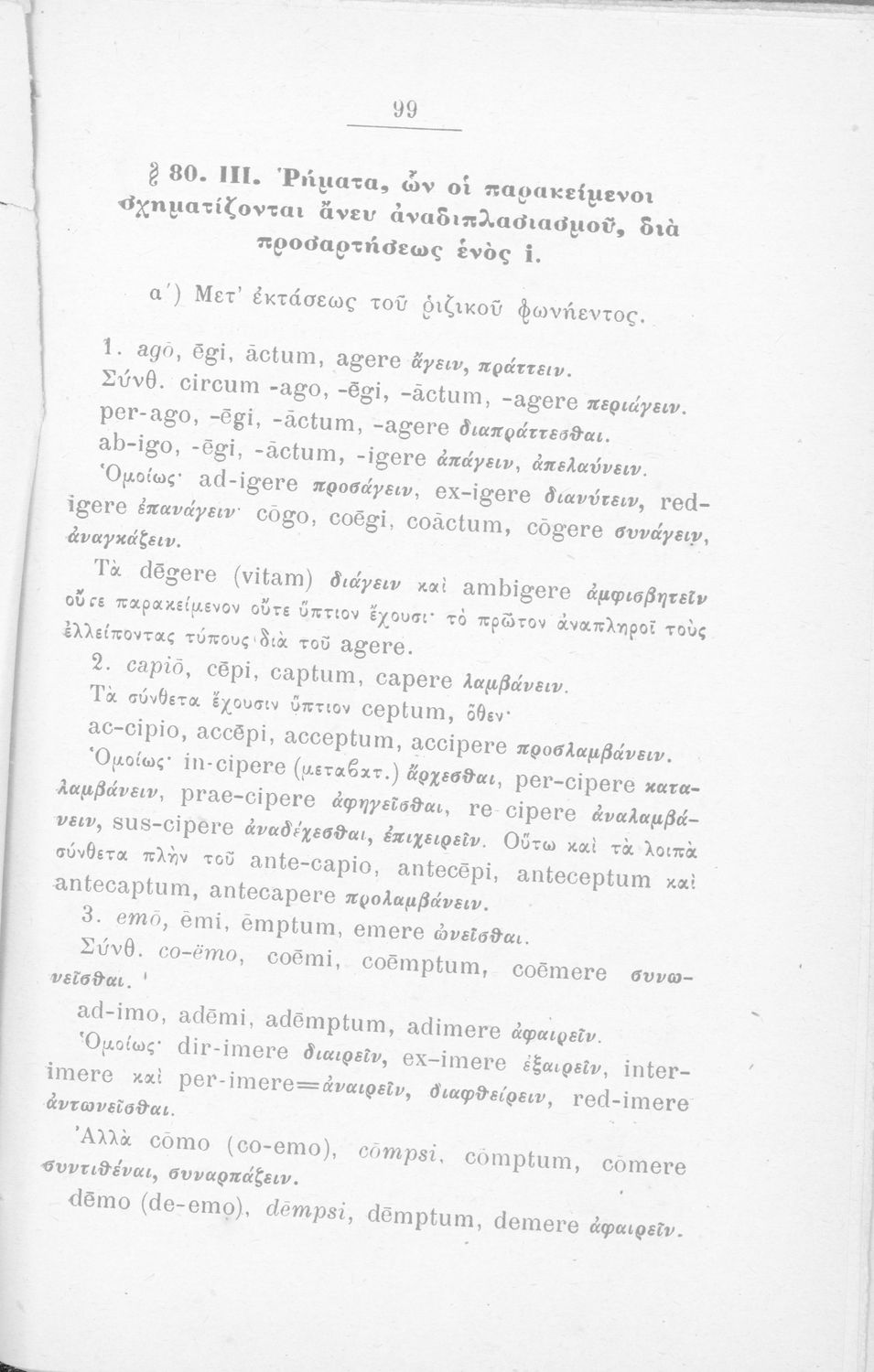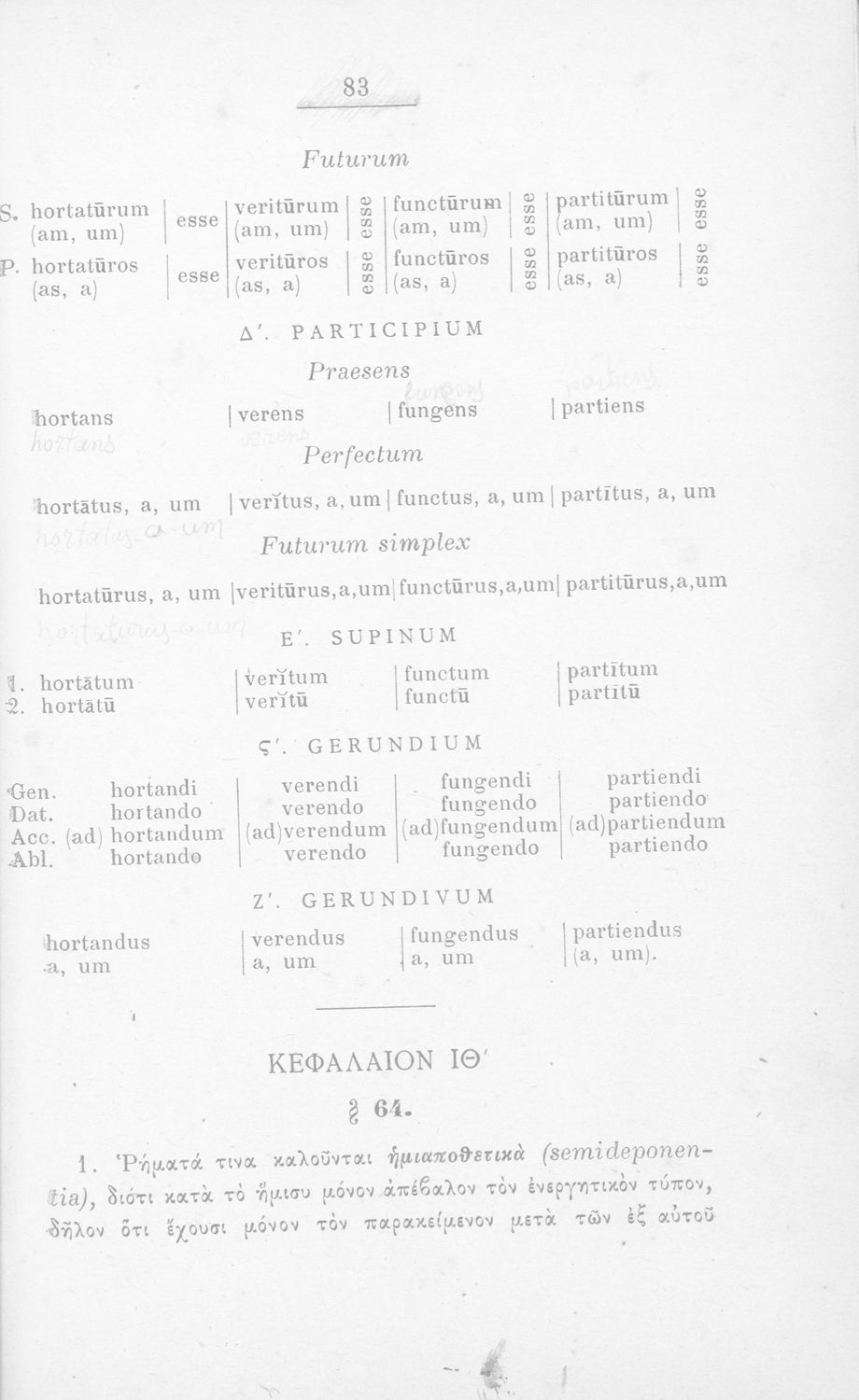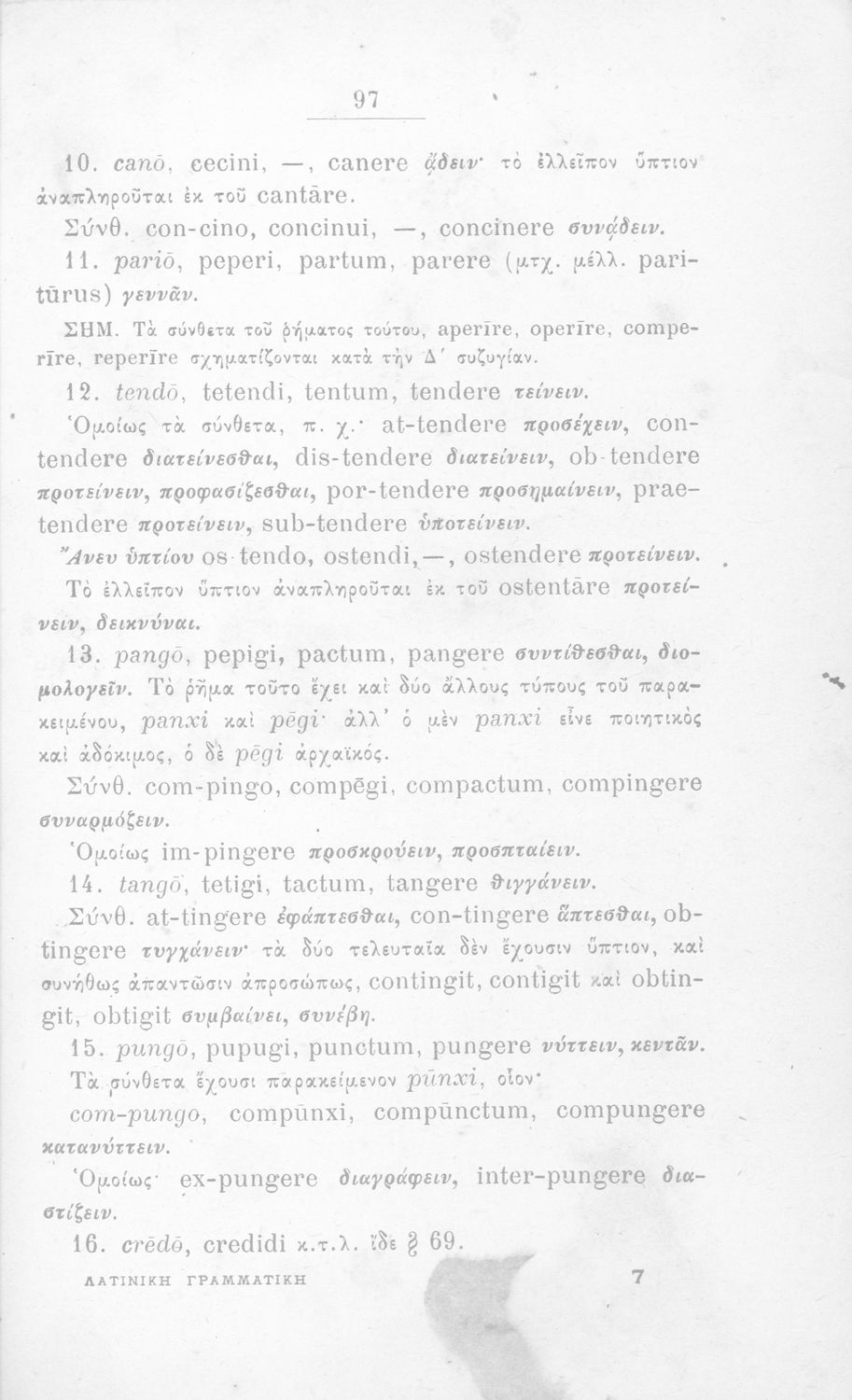 Σχολικό εγχειρίδιο Λατινικών που περιλαμβάνει τη γραμματική της λατινικής και είναι χωρισμένο στο τεχνολογικό, το τυπολογικό και το ετυμολογικό μέρος.