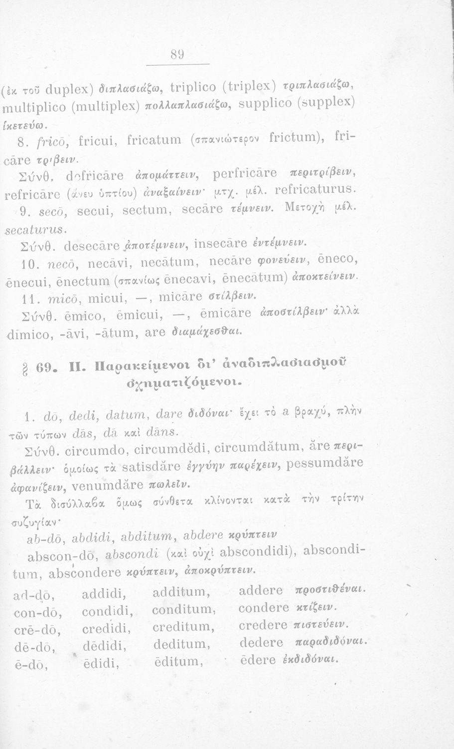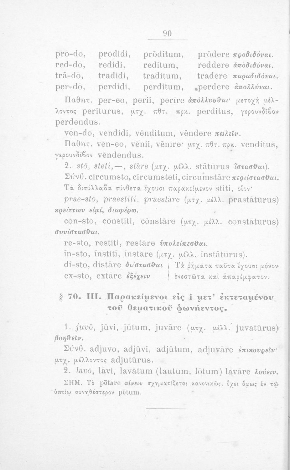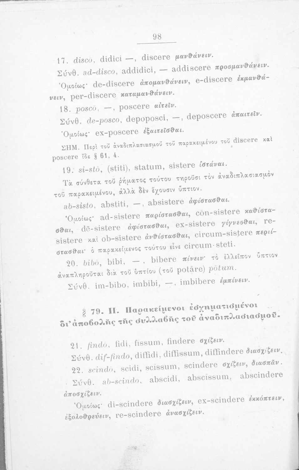 Σχολικό εγχειρίδιο Λατινικών που περιλαμβάνει τη γραμματική της λατινικής και είναι χωρισμένο στο τεχνολογικό, το τυπολογικό και το ετυμολογικό μέρος.