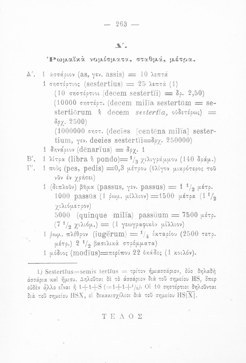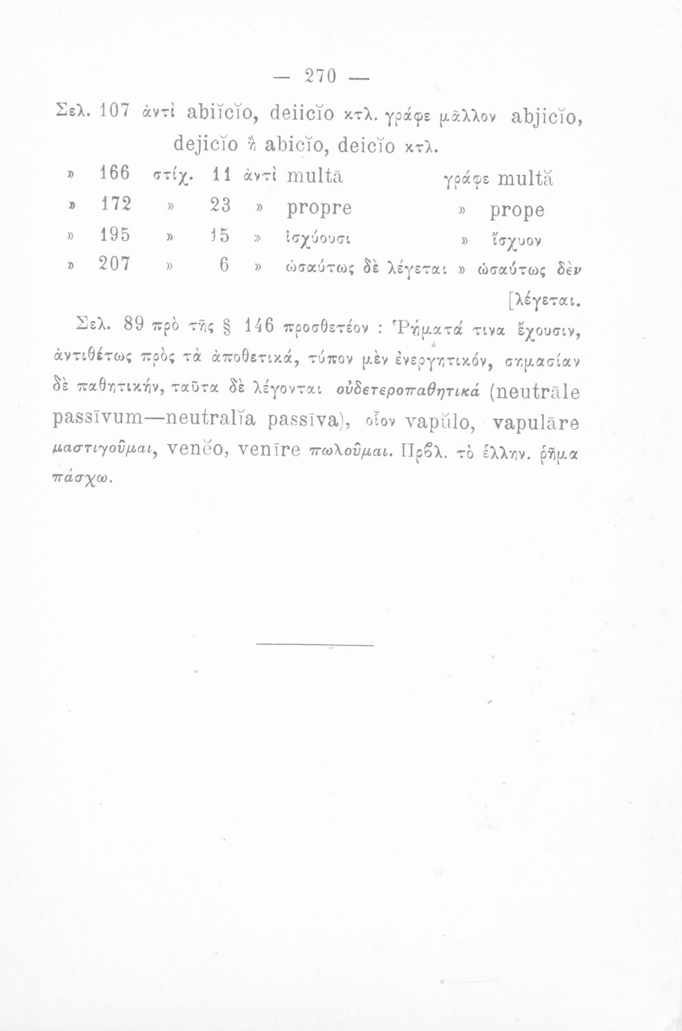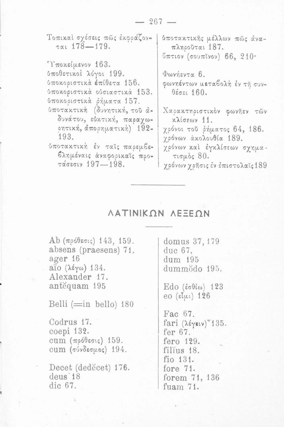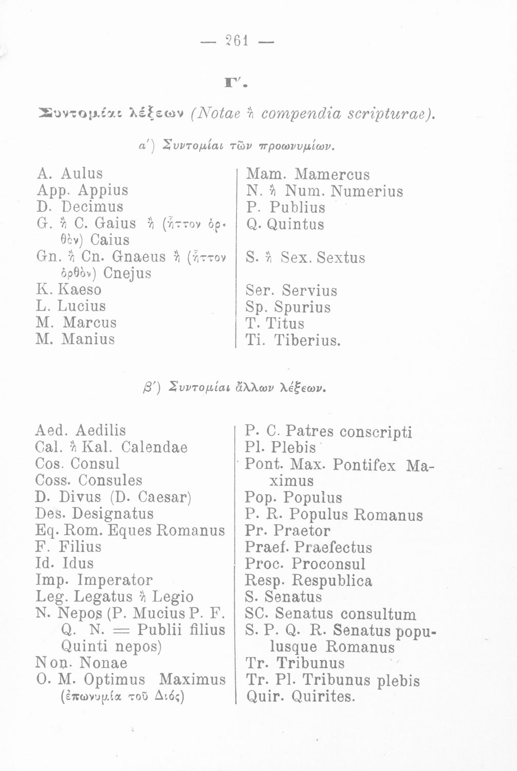 Σχολικό εγχειρίδιο Λατινικών Α΄, Β΄, Γ' Γυμνασίου που περιλαμβάνει γραμματική και συντακτικό και είναι χωρισμένο σε φθογγολογικό, τυπολογικό και ετυμολογικό μέρος.