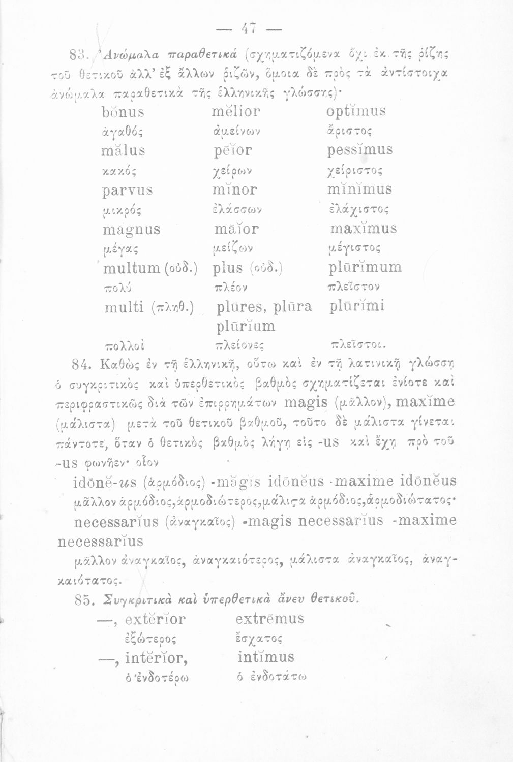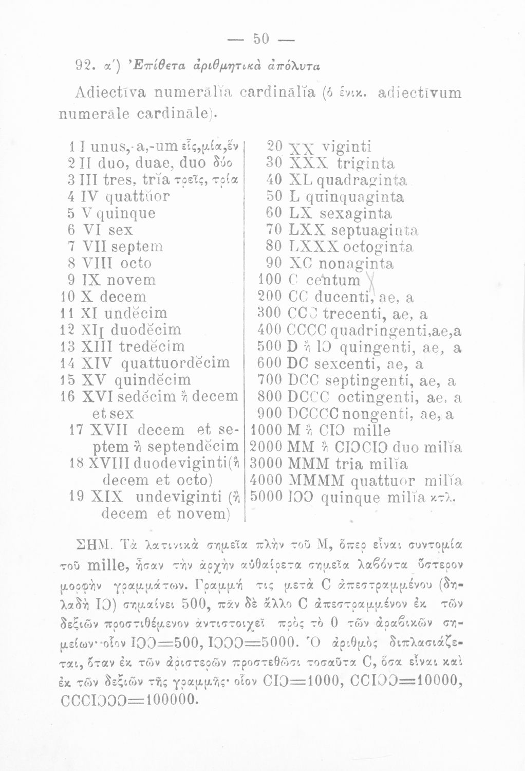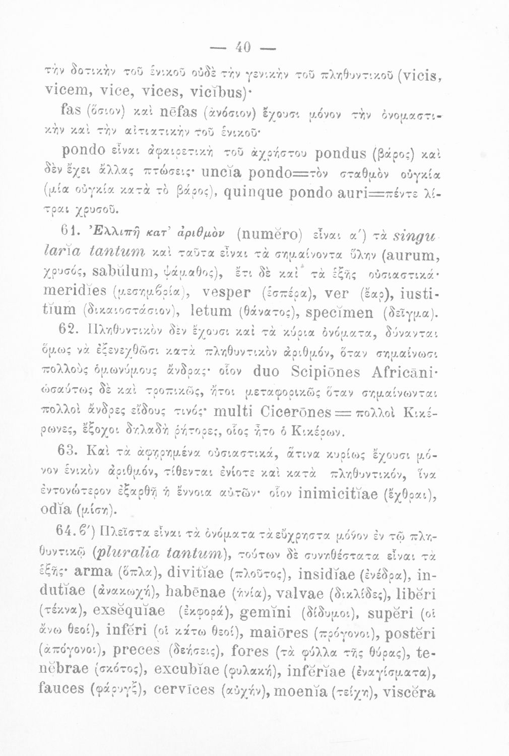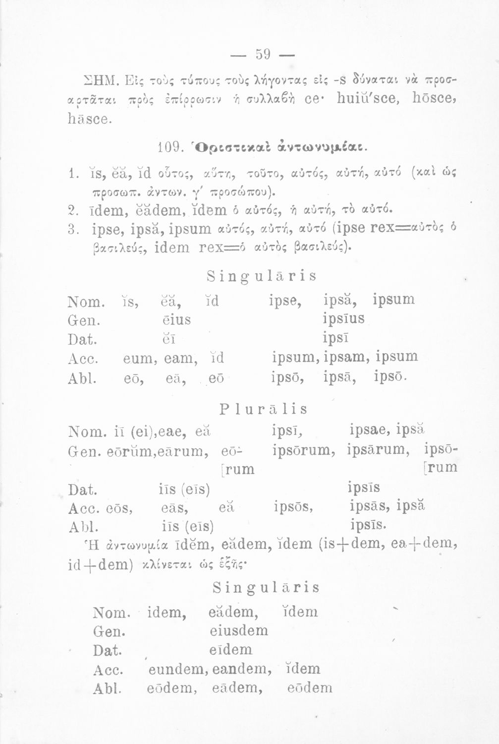 Σχολικό εγχειρίδιο Λατινικών Α΄, Β΄, Γ' Γυμνασίου που περιλαμβάνει γραμματική και συντακτικό και είναι χωρισμένο σε φθογγολογικό, τυπολογικό και ετυμολογικό μέρος.