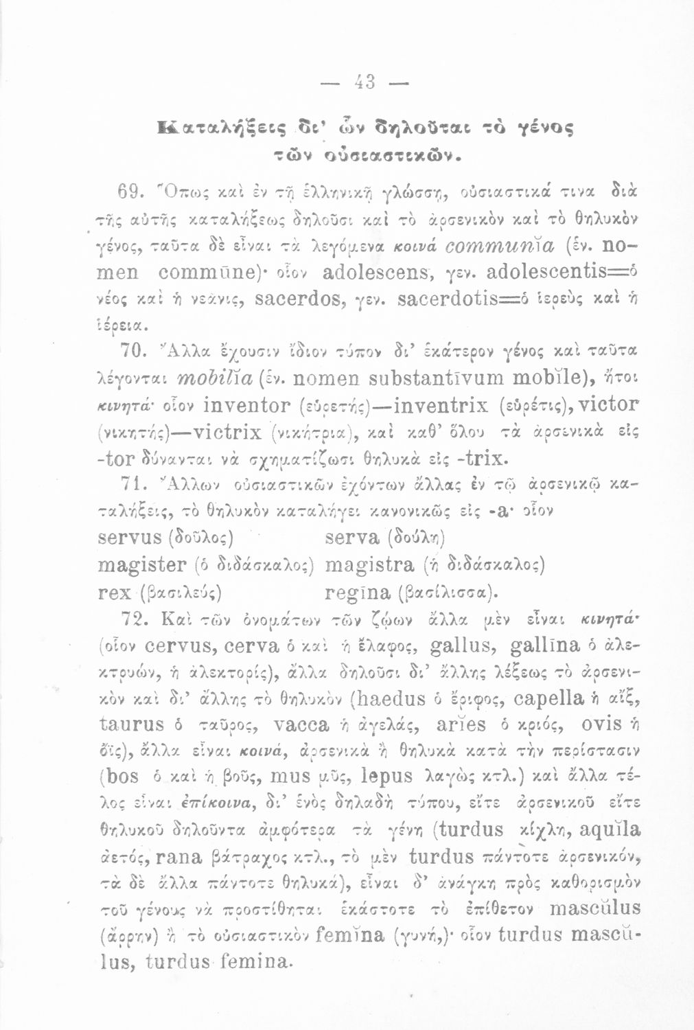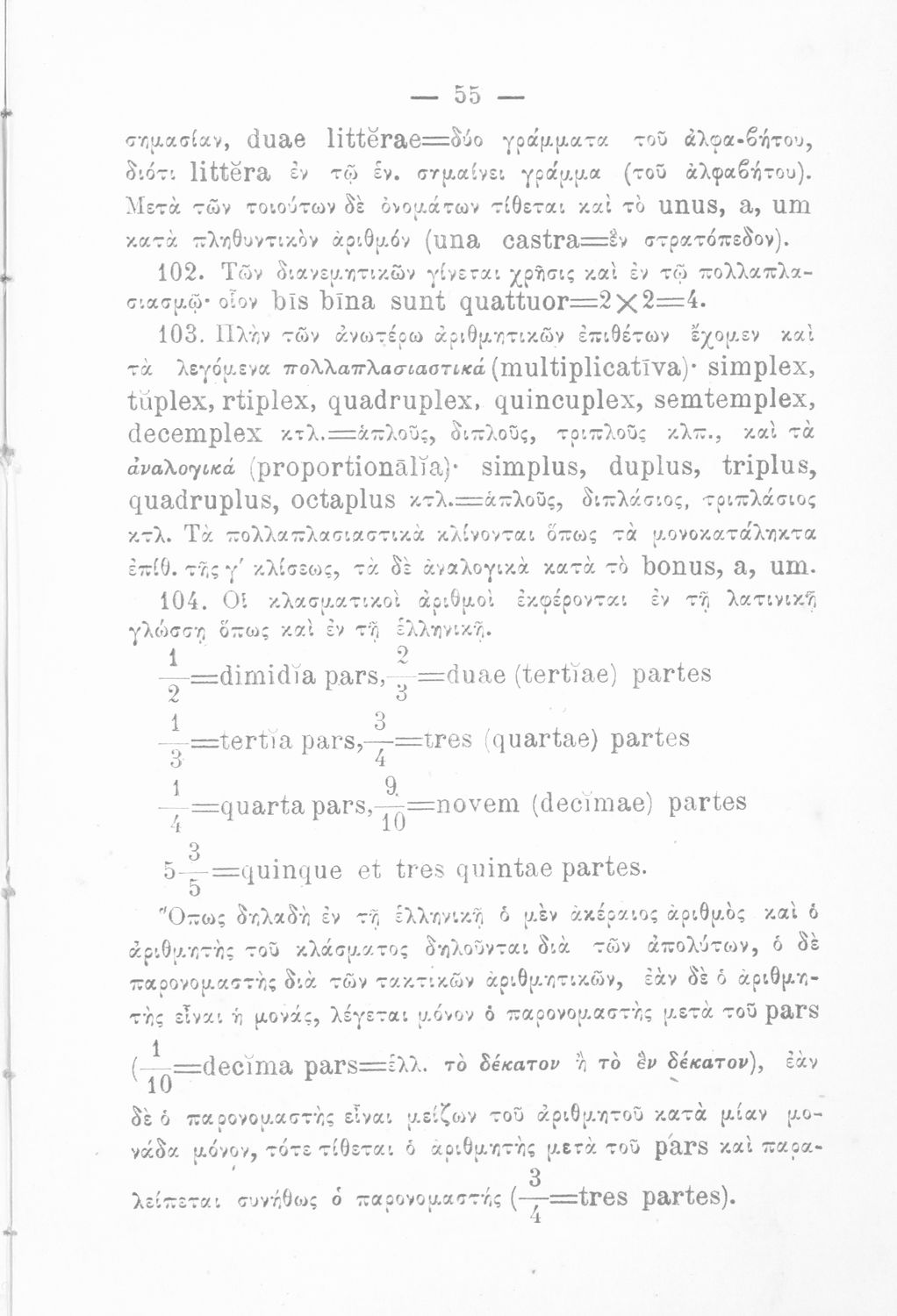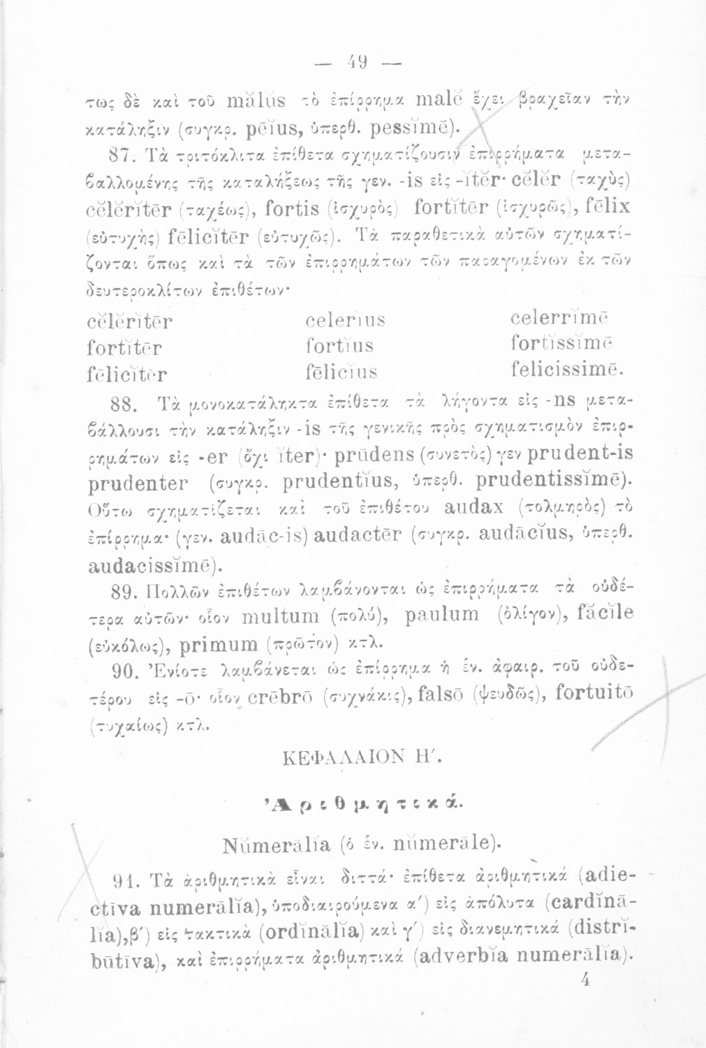 Σχολικό εγχειρίδιο Αρχαίων Ελληνικών για τα Ελληνικά Σχολεία, Παρθεναγωγεία και Γυμνάσια που περιέχει τους κανόνες γραμματικής και είναι χωρισμένο σε φθογγολογικό, τυπολογικό και ετυμολογικό μέρος.