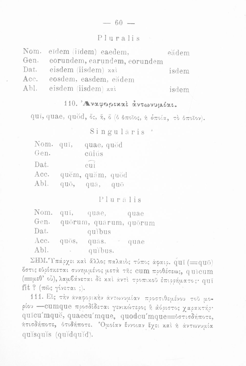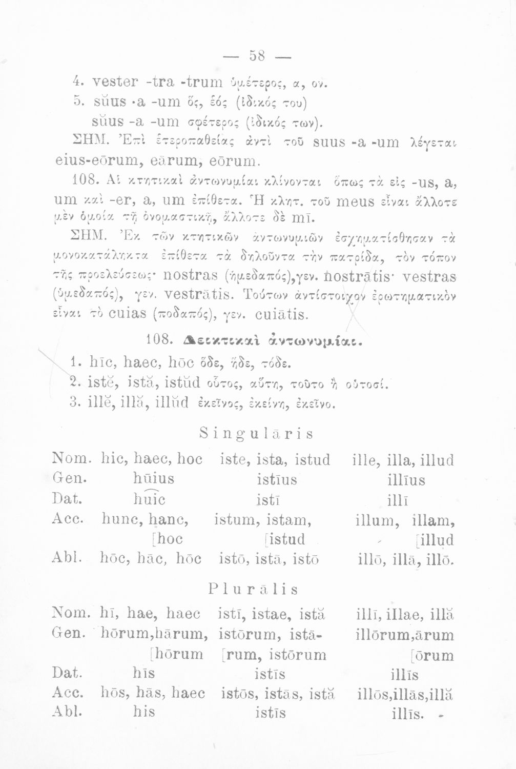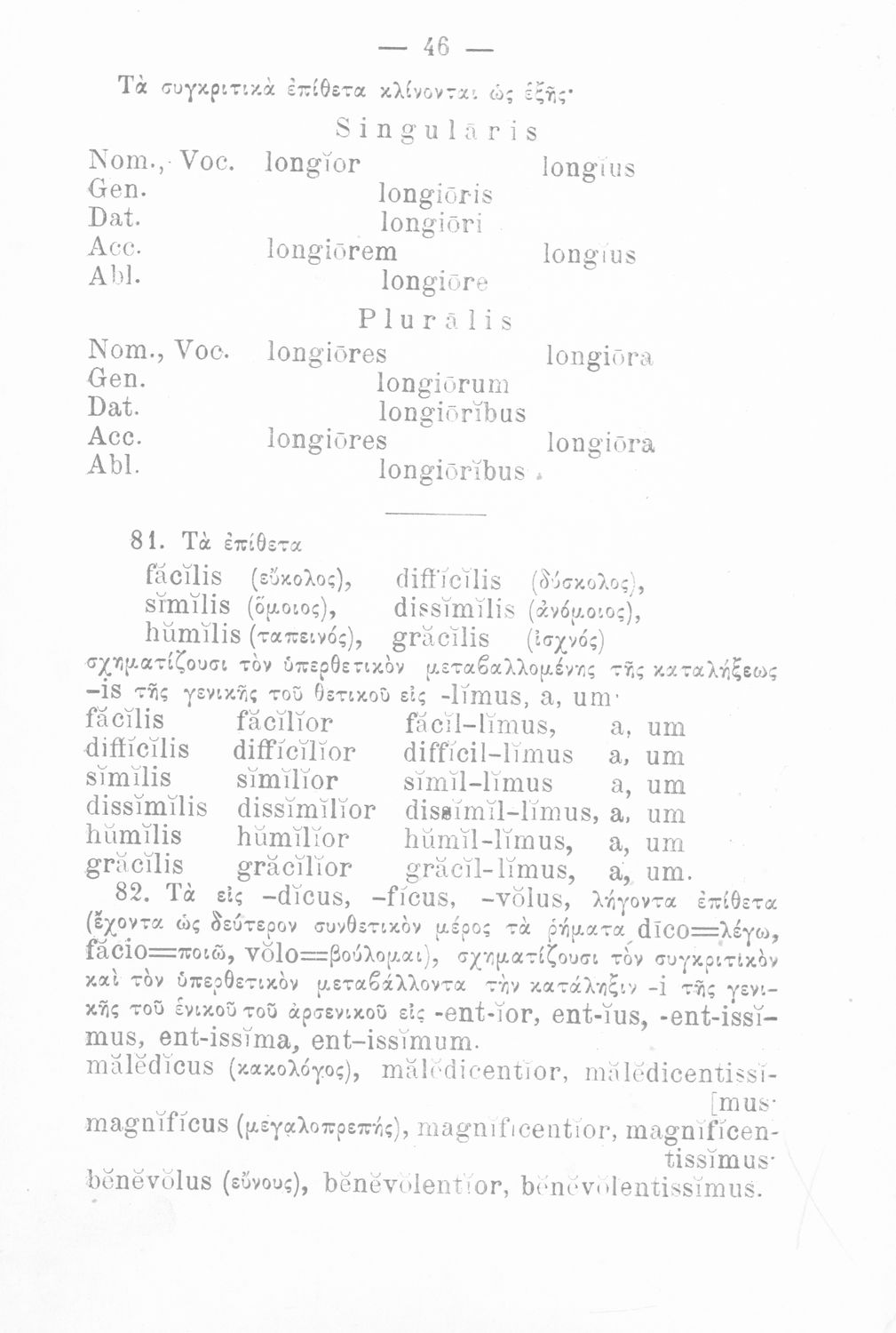 Παρουσίαση περιεχομένου: Σχολικό εγχειρίδιο Λατινικών Γυμνασίου που περιλαμβάνει γραμματική και συντακτικό και είναι χωρισμένο σε φθογγολογικό, τυπολογικό και ετυμολογικό μέρος. Ο συγγραφέας ήταν καθηγητής της Λατινικής Φιλολογίας στο Εθνικό Πανεπιστήμιο.