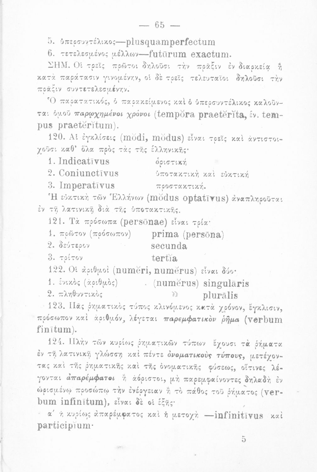 Σχολικό εγχειρίδιο Αρχαίων Ελληνικών για τα Ελληνικά Σχολεία, Παρθεναγωγεία και Γυμνάσια που περιέχει τους κανόνες γραμματικής και είναι χωρισμένο σε φθογγολογικό, τυπολογικό και ετυμολογικό μέρος.