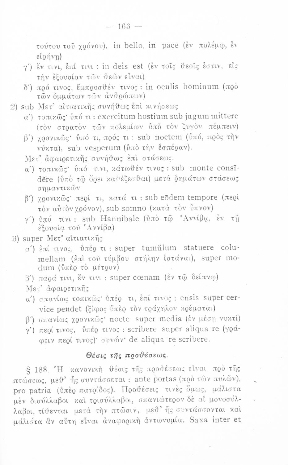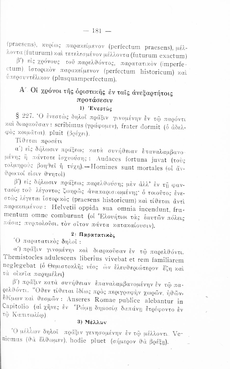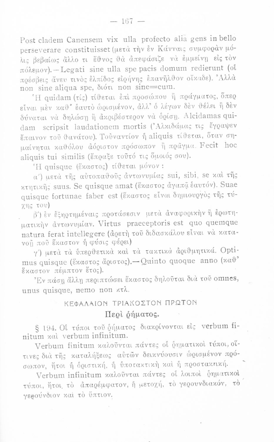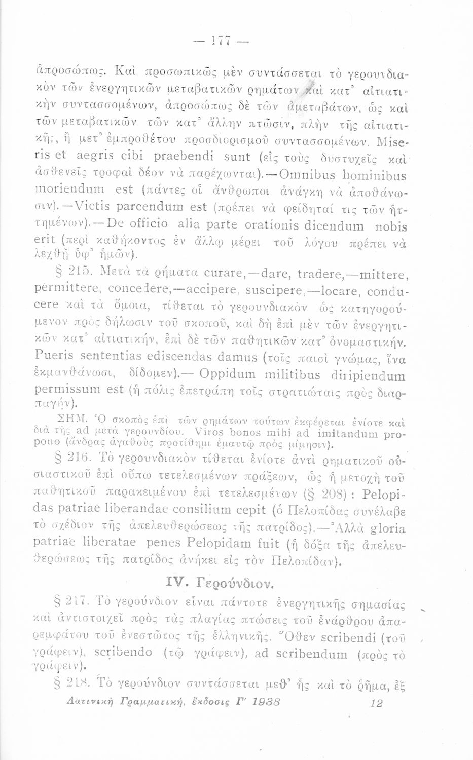 Σχολικό εγχειρίδιο Λατινικών Α΄, Β΄, Γ' Γυμνασίου που περιλαμβάνει γραμματική και συντακτικό και είναι χωρισμένο σε φθογγολογικό, τυπολογικό και ετυμολογικό μέρος.