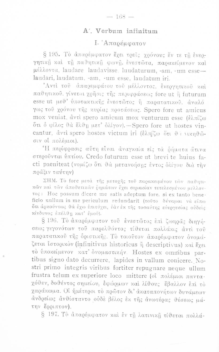 Σχολικό εγχειρίδιο Λατινικών που περιλαμβάνει τη γραμματική της λατινικής και είναι χωρισμένο στο τεχνολογικό, το τυπολογικό και το ετυμολογικό μέρος.