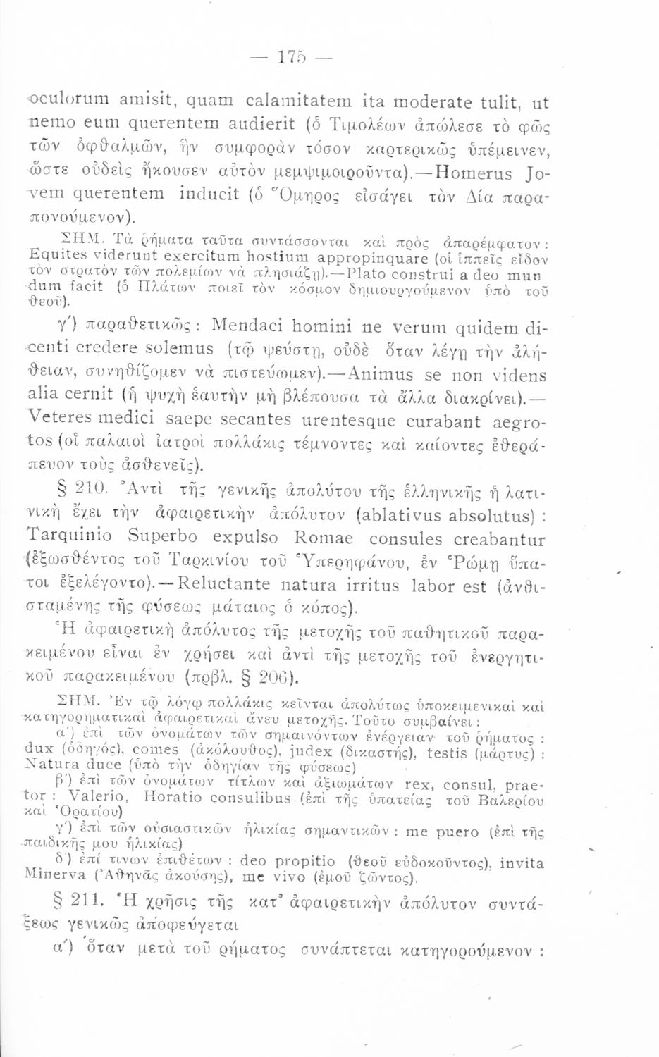Σχολικό εγχειρίδιο Λατινικών Γυμνασίου που περιλαμβάνει γραμματική και συντακτικό και είναι χωρισμένο σε φθογγολογικό, τυπολογικό και ετυμολογικό μέρος. Περιέχει και μετρικό παράρτημα. Ο συγγραφέας ήταν ...